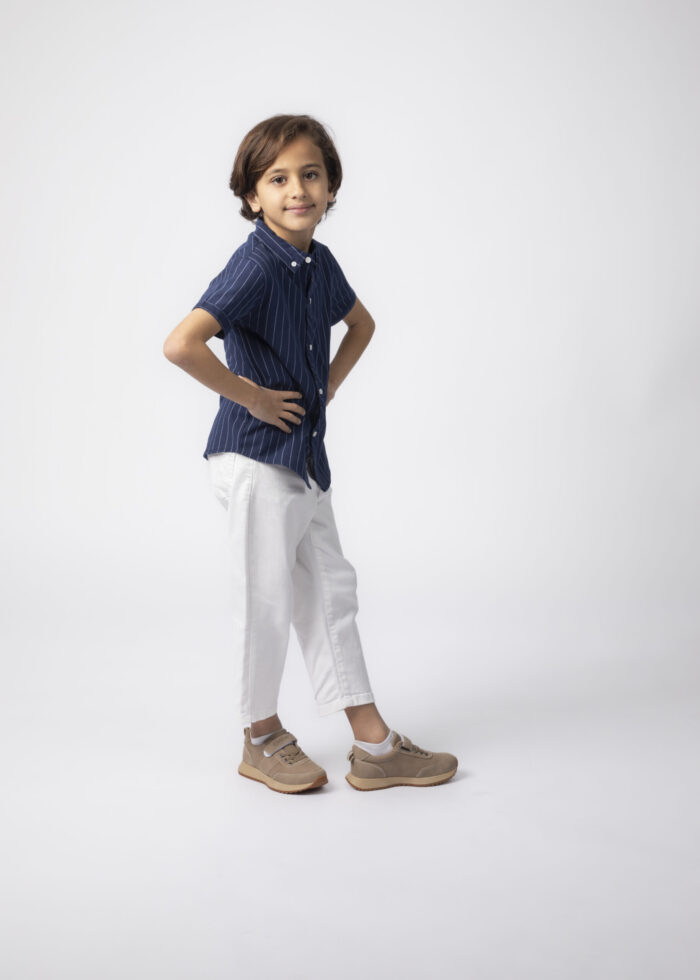 قميص اطفال ولادي, مخطط, ياقة مثنية مع زر من الامام, ازرار من الامام للاغلاق, اكمام قصيرة, انيق وعصري