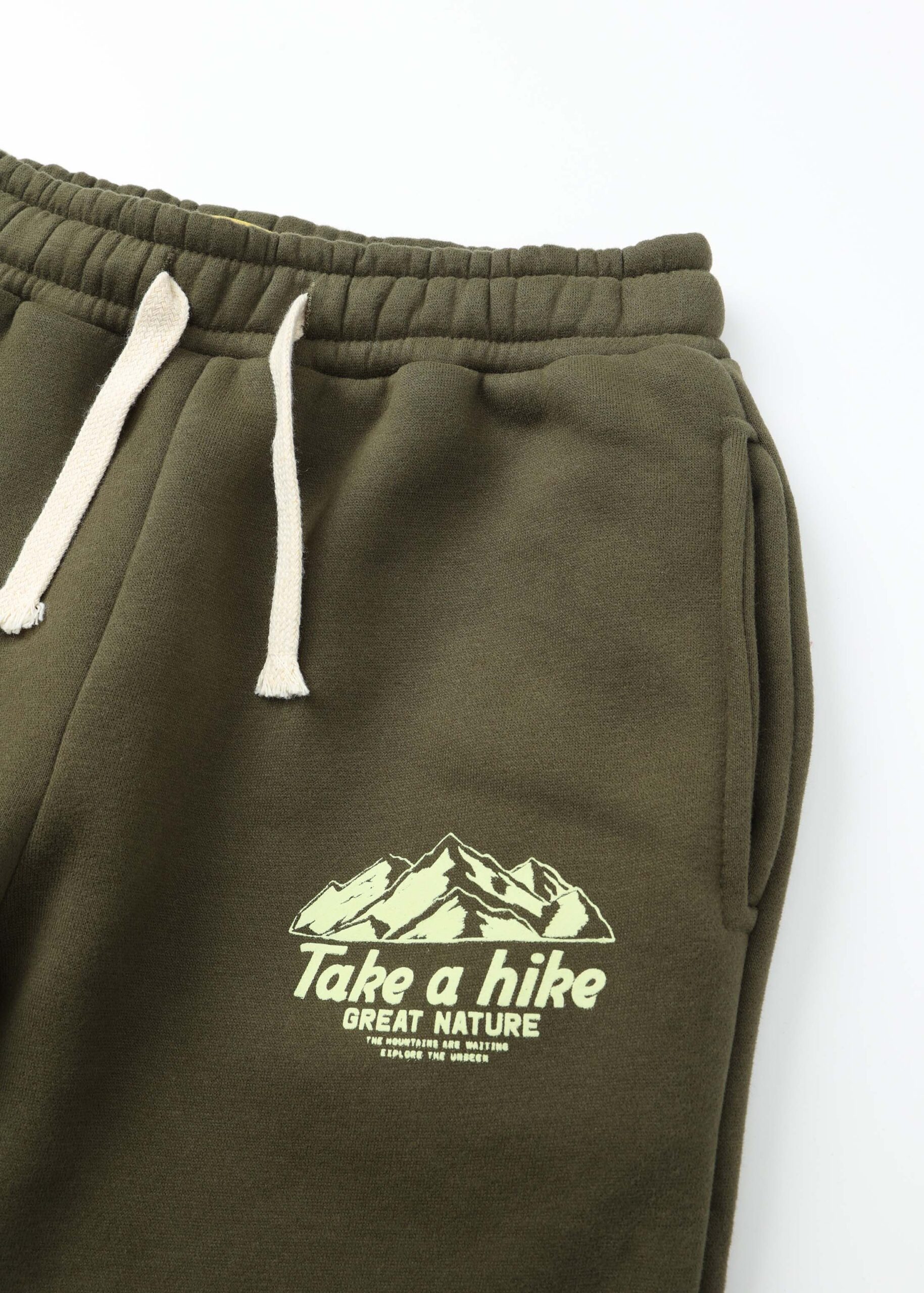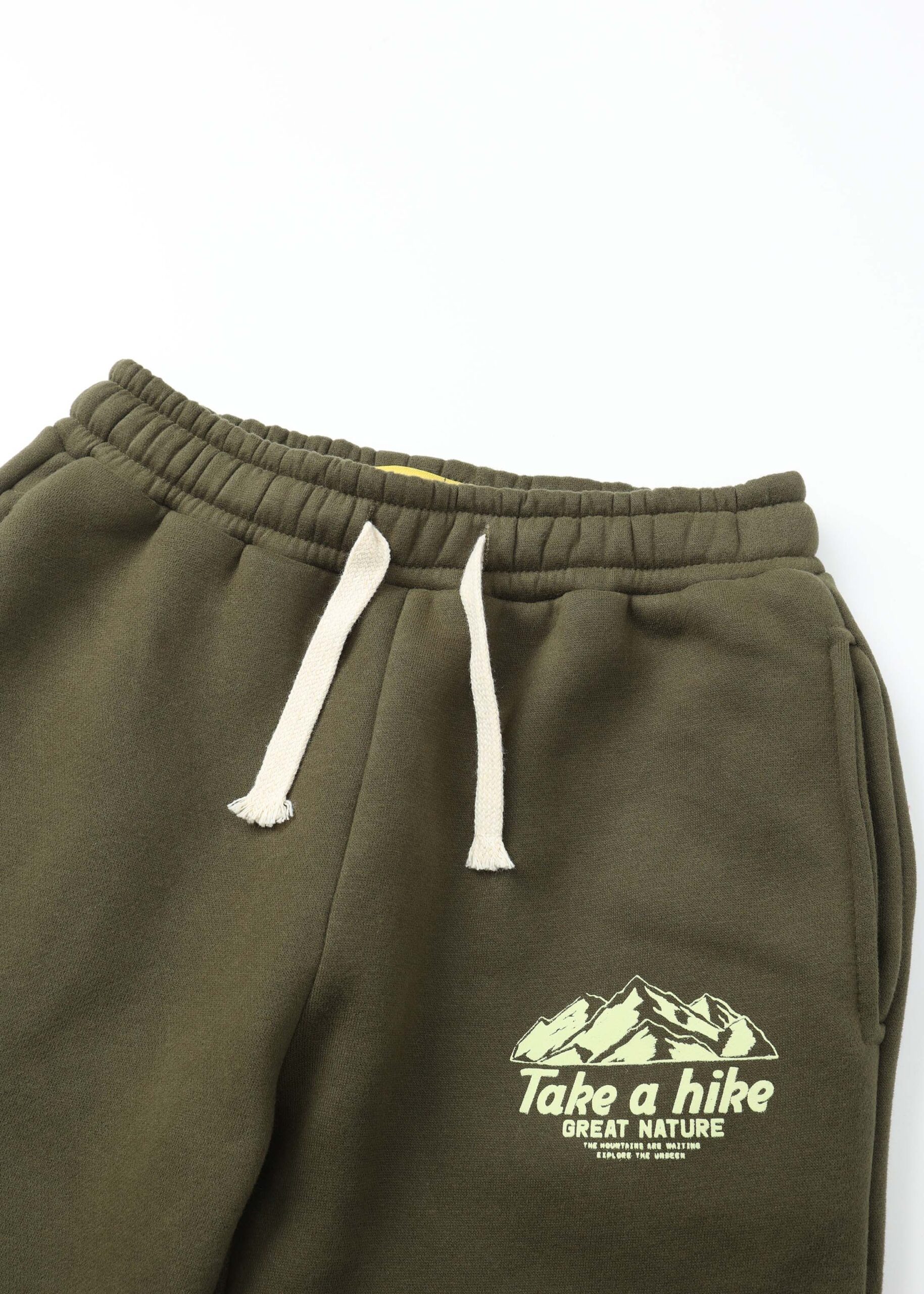 Kids boy trouser, sport, “Take a Hike, Great Nature” printed, elastic waist with front tie, front pockets, elastic ankle, comfortable and practical