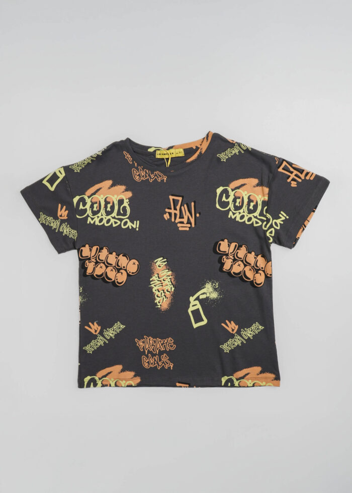 تيشيرت اطفال ولادي, كتابات مطبوعة, ياقة مدورة, اكمام قصيرة, انيقة بالوان زاهية