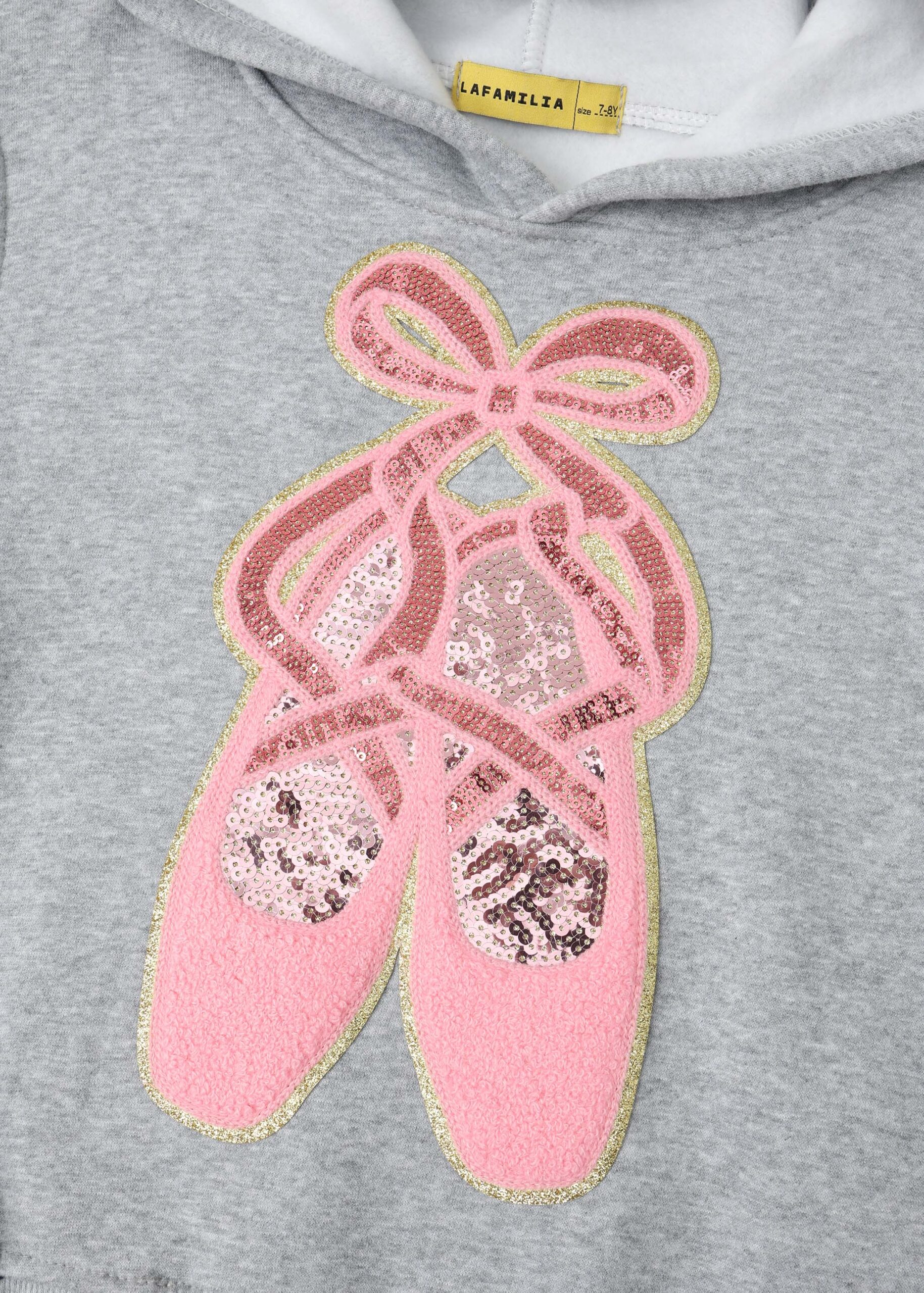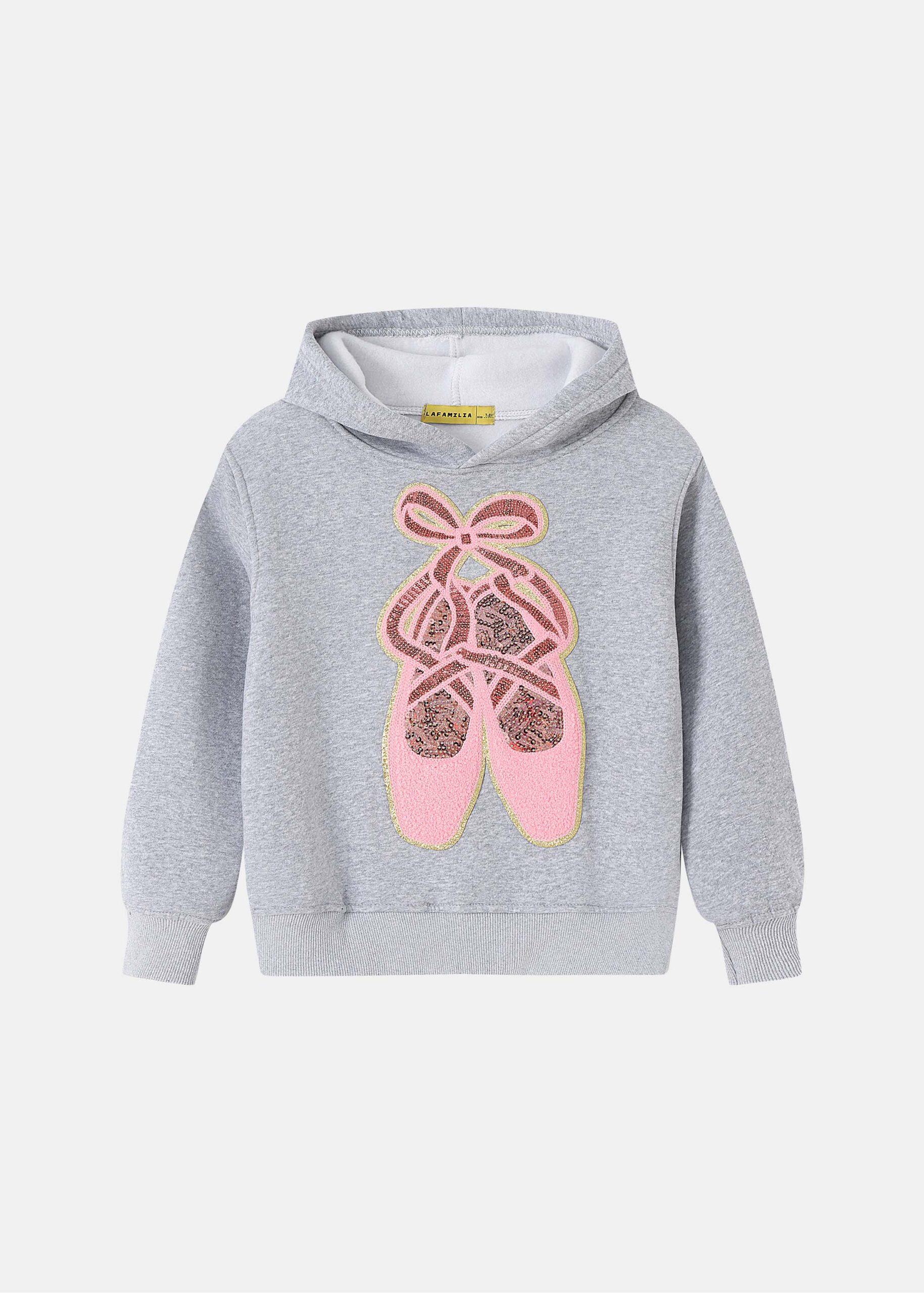هودي اطفال بناتي, طباعة باليرينا من الامام مزينة بالخرز اللامع, طاقية, اكمام طويلة مع معصم ضيق, انيقة ومريحة