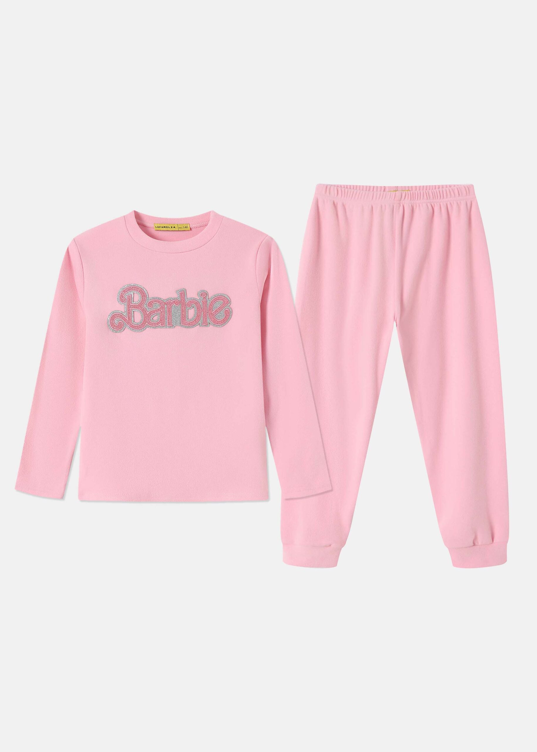 Kids girl pajama, two-pieces, “Barbie” printed, blouse, round neck, long sleeves, trouser, plain, elastic waist, elastic ankle, practical and comfortable