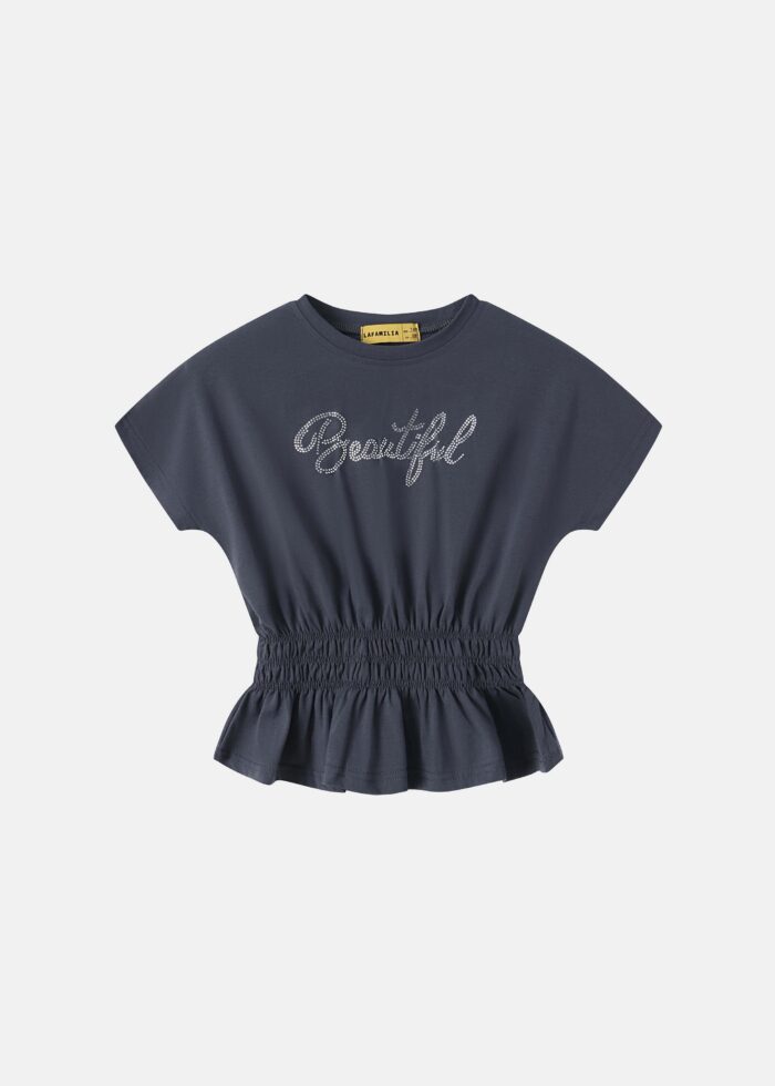 تيشيرت اطفال بناتي, طباعة “Beautiful”من الامام بالستراس, ياقة مدورة, اكمام قصيرة, خصر مطاطي, انيقة وعصرية