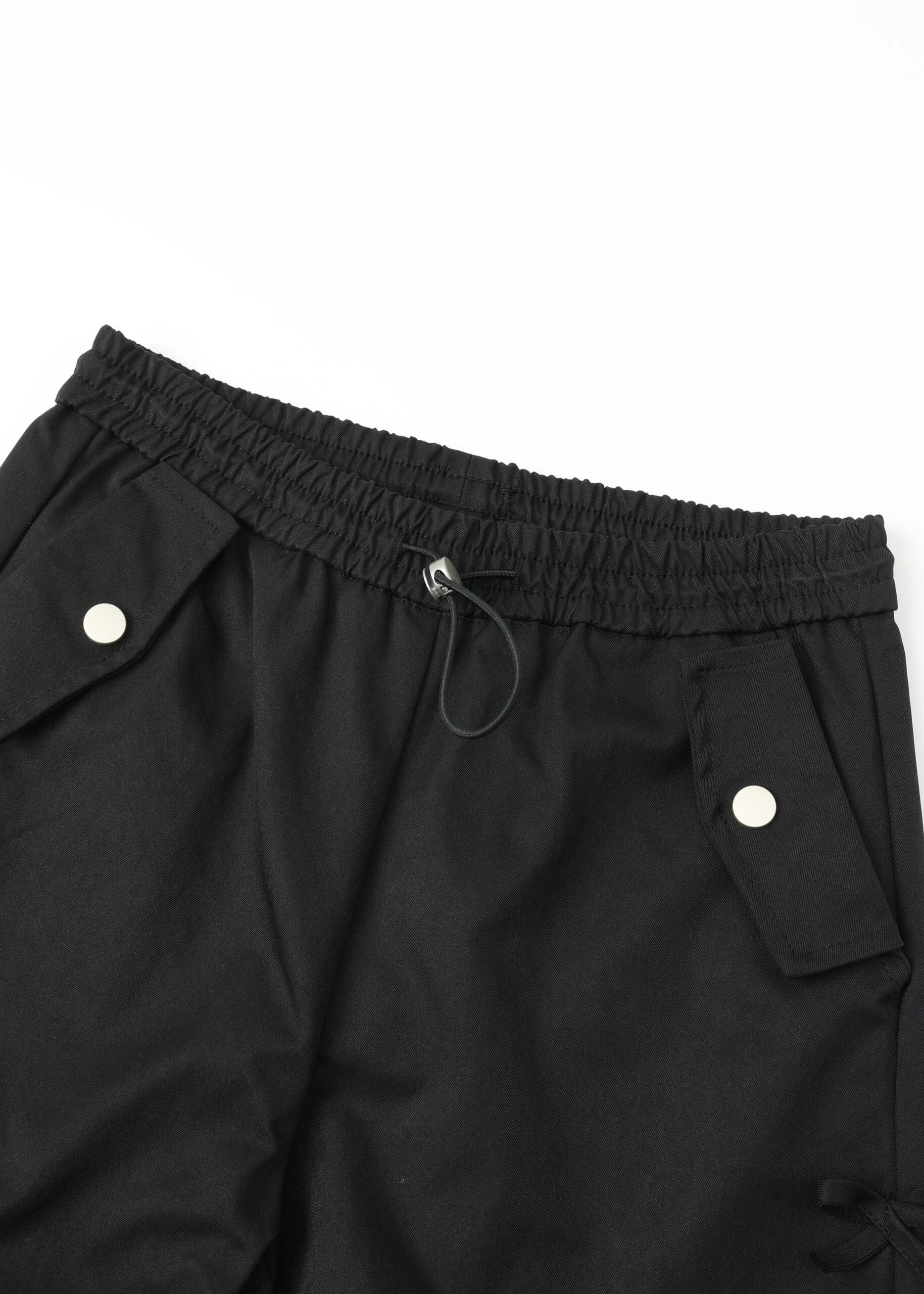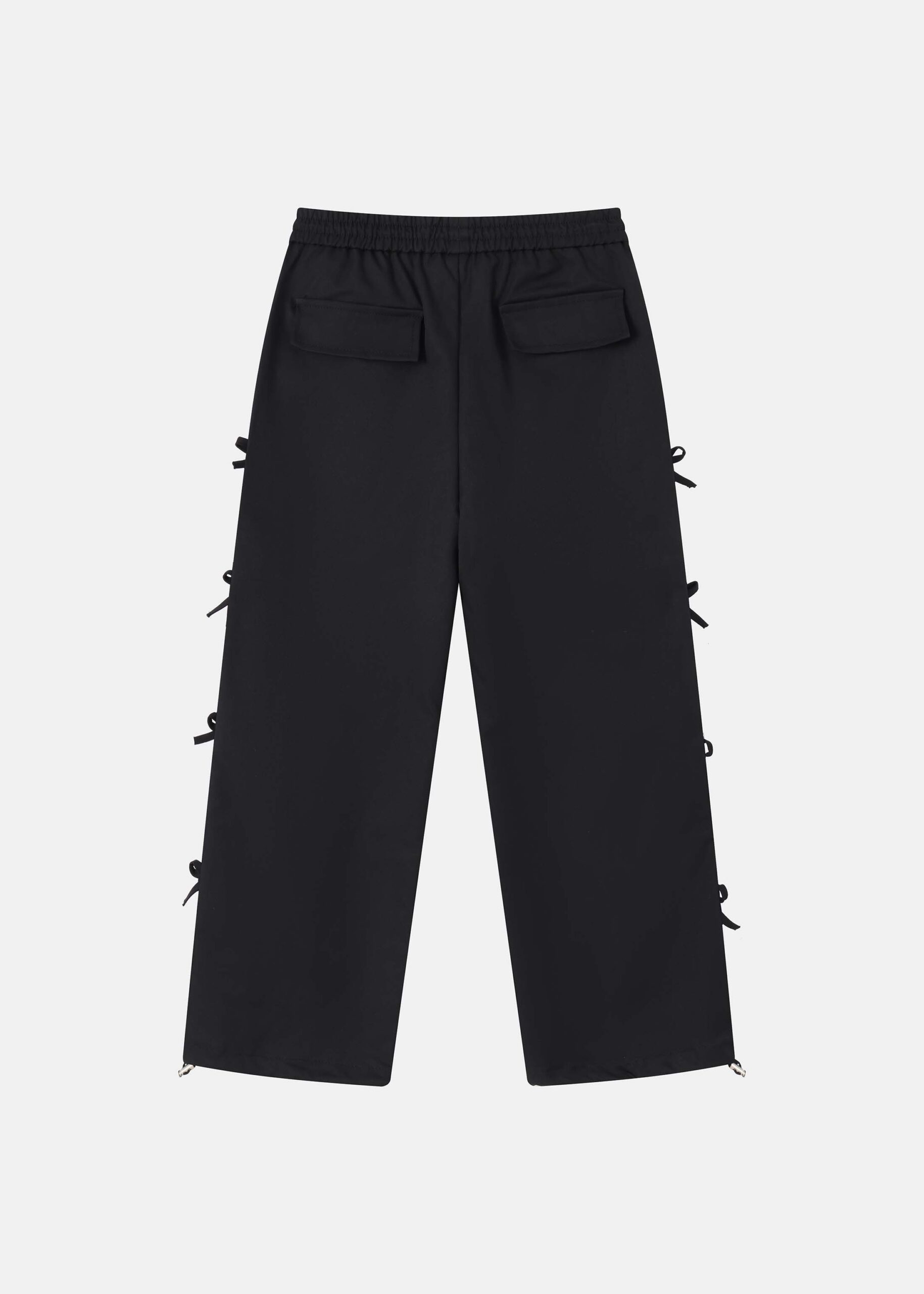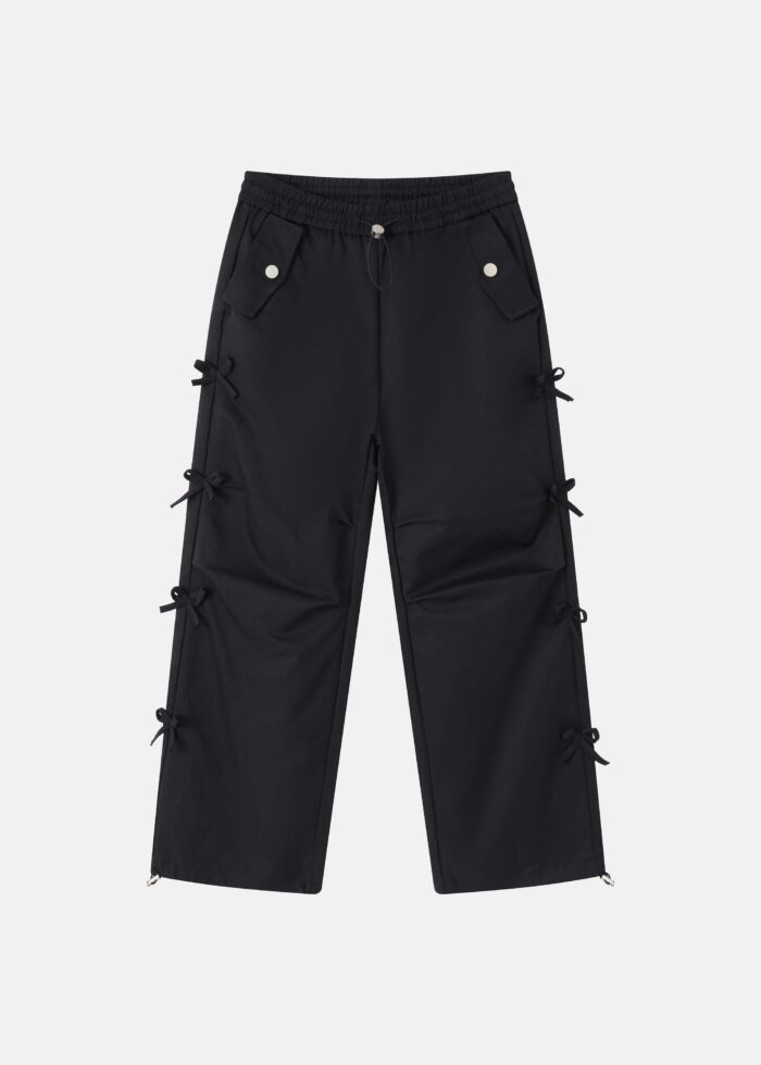 بنطلون اطفال بناتي, رياضة, خصر مطاطي مع حبل قابل للتعديل من الامام, جيوب من الامام, كاحل مطاطي, تصميم كسرات, مزين بفيونكات من الجانبين, مريح وعملي