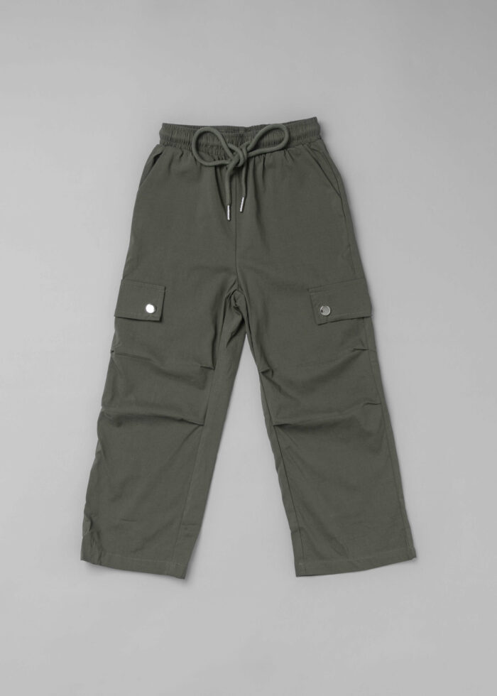 بنطلون اطفال بناتي, كارجو, خصر مطاطي مع حبل للربط من الامام, جيوب من الامام والجانب, تصميم كسرات, مريح وعملي