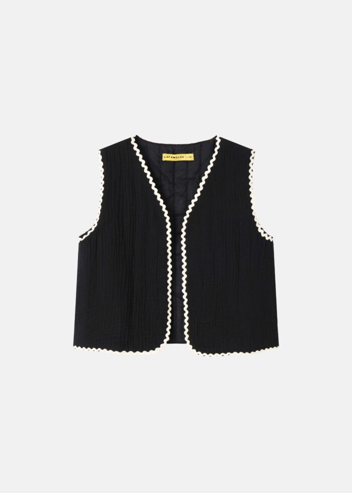 فيست اطفال بناتي, نسيج بتاثير متعرج, مفتوح, ياقة سبعة, بدون اكمام,مزخرف بحواف متعرجة, انيق وعصري