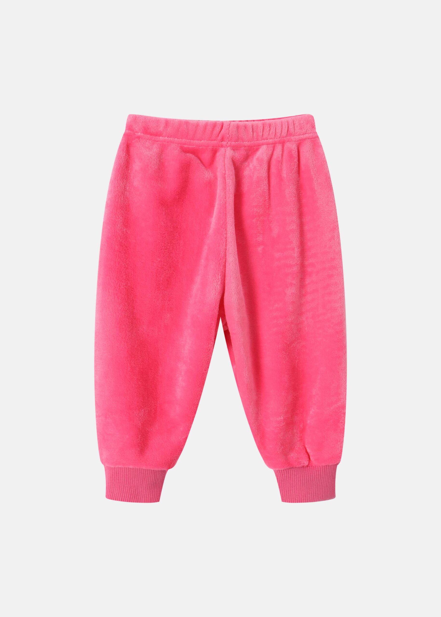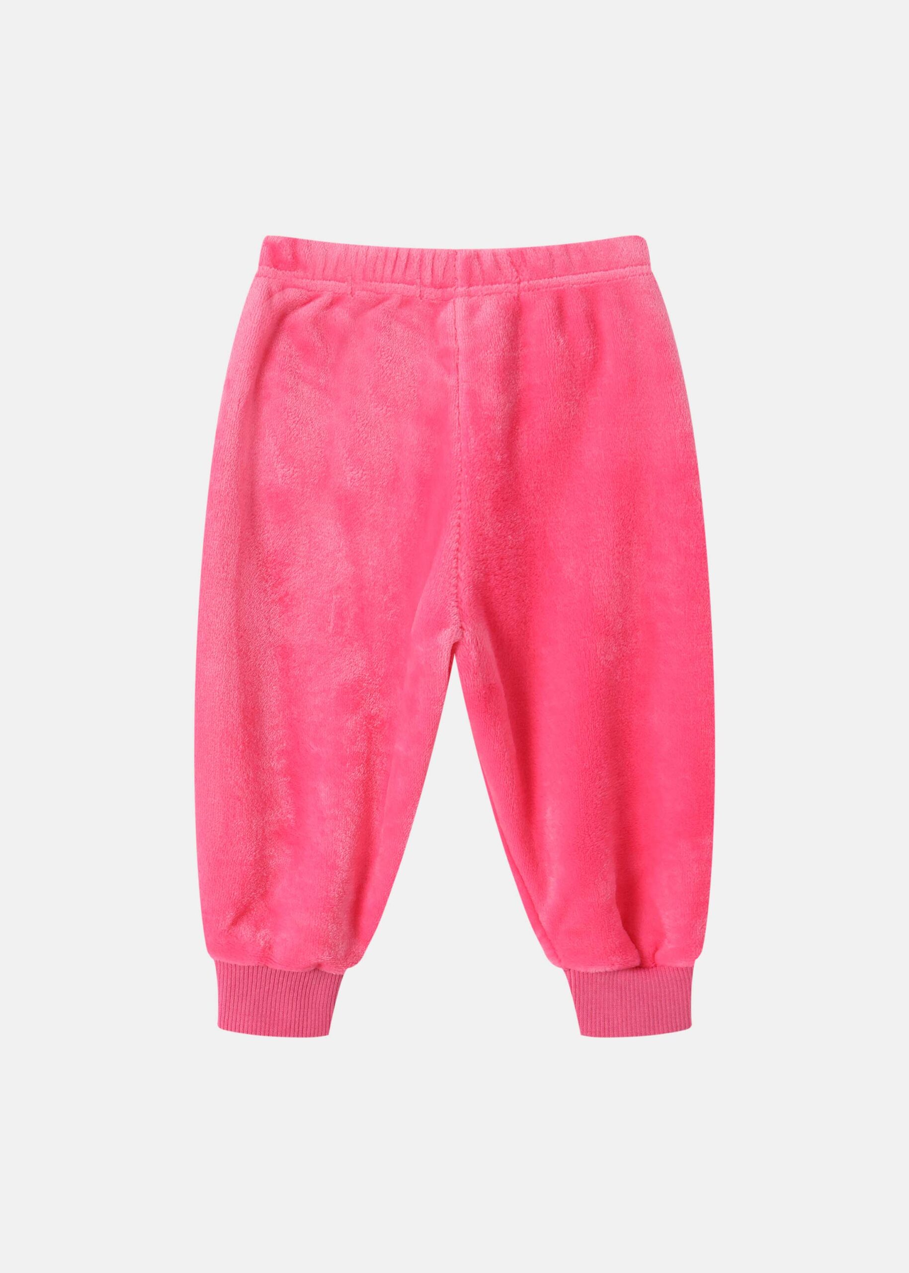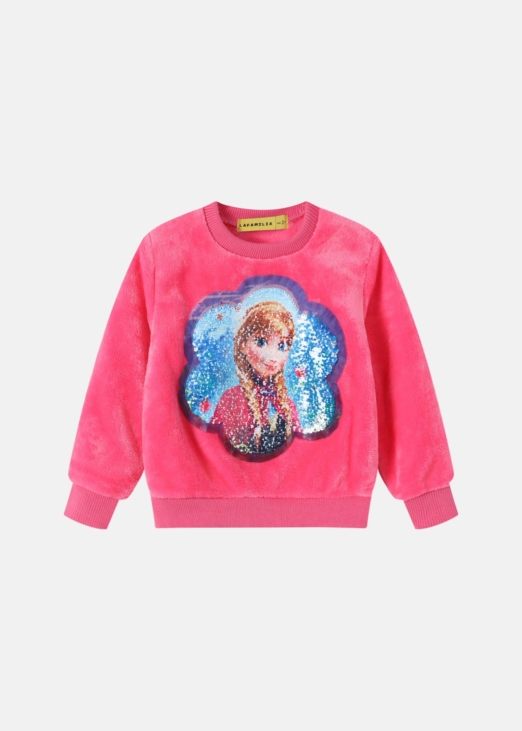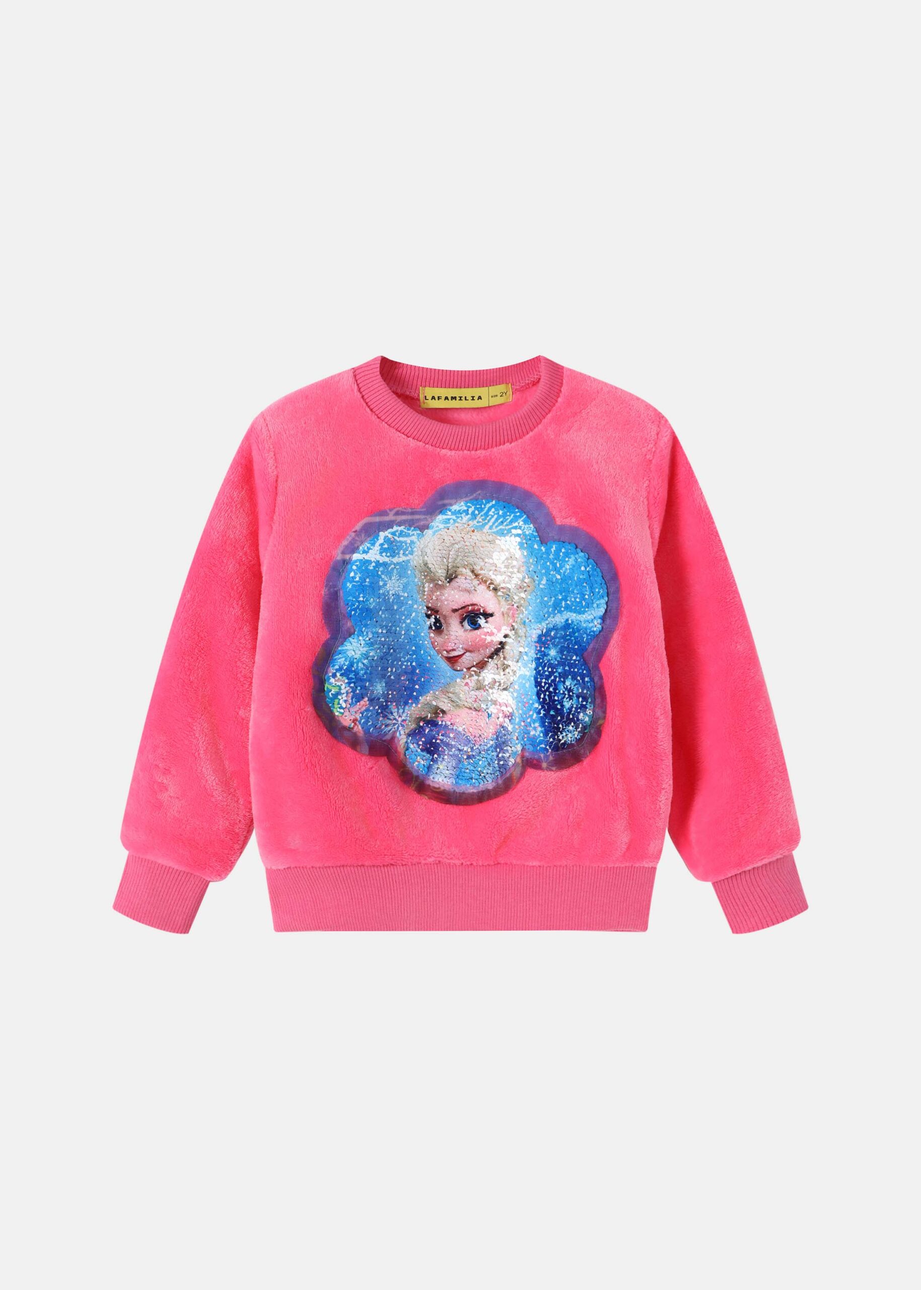 Kids girl pajama, two-pieces, two-way sequin embroidery design from the front “Elsa & Anna” printed, blouse, round neck, long sleeves, trouser, plain, elastic waist, elastic ankle, practical and comfortable