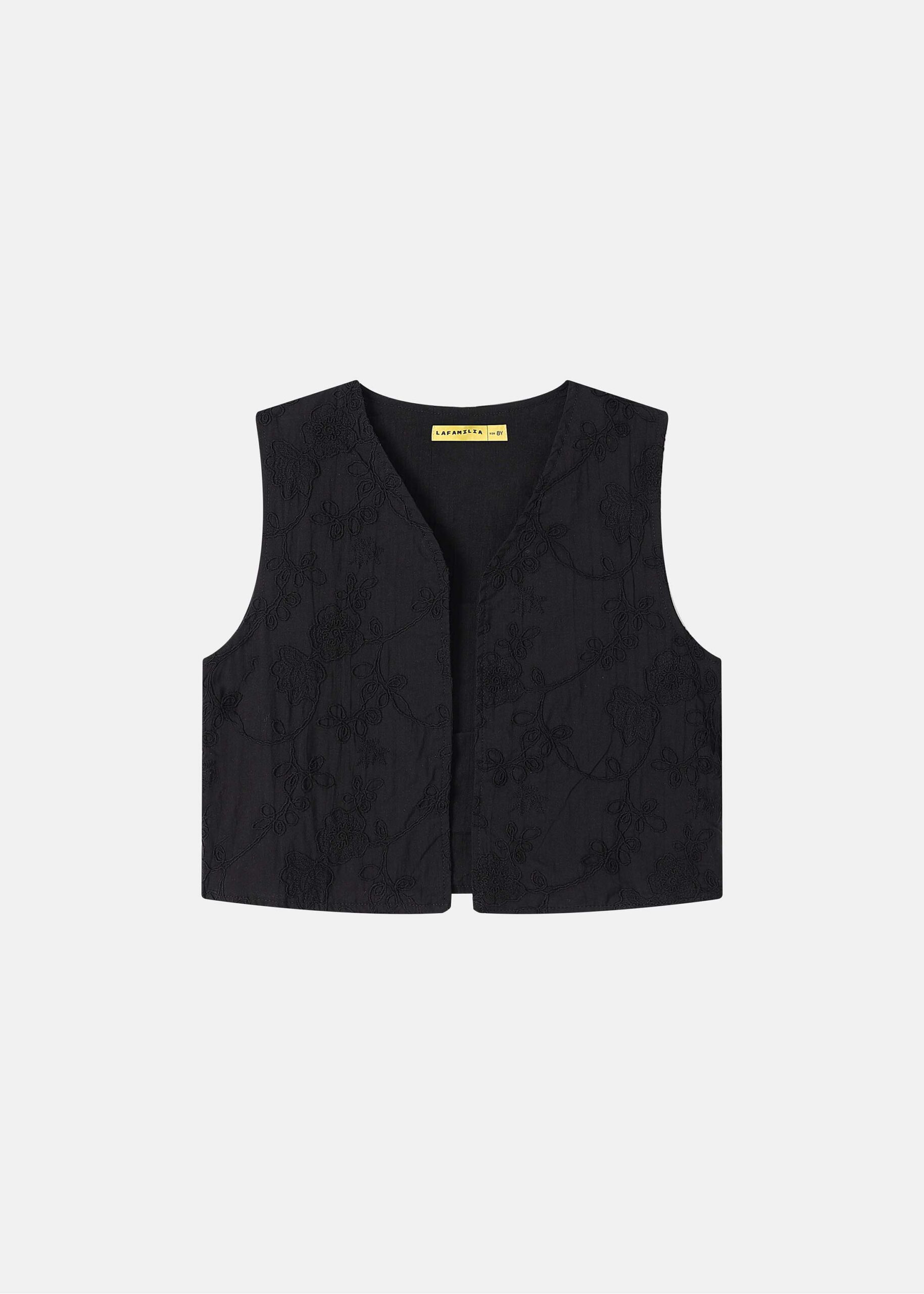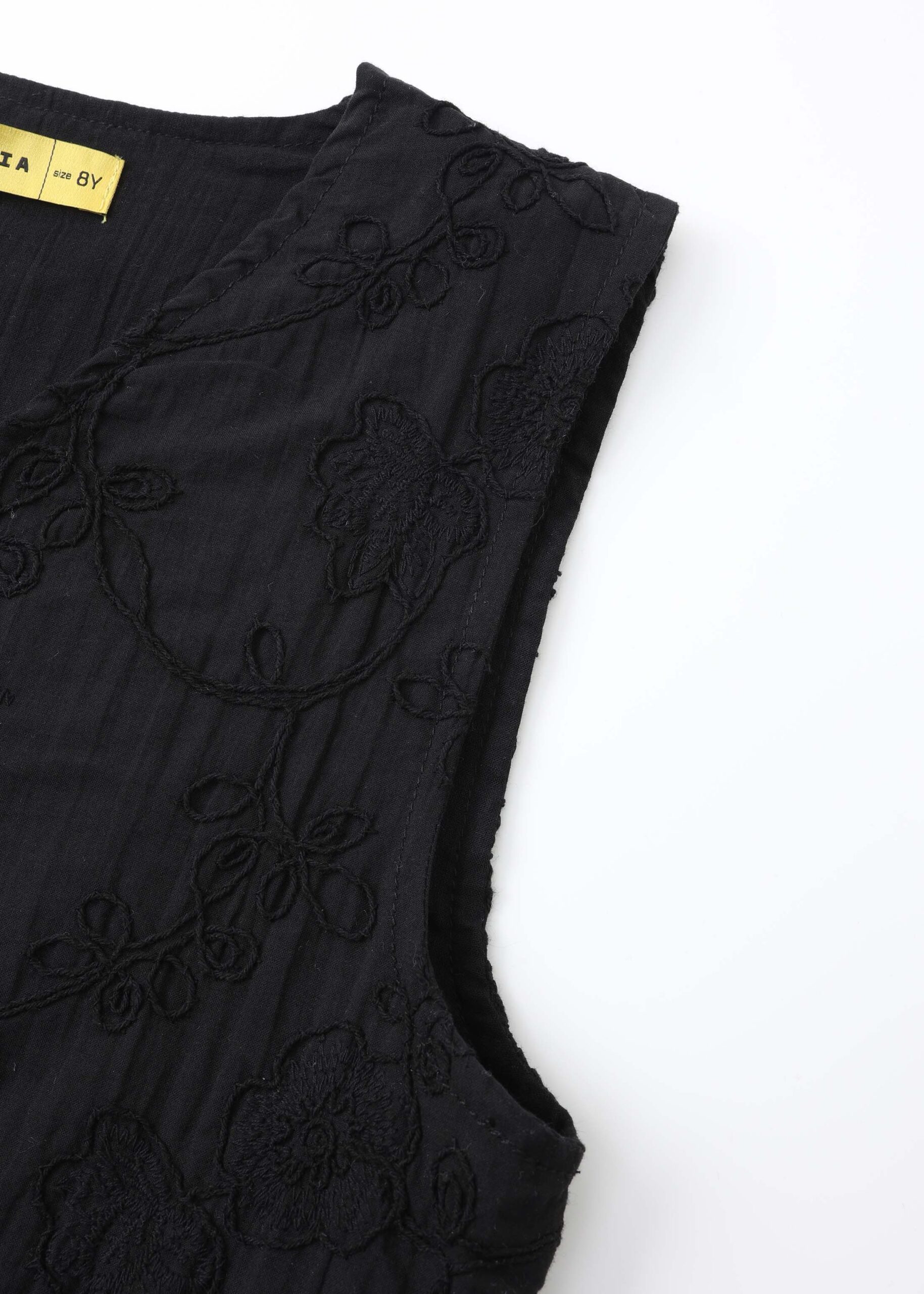 فيست اطفال بناتي, مزين بتطريز, مفتوح, ياقة سبعة, بدون اكمام, انيق وعصري