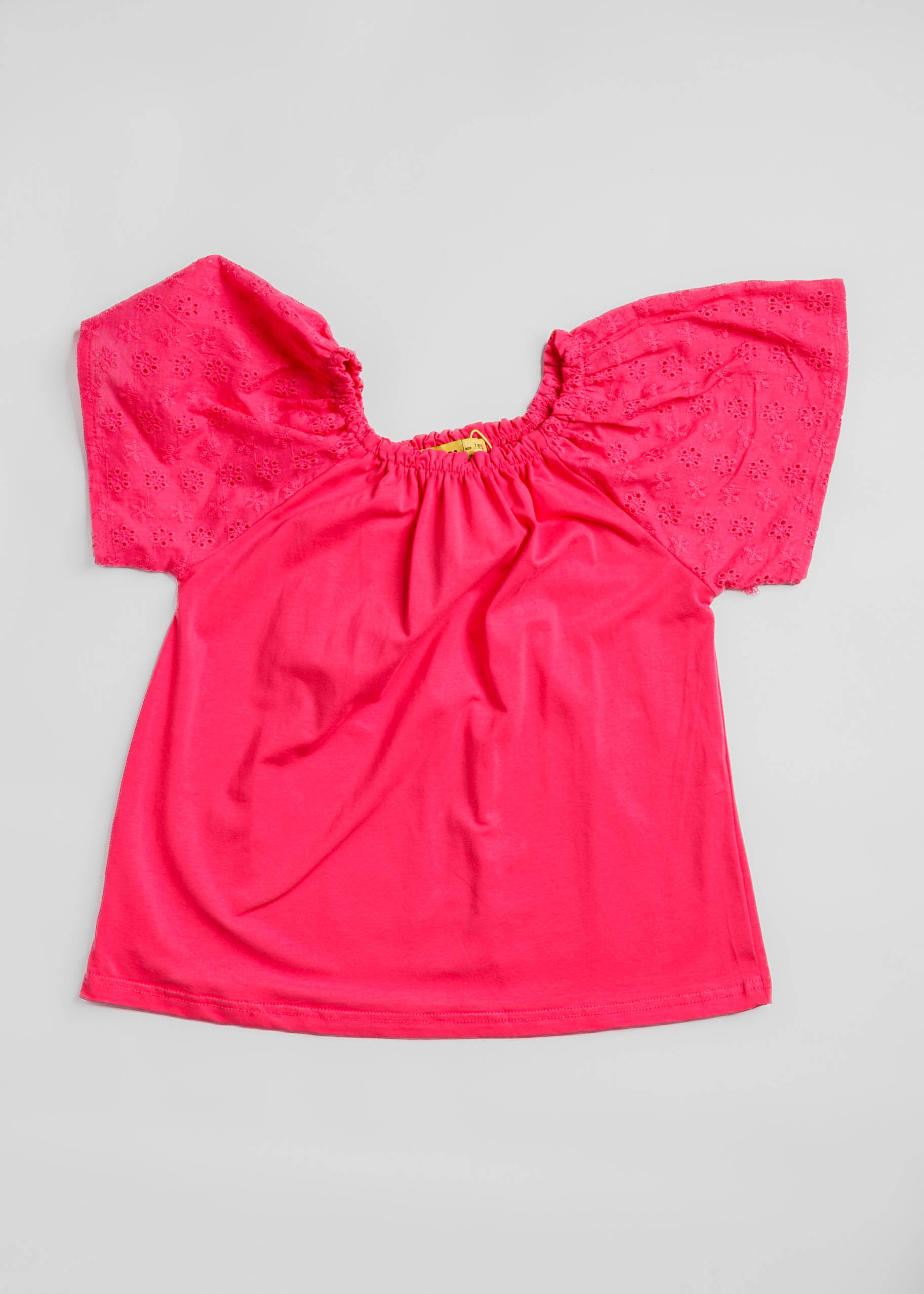 تيشيرت اطفال بناتي, سادة, ياقة مطاطية, اكمام قصيرة مطرزة, انيقة وعصرية