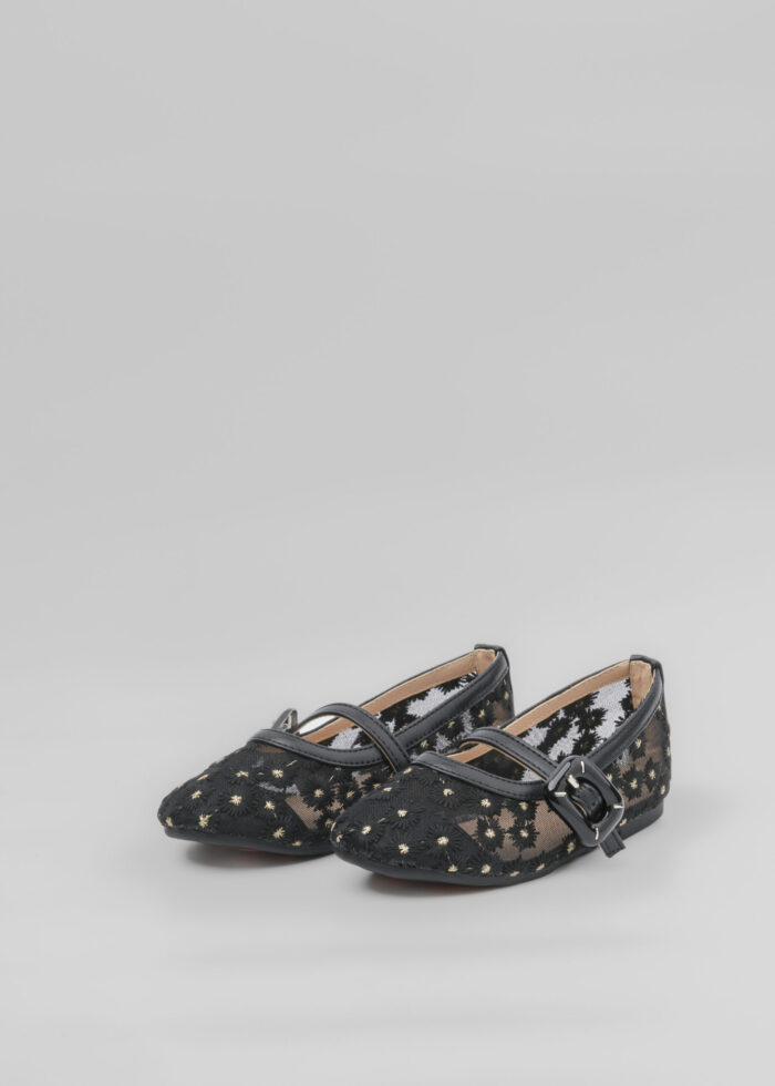 حذاء باليرينا أطفال بناتي بنسيج شبكي مزخرف