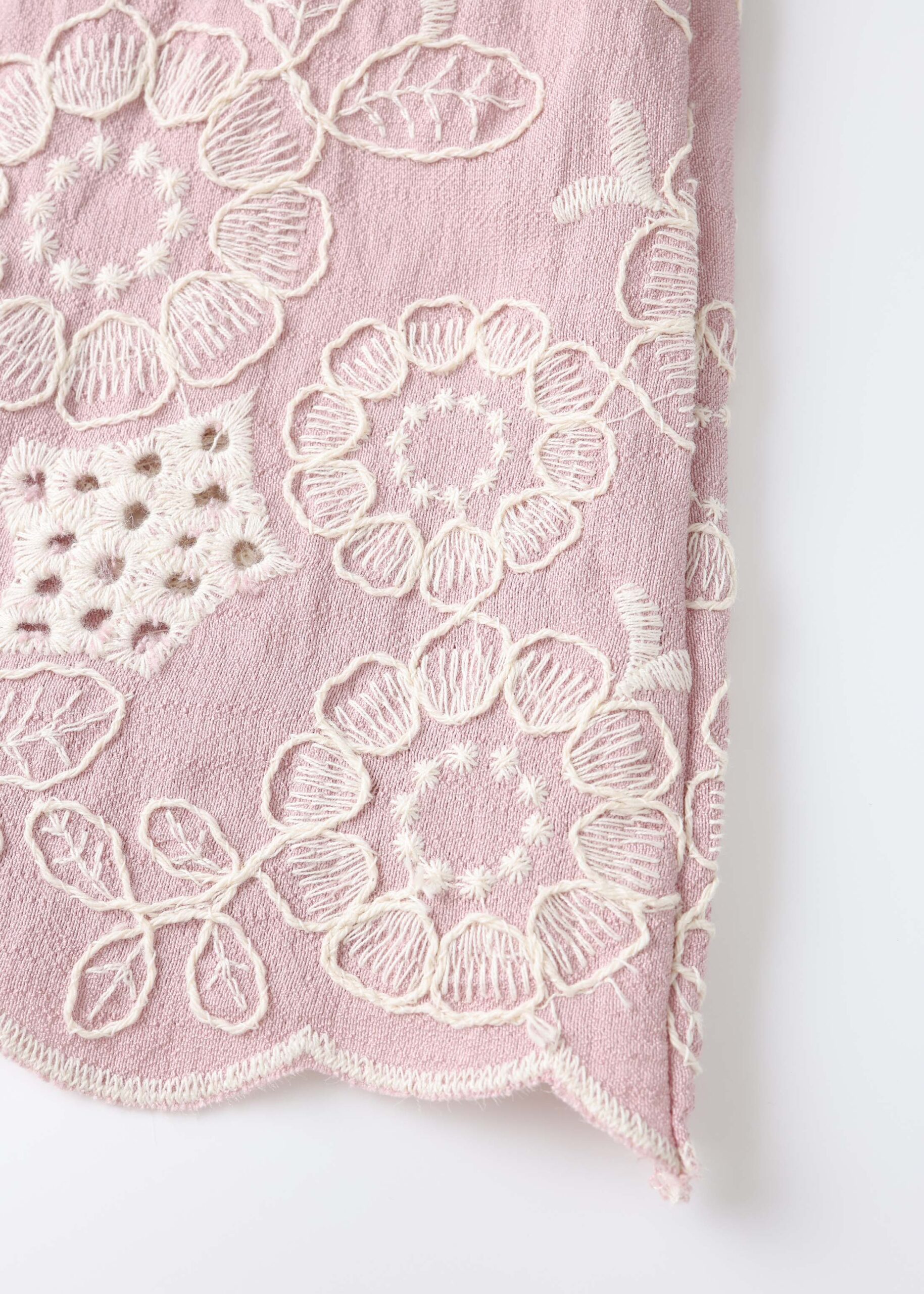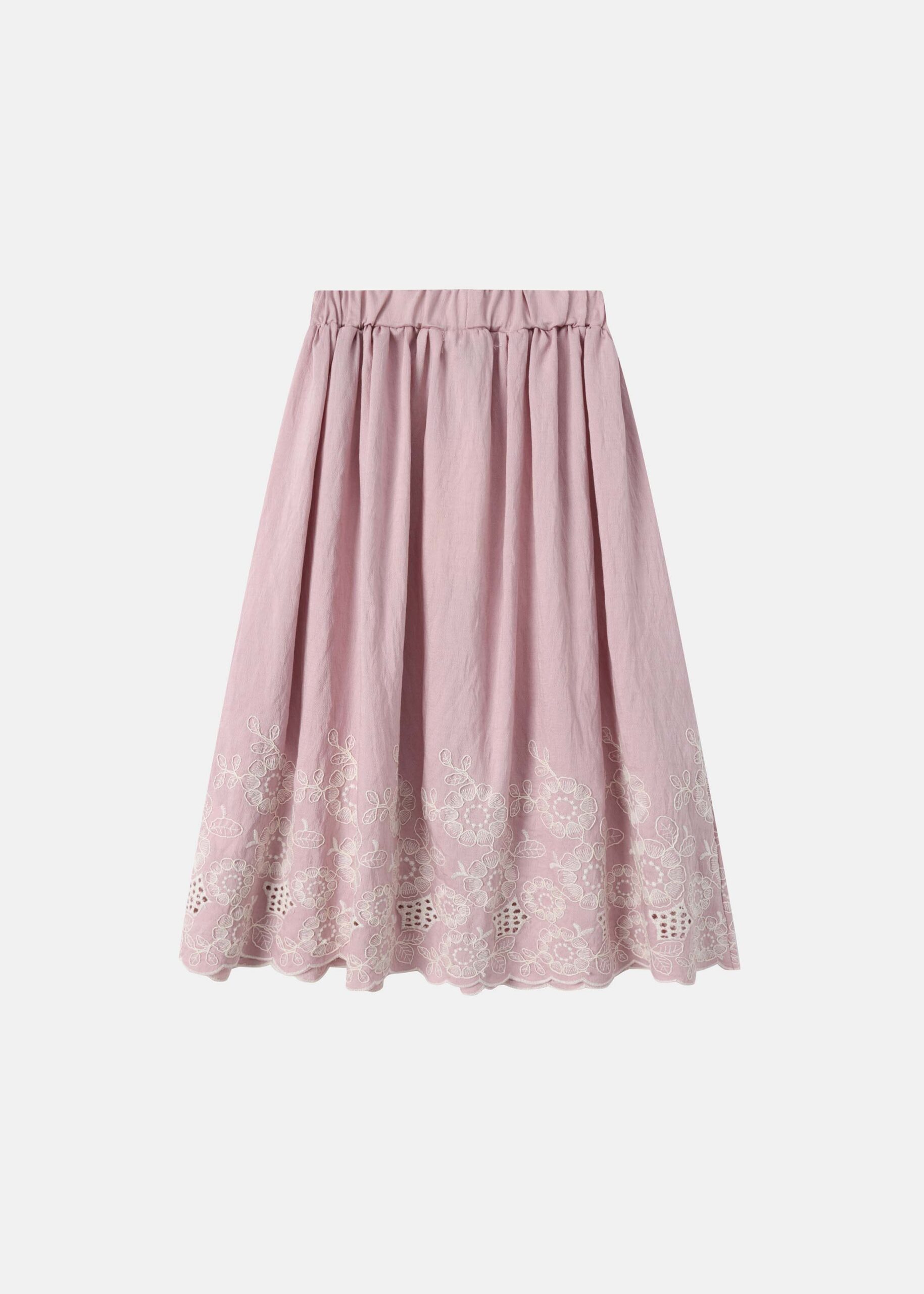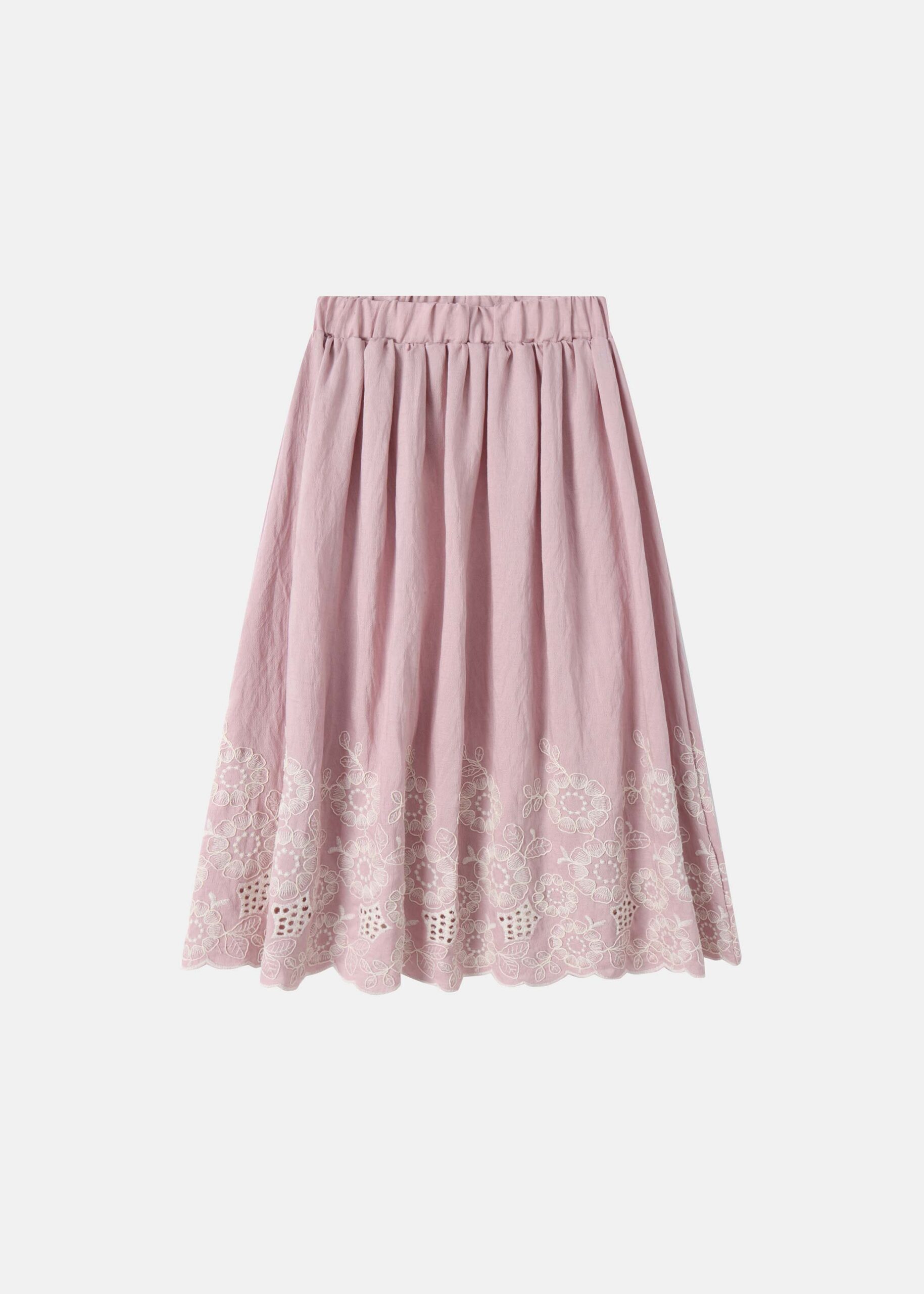 تنورة اطفال بناتي, خصر مطاطي, كسرات منسدلة, مزينة بتطريز بثقوب من الاسفل, انيقة وعصرية