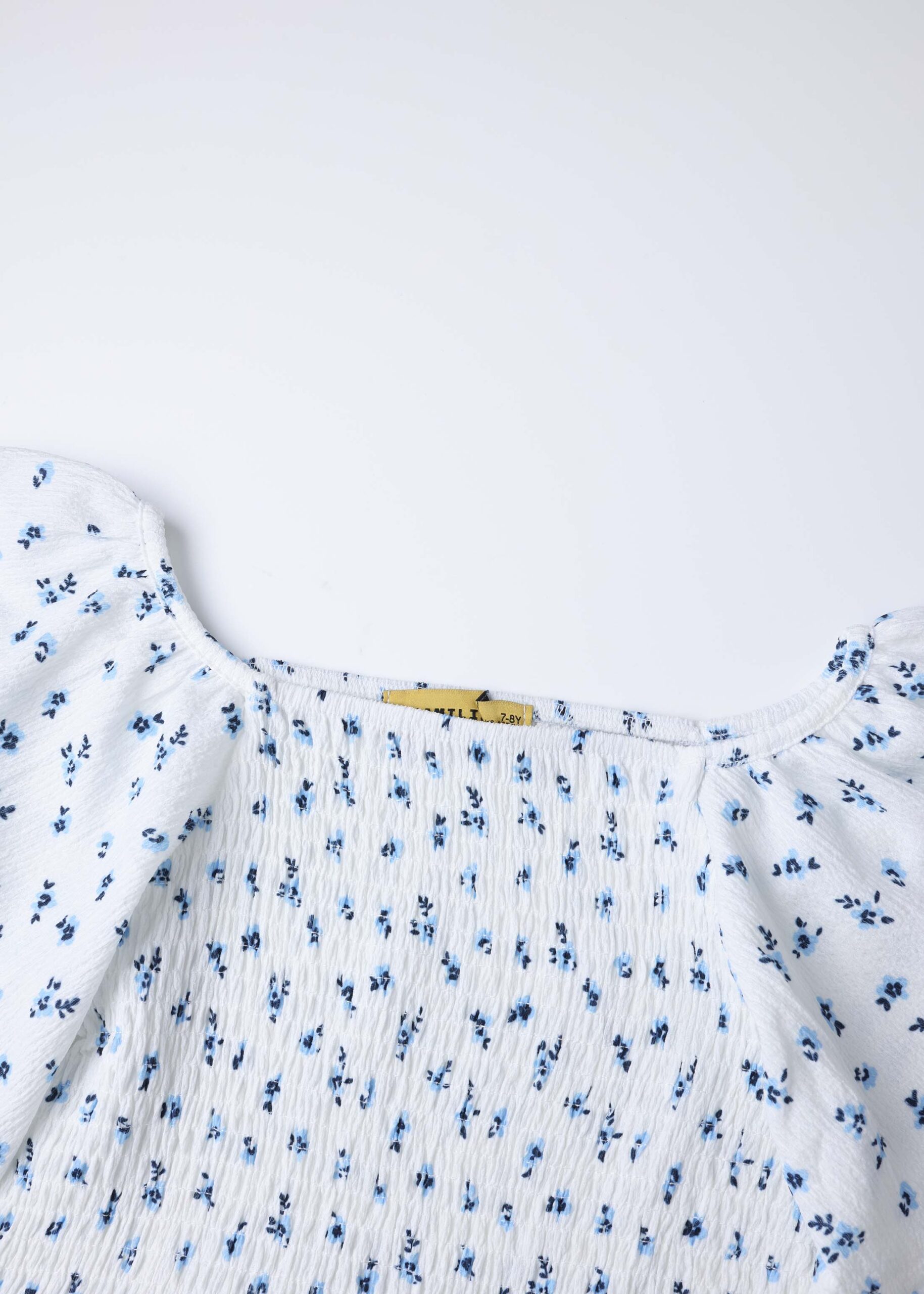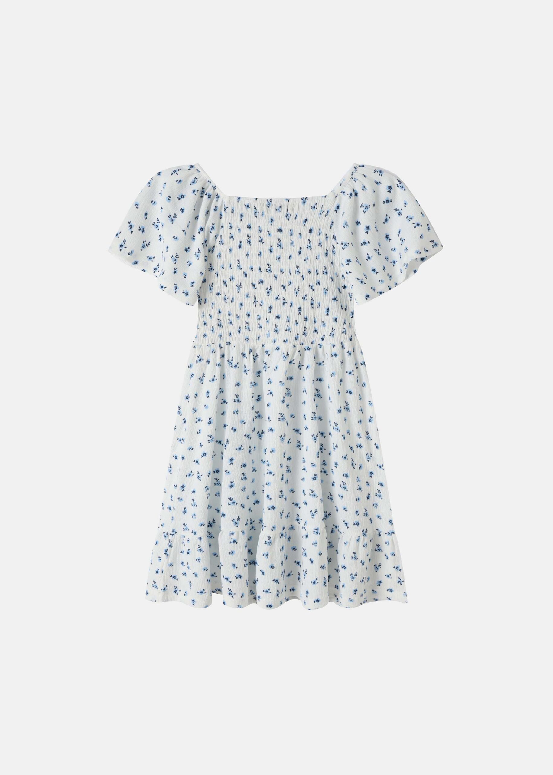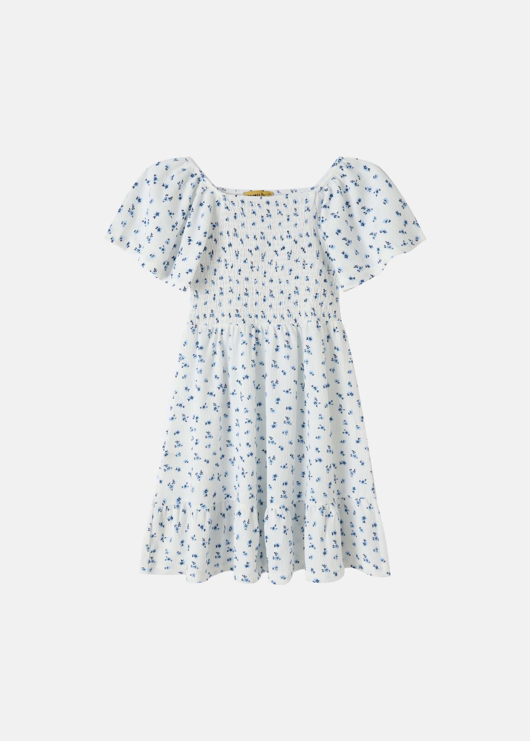 فستان اطفال بناتي, مورد, ياقة واسعة, اكمام قصيرة, تصميم مطاطي من الاعلى, طبقة كشكش, انيق وعملي