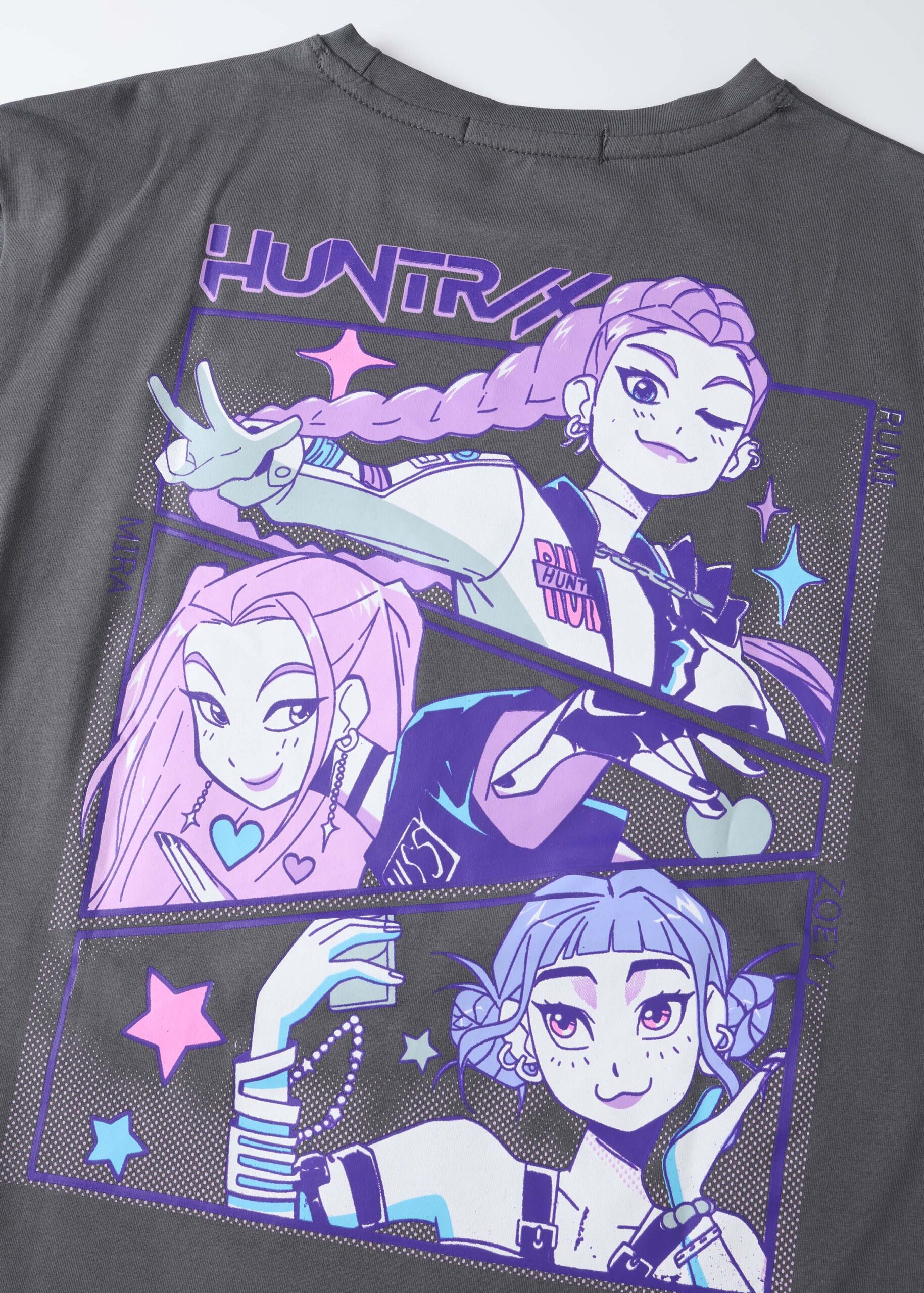 Kids girl t-shirt, “Huntrix” printed from the front and back, round neck, short sleeves, unique and modern
