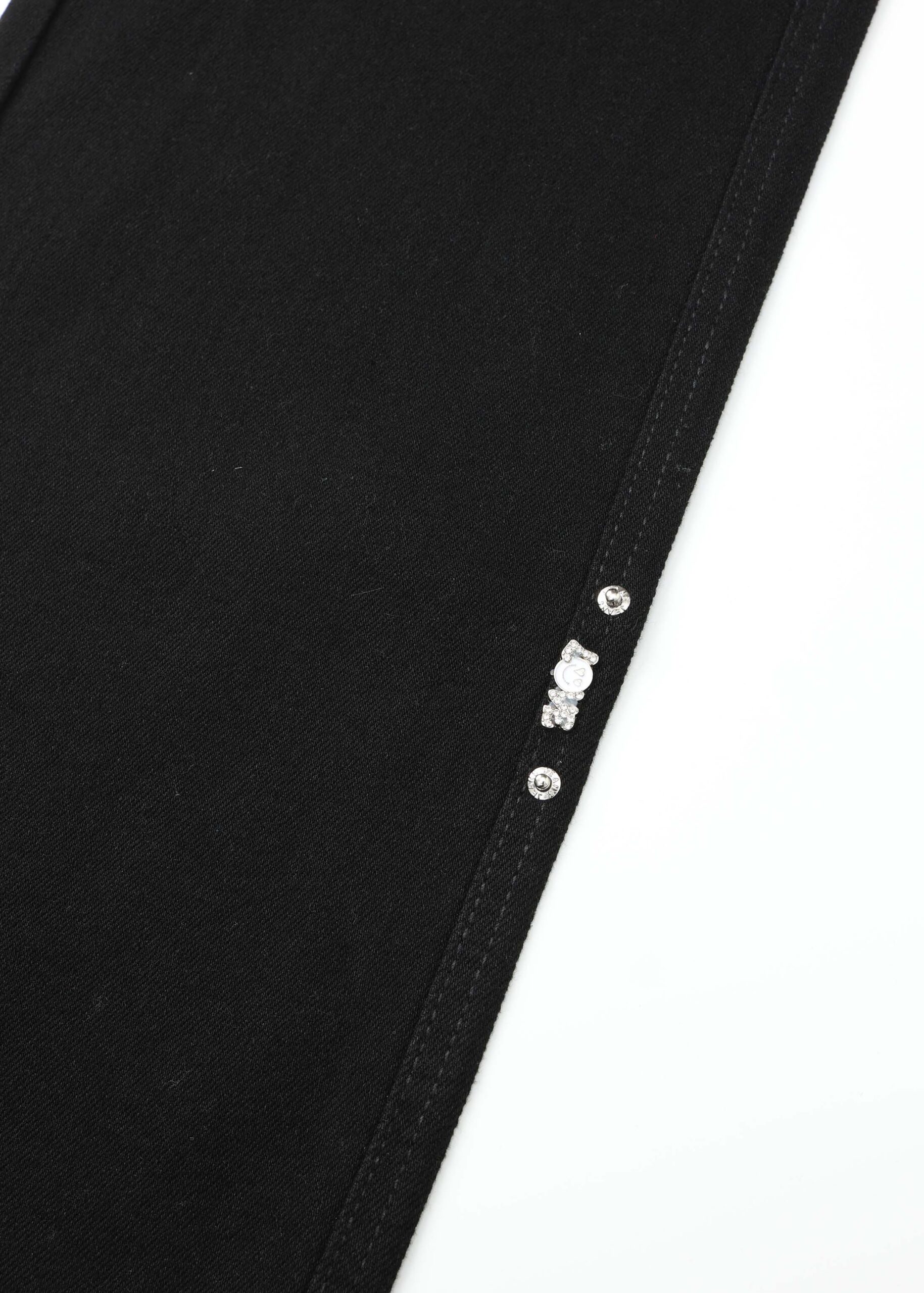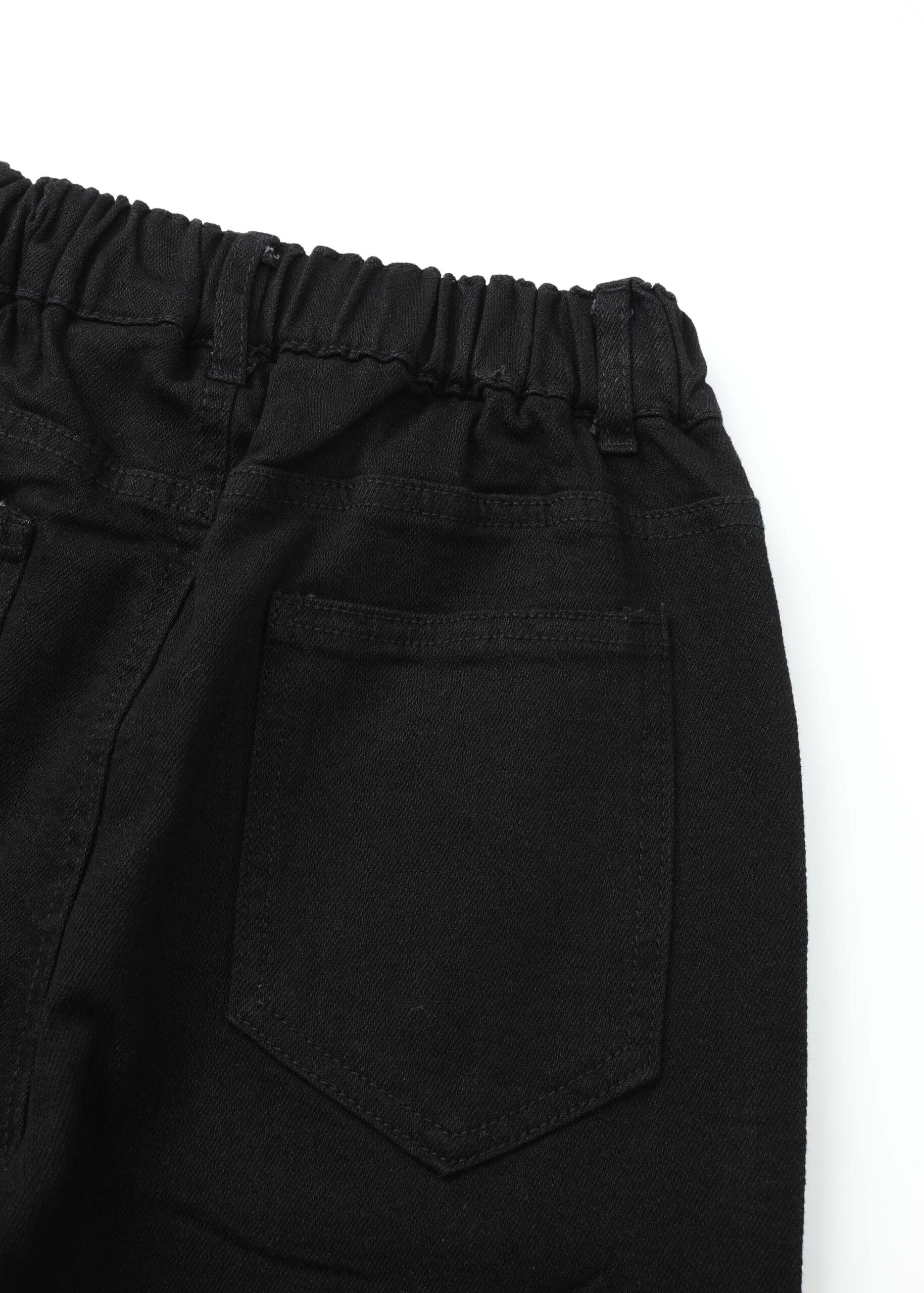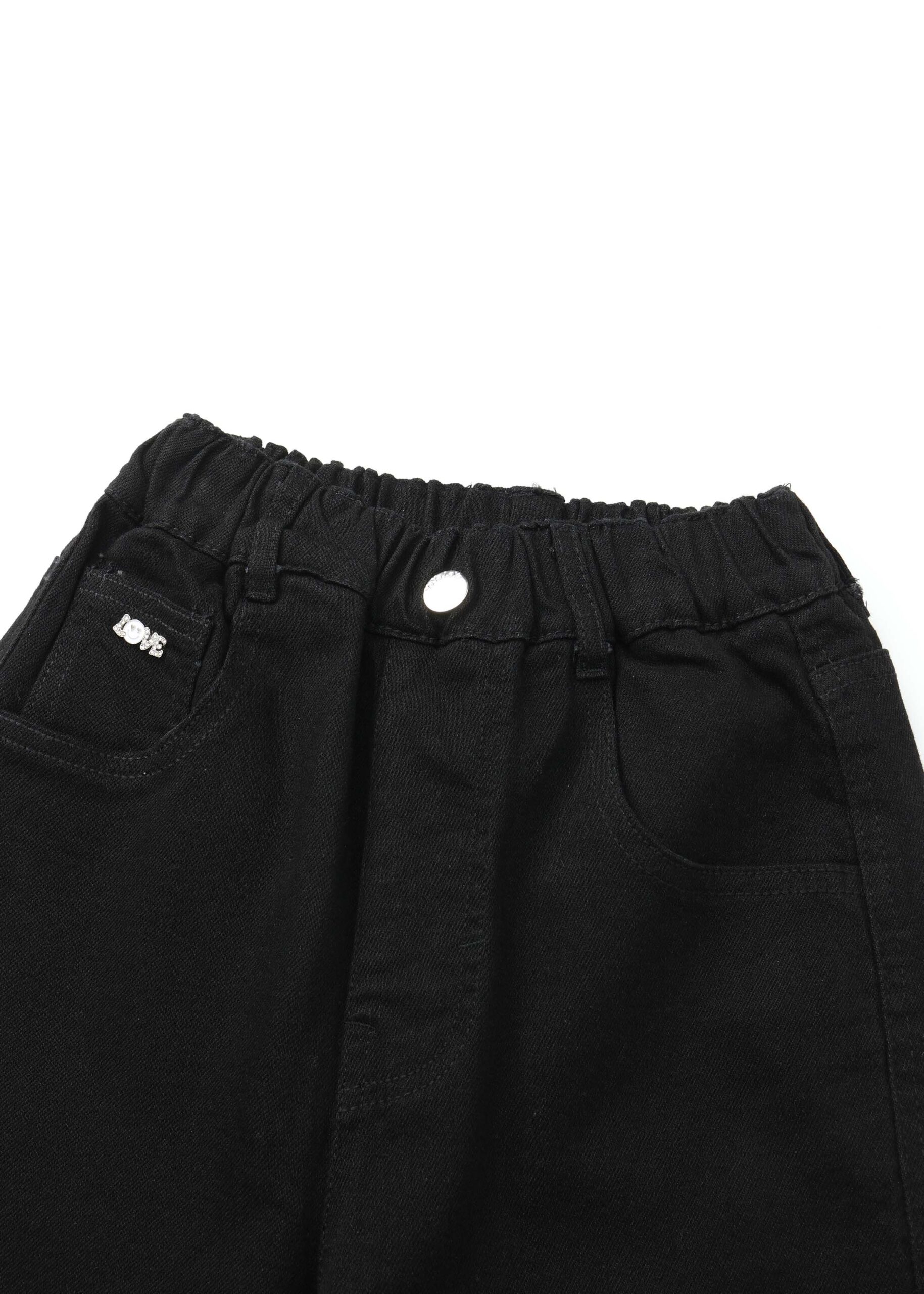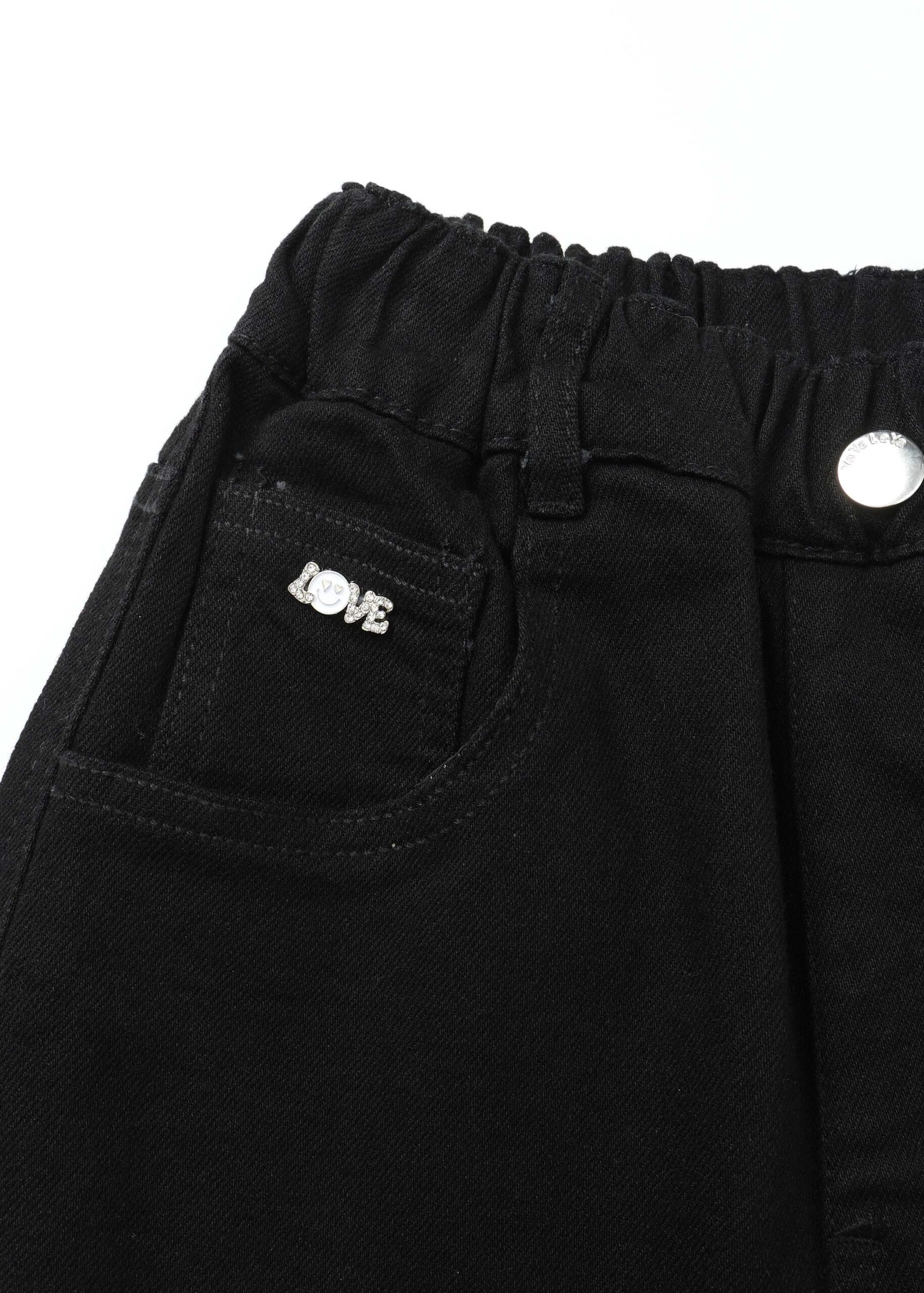 بنطلون أطفال بناتي, جينز, خصر مطاطي, زر وسحاب من الامام, جيوب من الامام والخلف, طباعة “Love” مزينة بالستراس, انيق وعصري