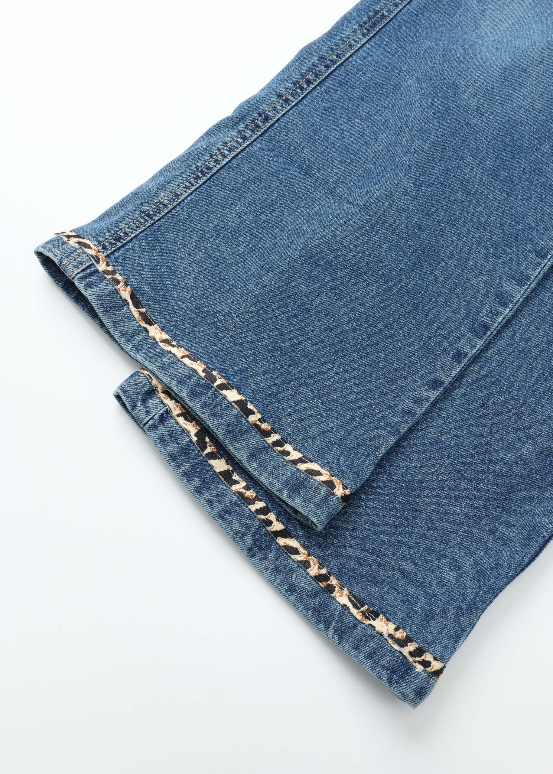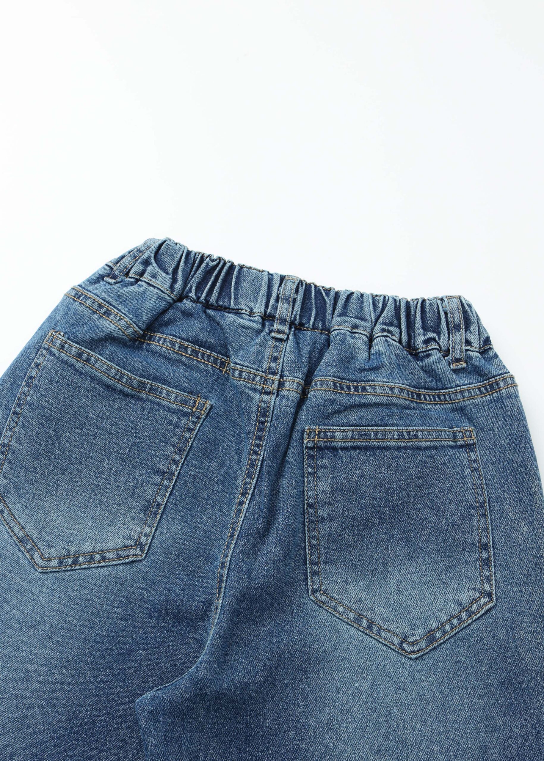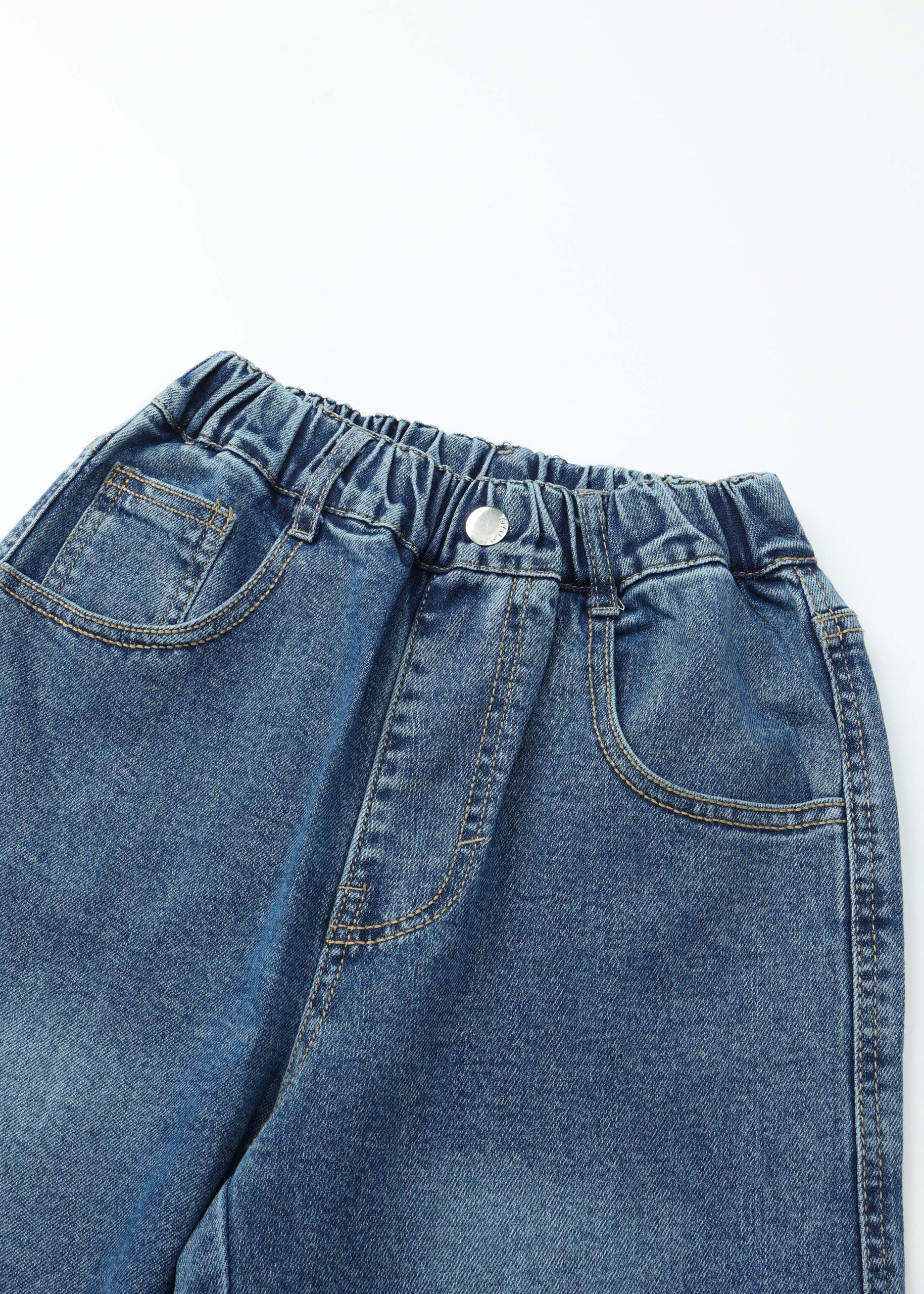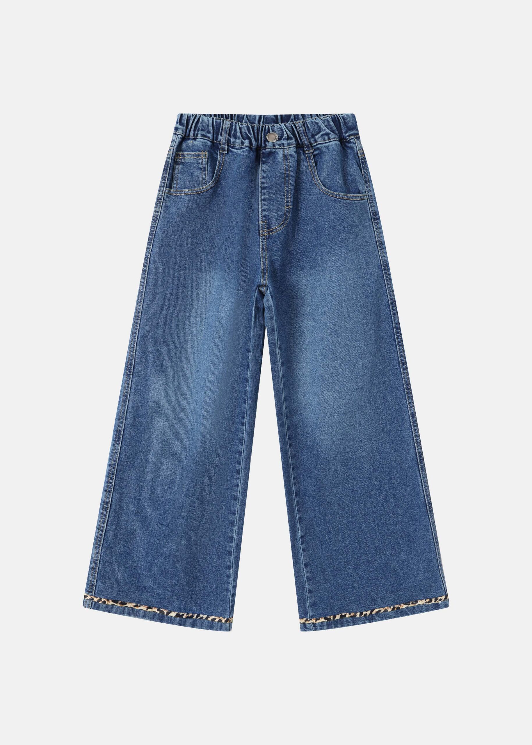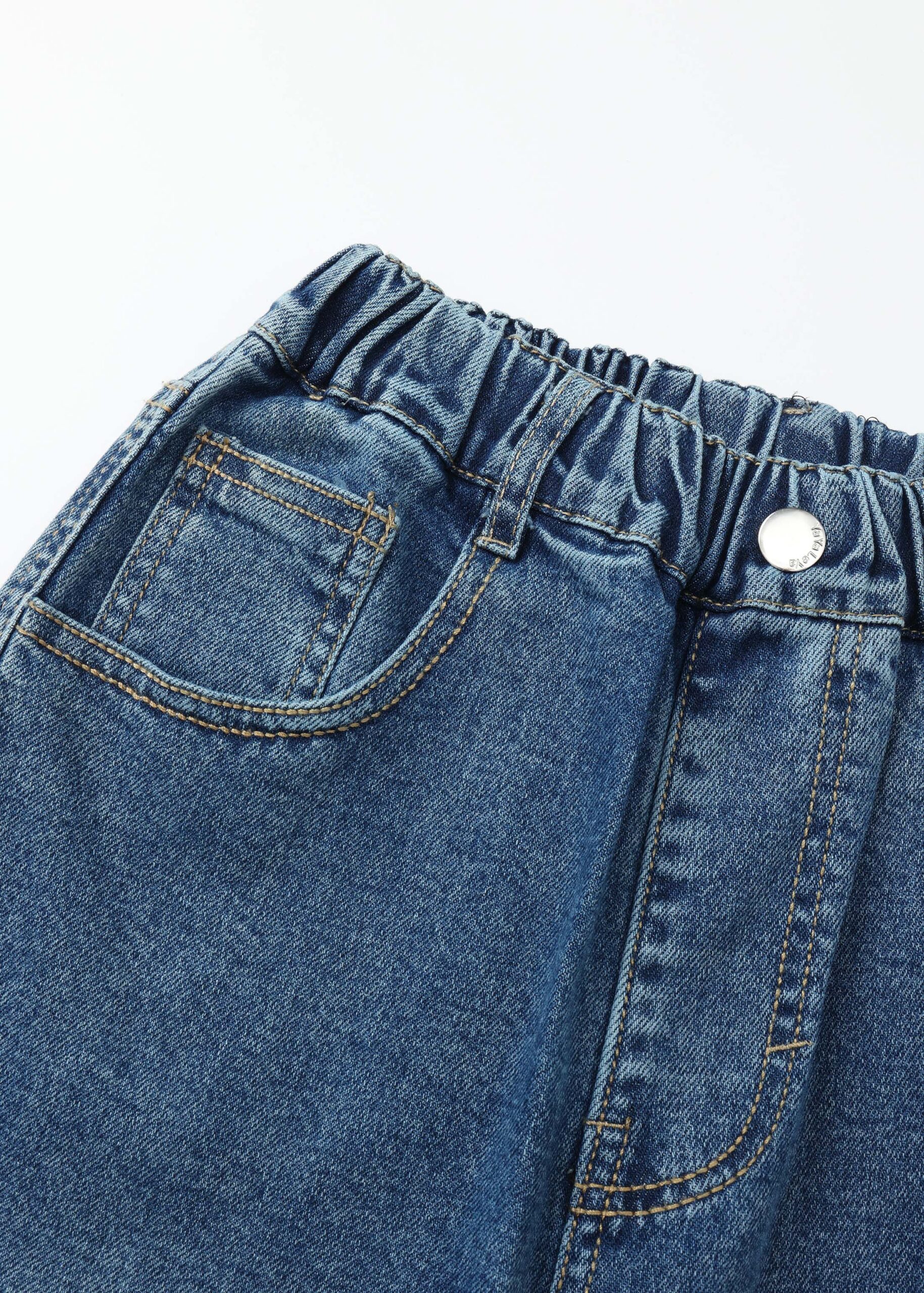 Kids girl trouser, jeans, elastic waist, front button and zipper closure, front and back pockets, unique and modern