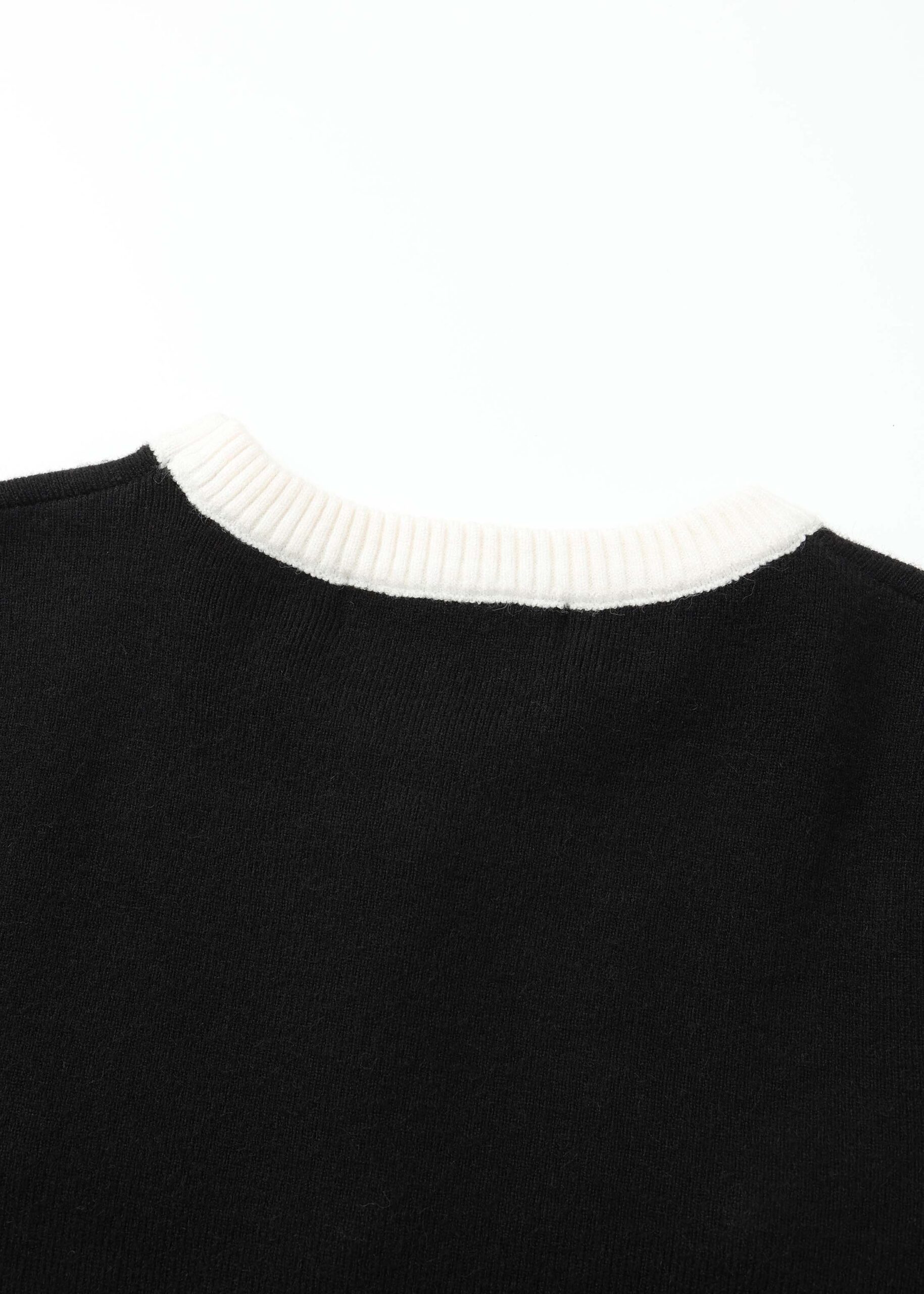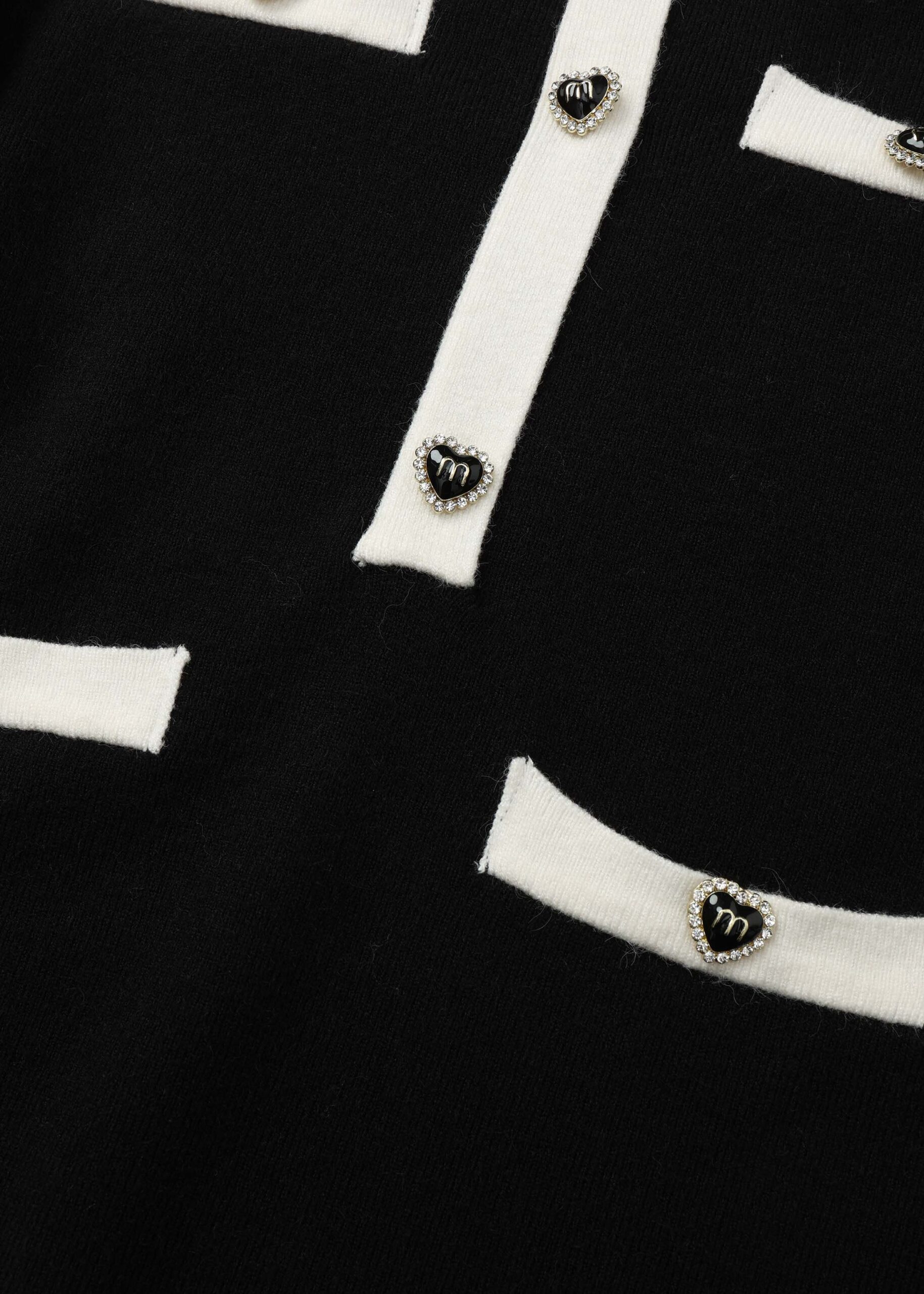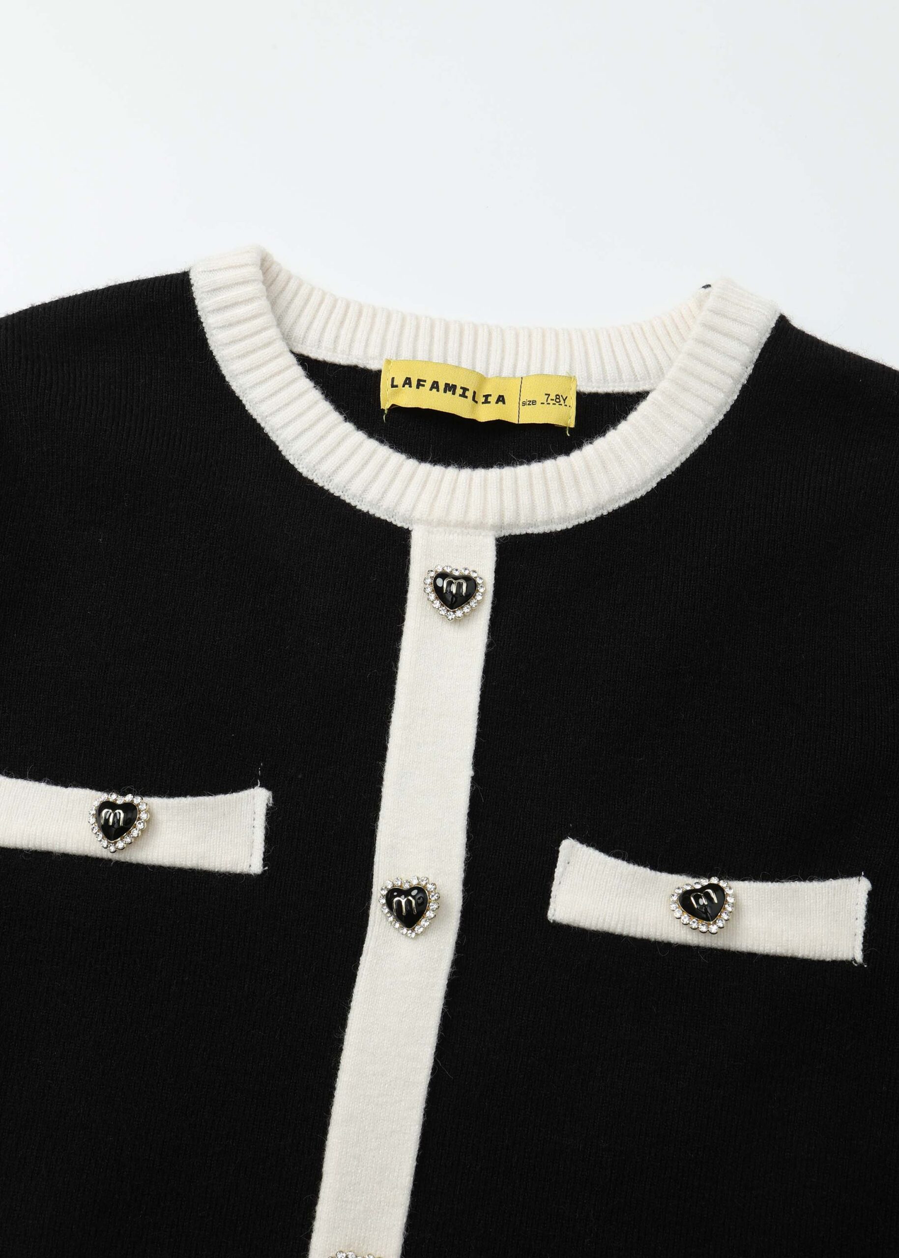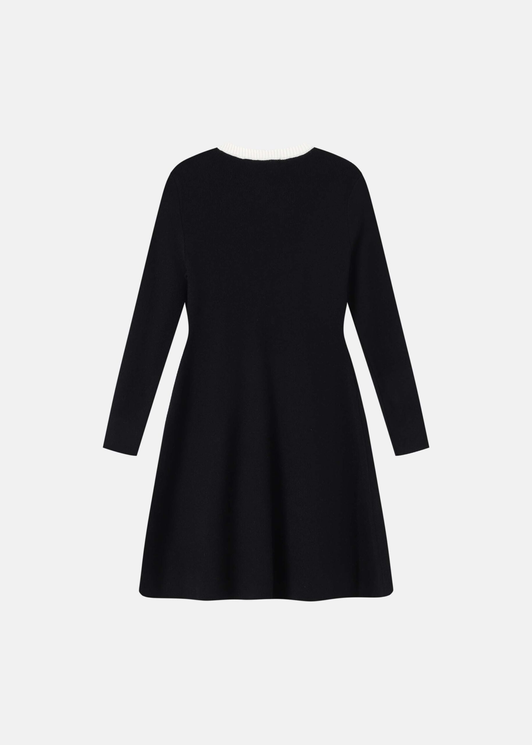 فستان أطفال بناتي, نسيج محبوك, قصير, ياقة مدورة مزينة بفيونكة من الامام, مزين بازرار من الامام, اكمام طويلة, جيوب من الامام, انيق وعصري