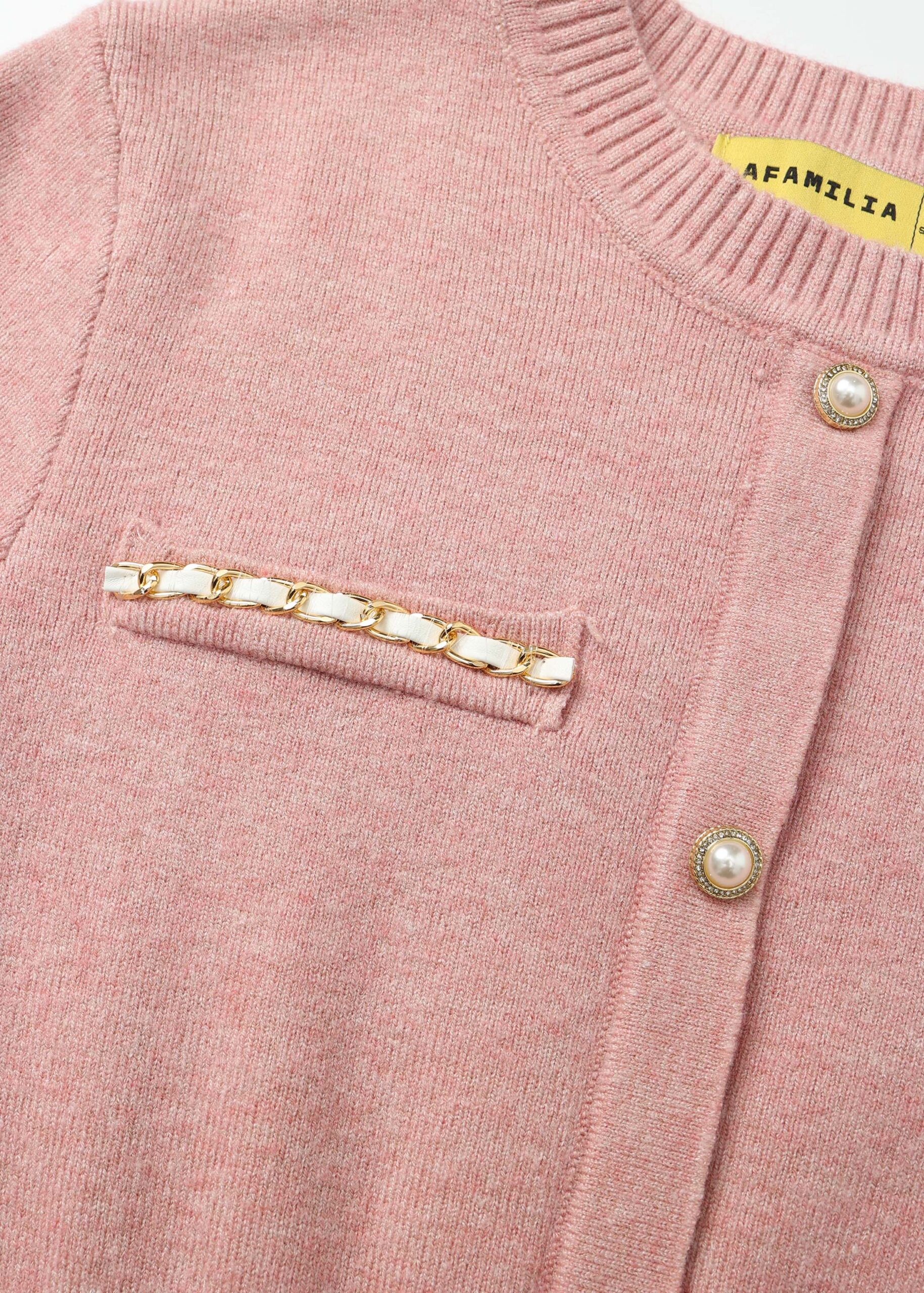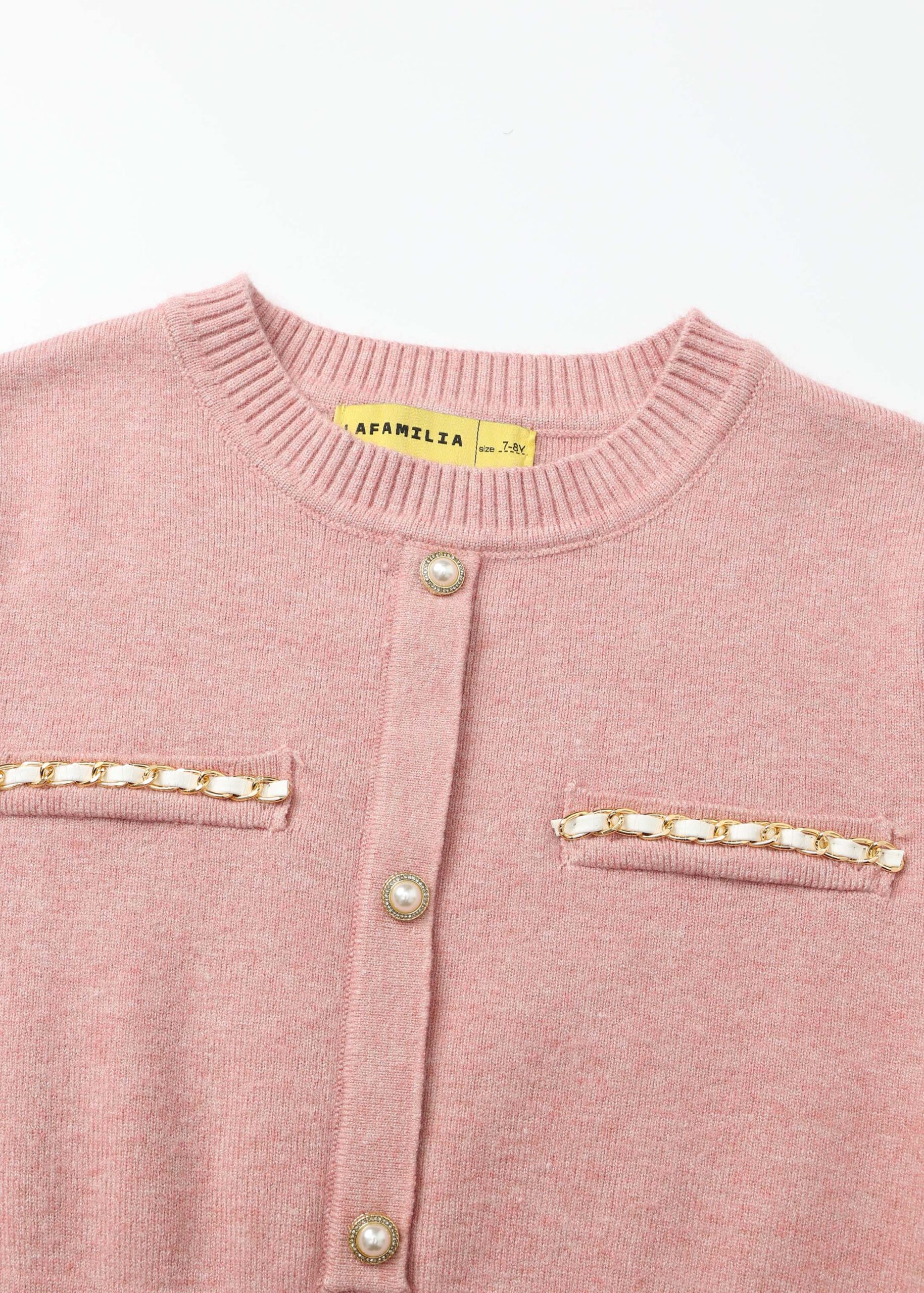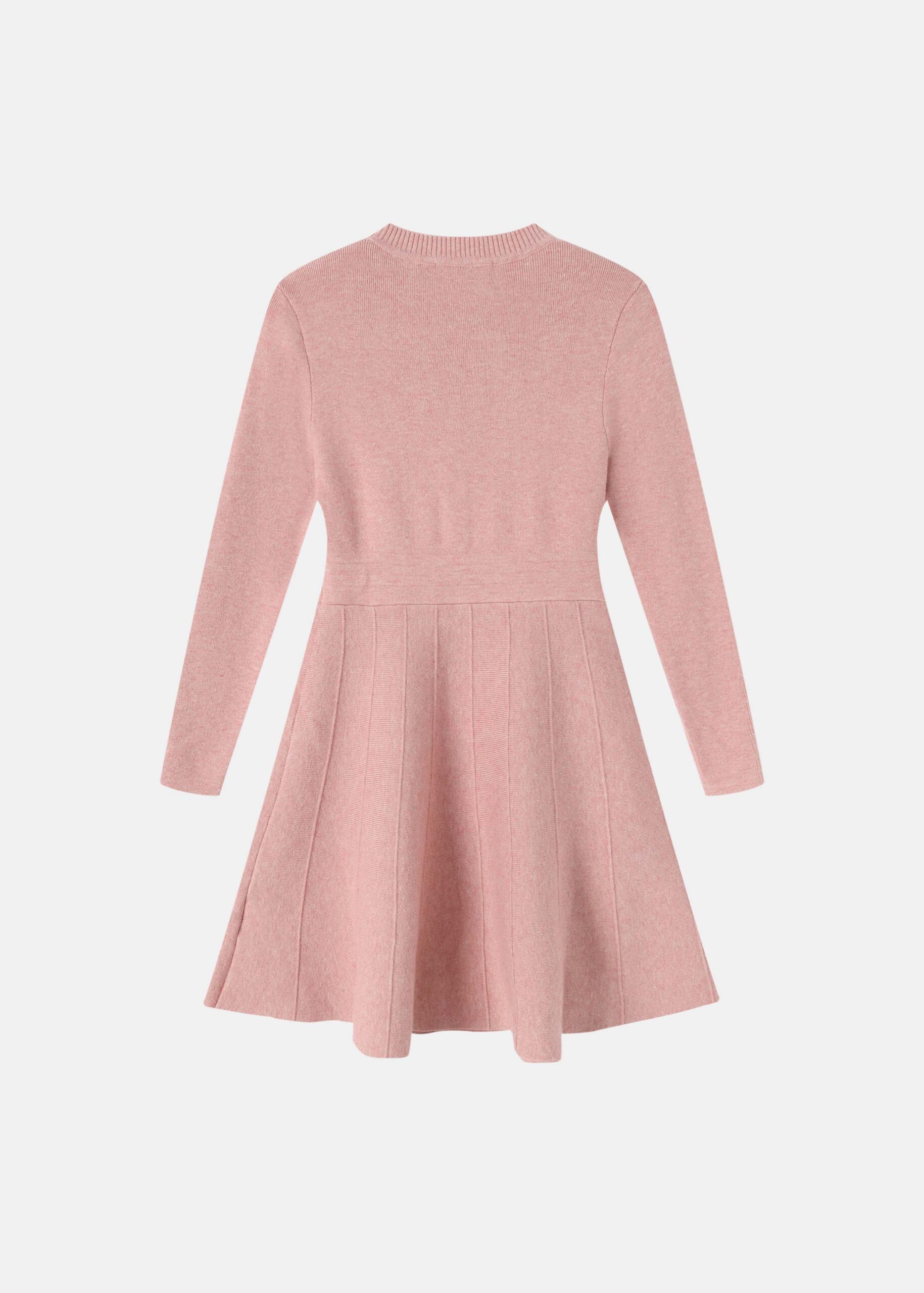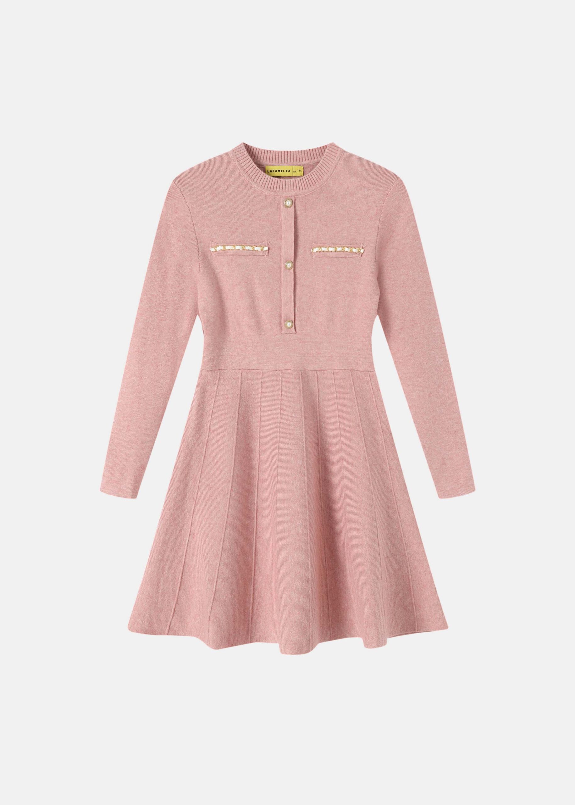 فستان اطفال بناتي, بنسيج محبوك, قصير, ياقة مدورة, مزين بازرار من الامام, جيوب وهمية, اكمام طويلة, انيق وعصري