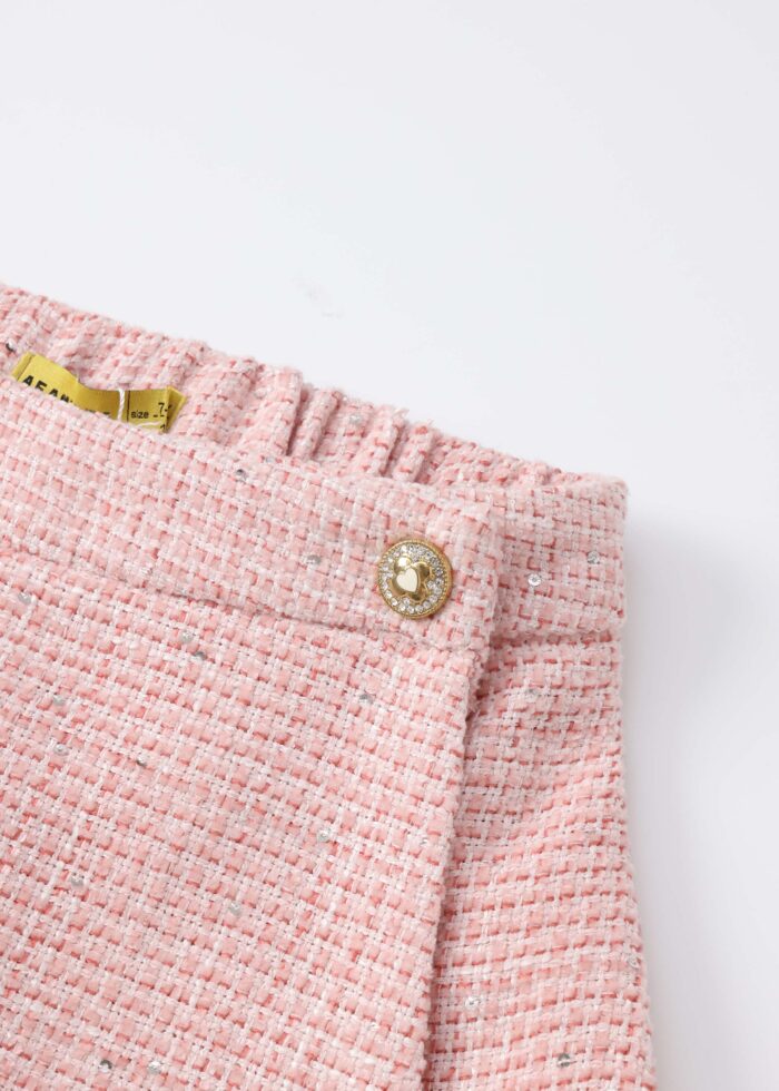 تنورة-شورت أطفال بناتي, نسيج محبوك, مزينة بخرز لامع, خصر مطاطي, تصميم ملتف من الامام مع زر من الجانب, انيقة وعصرية