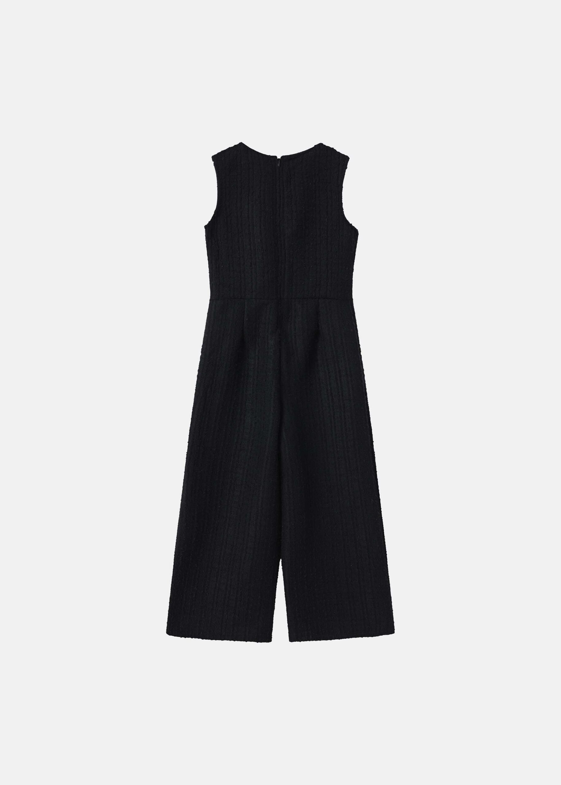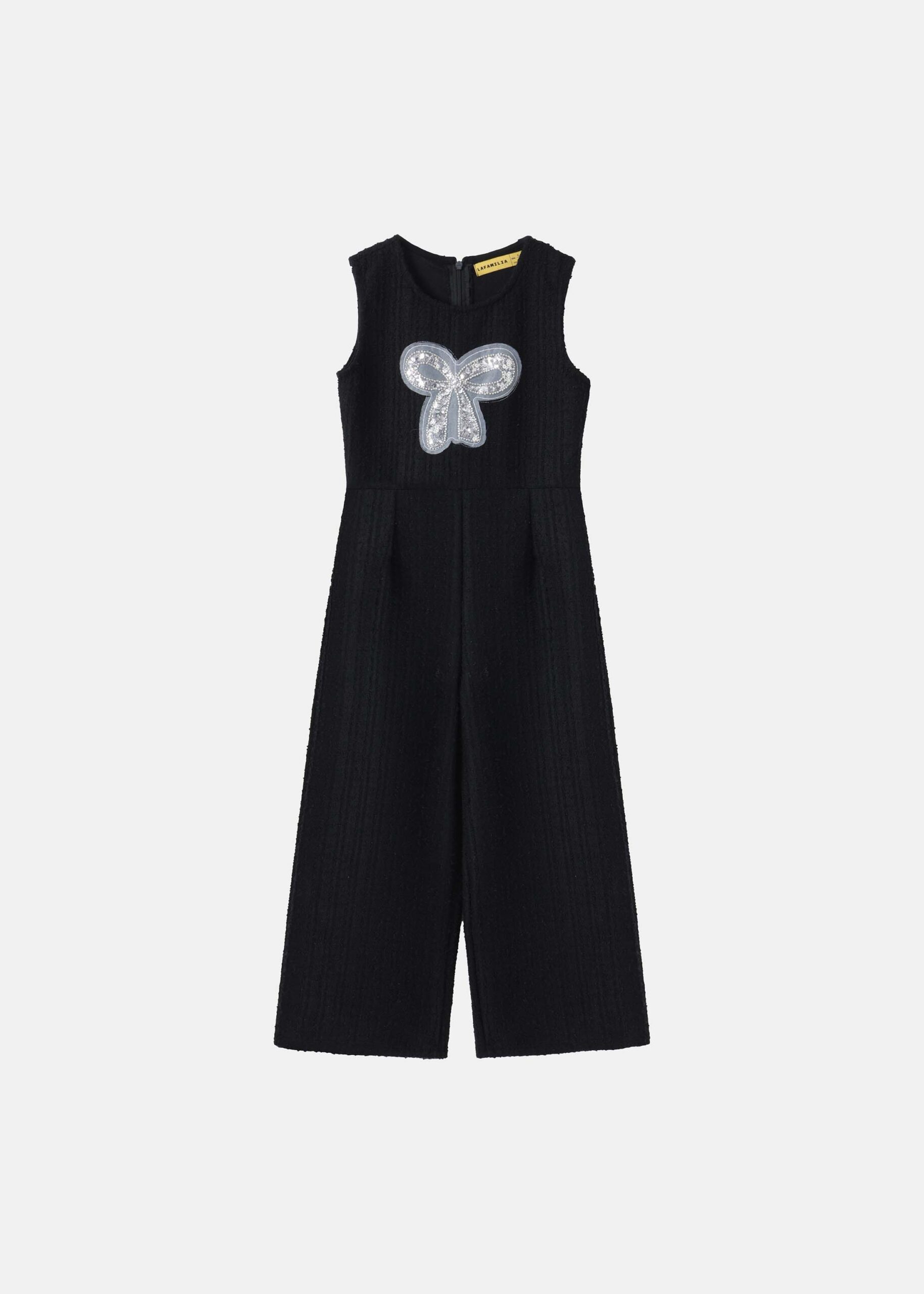 جمبسوت اطفال بناتي, نسيج محبوك, ياقة مدورة مع سحاب من الخلف للاغلاق, بدون اكمام, بنطلون ساق واسعة, مزين بفيونكة من الامام, انيق وعصري