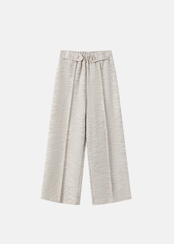 بنطلون اطفال بناتي, محبوك, بنقش, خصر مطاطي, ساق مستقيمة, كسرات من الامام, انيق وعصري