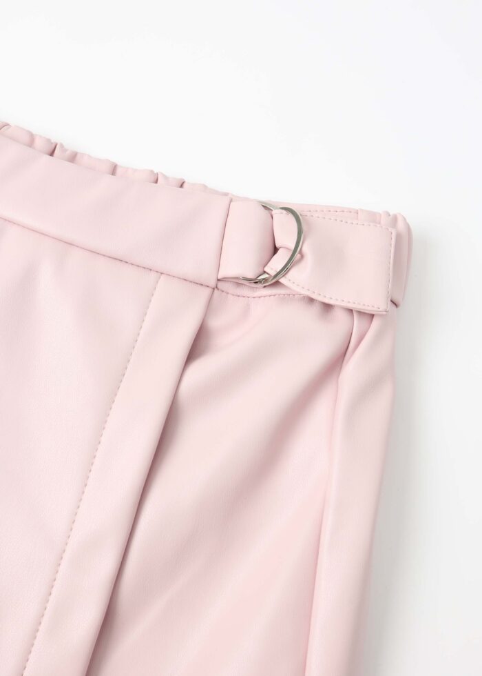تنورة-شورت أطفال بناتي, جلد, خصر مطاطي, تصميم ملتف من الامام مع مشبك من الجانب, انيقة وعصرية