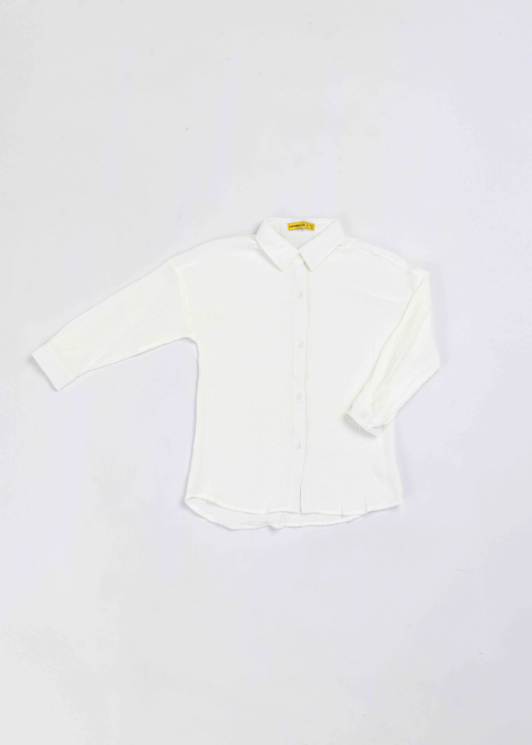 Kids girl shirt, patterned, rolled collar, front buttons to close, long sleeves with tight cuff, unique and modern