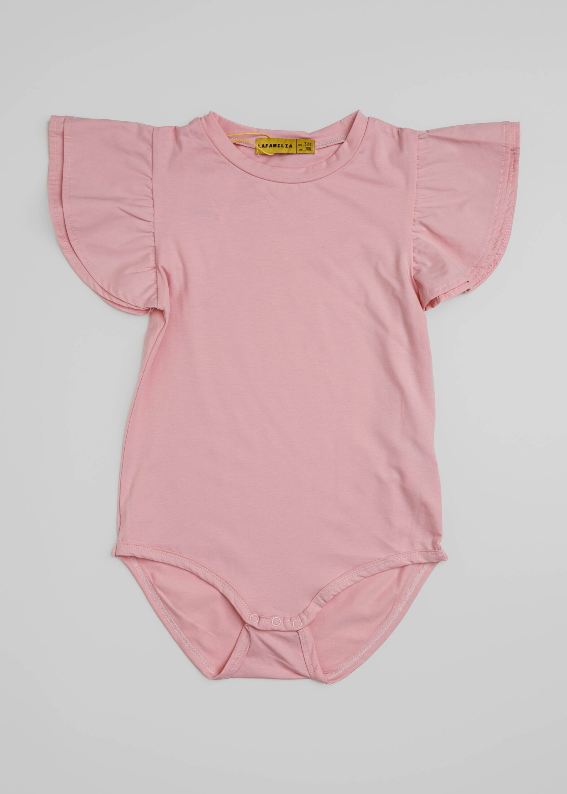 بودي سوت اطفال بناتي, سادة, ياقة مدورة, اكمام قصيرة كشكش, ازرار كبس من الاسفل للاغلاق, انيق وعملي