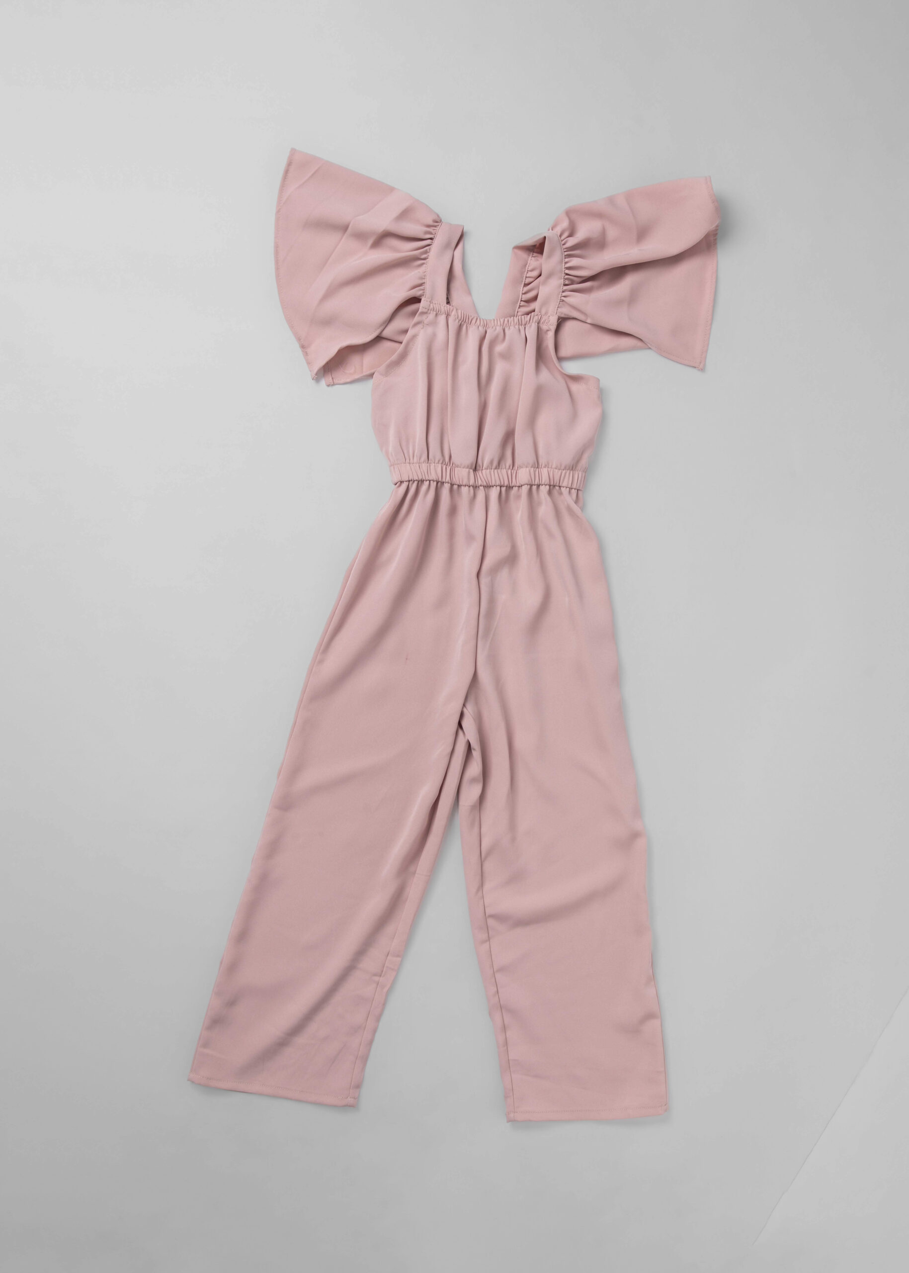جمبسوت اطفال بناتي, سادة, خصر مطاطي, اكمام كشكش قصيرة, ياقة مربعة, انيق وعصري