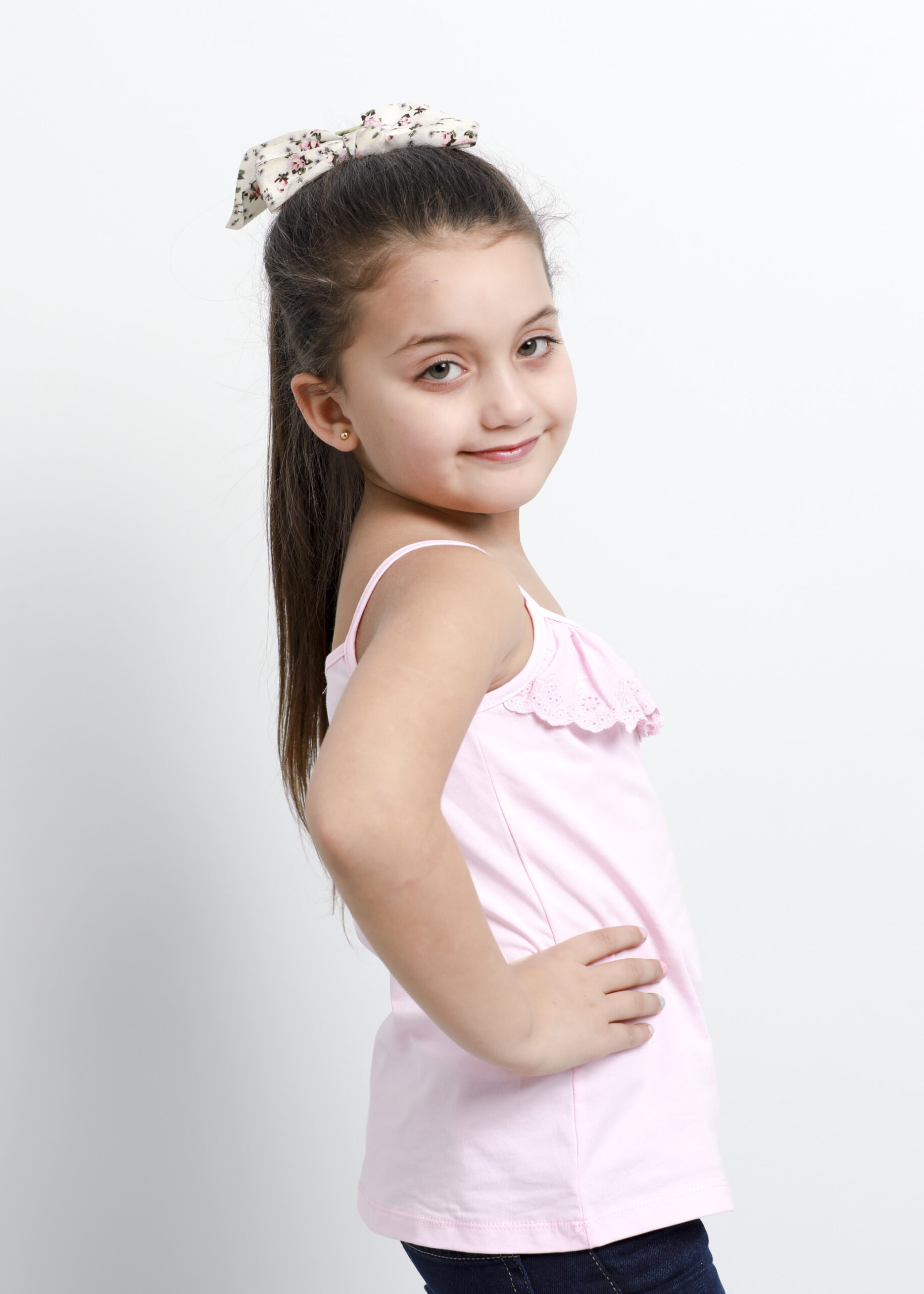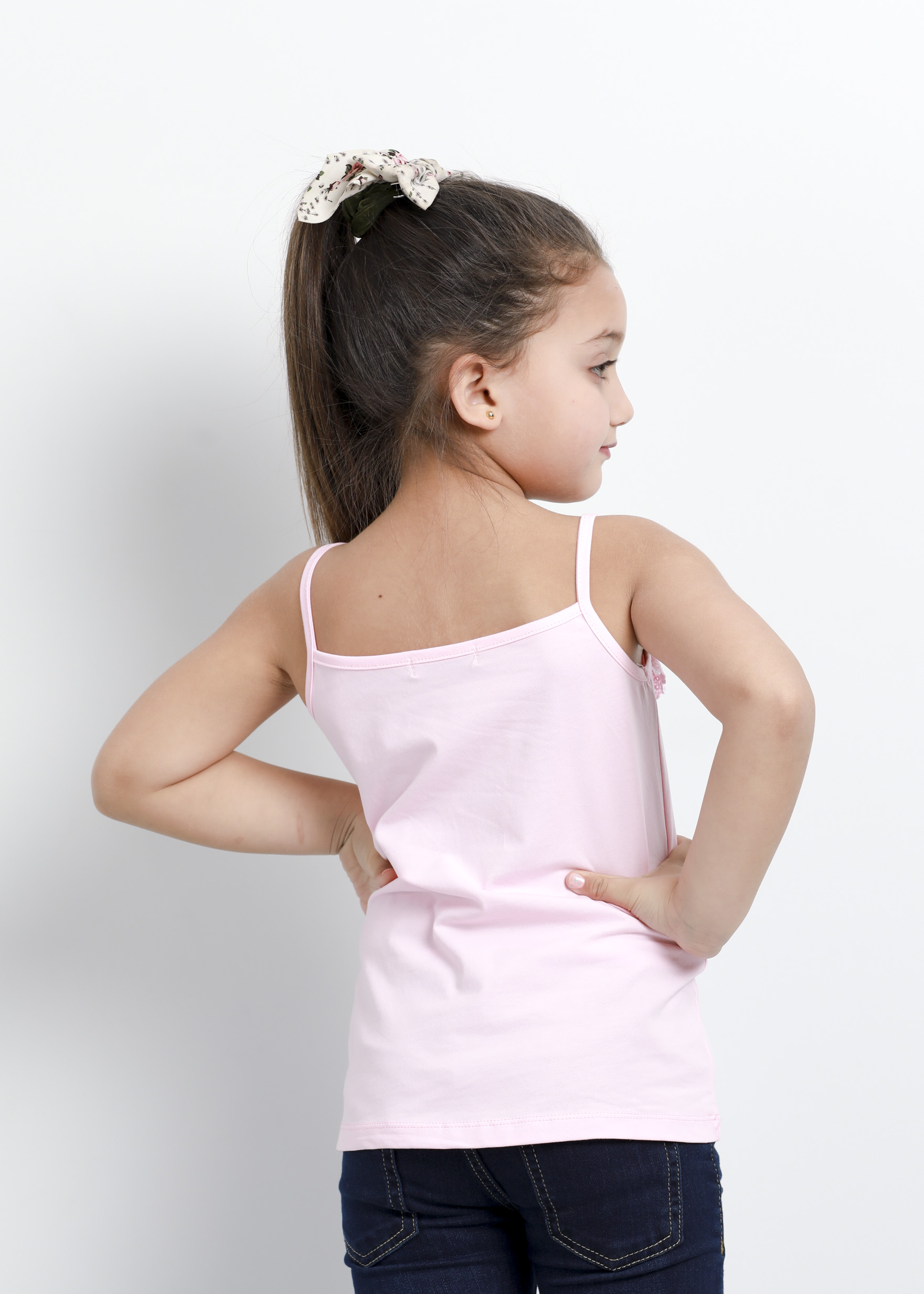 بلوزة اطفال بناتي, سادة, طبقة كشكش من الاعلى, بدون اكمام, ياقة مربعة, انيقة وعملية, 85% قطن 10% بوليستر 5% سباندكس