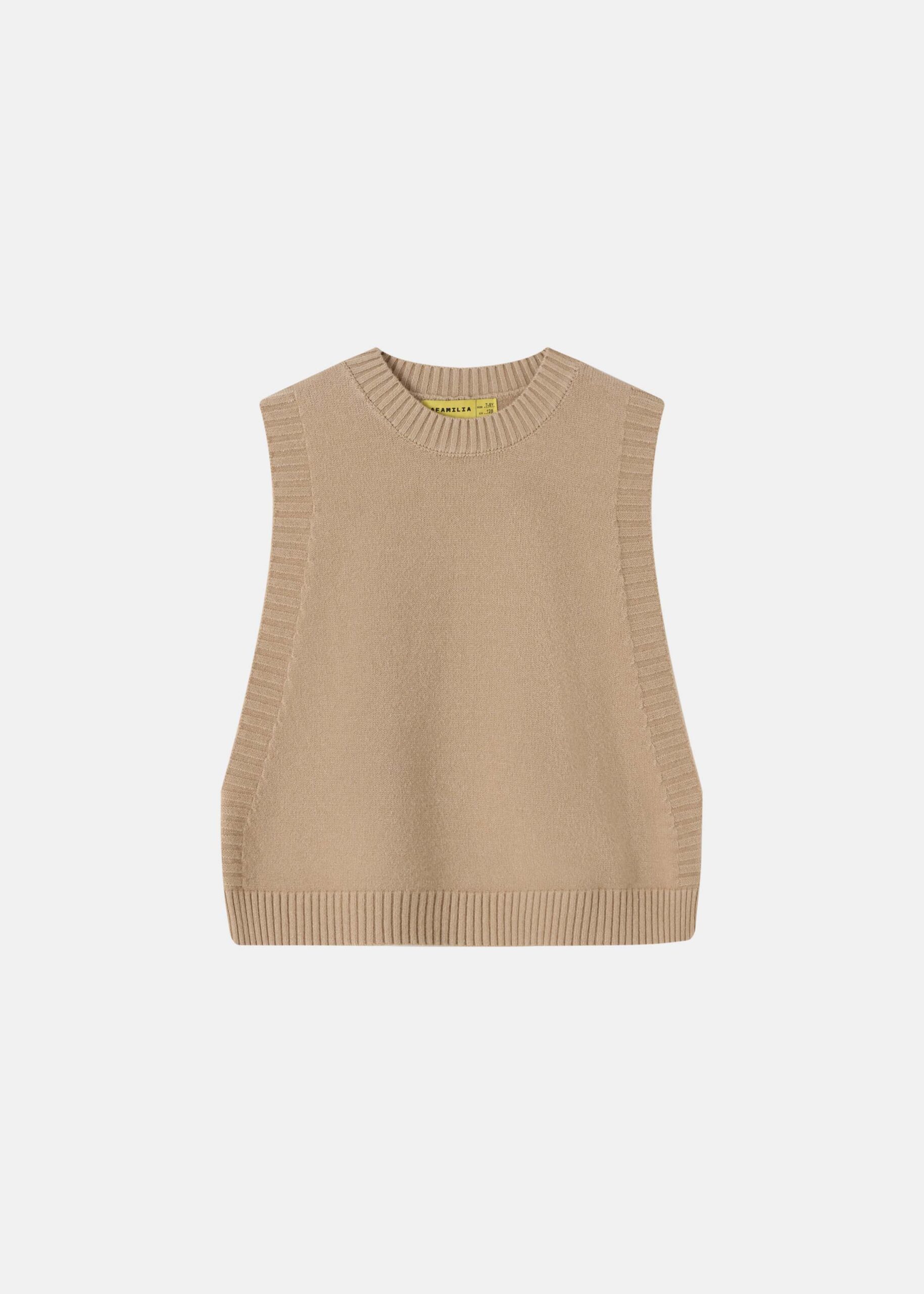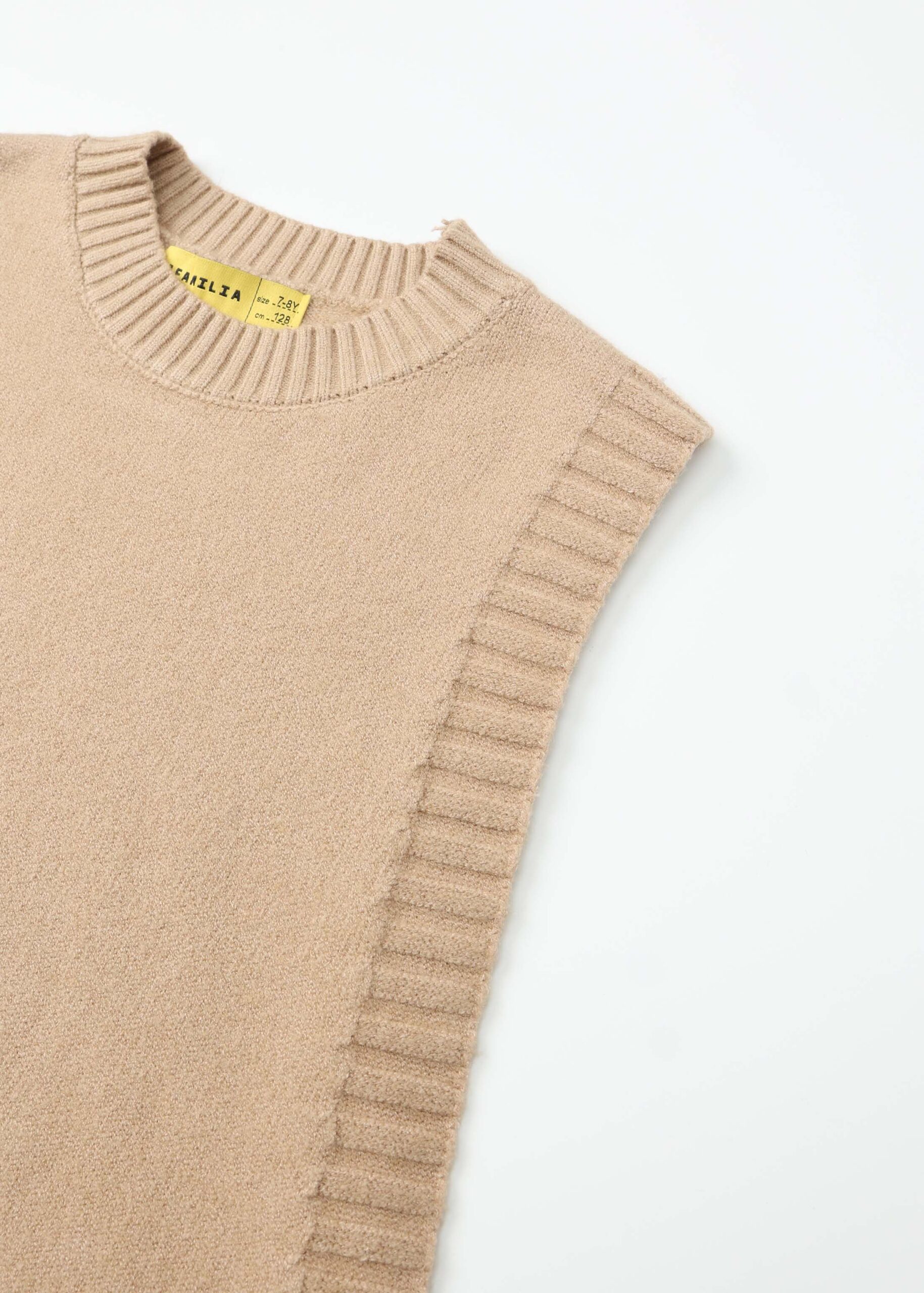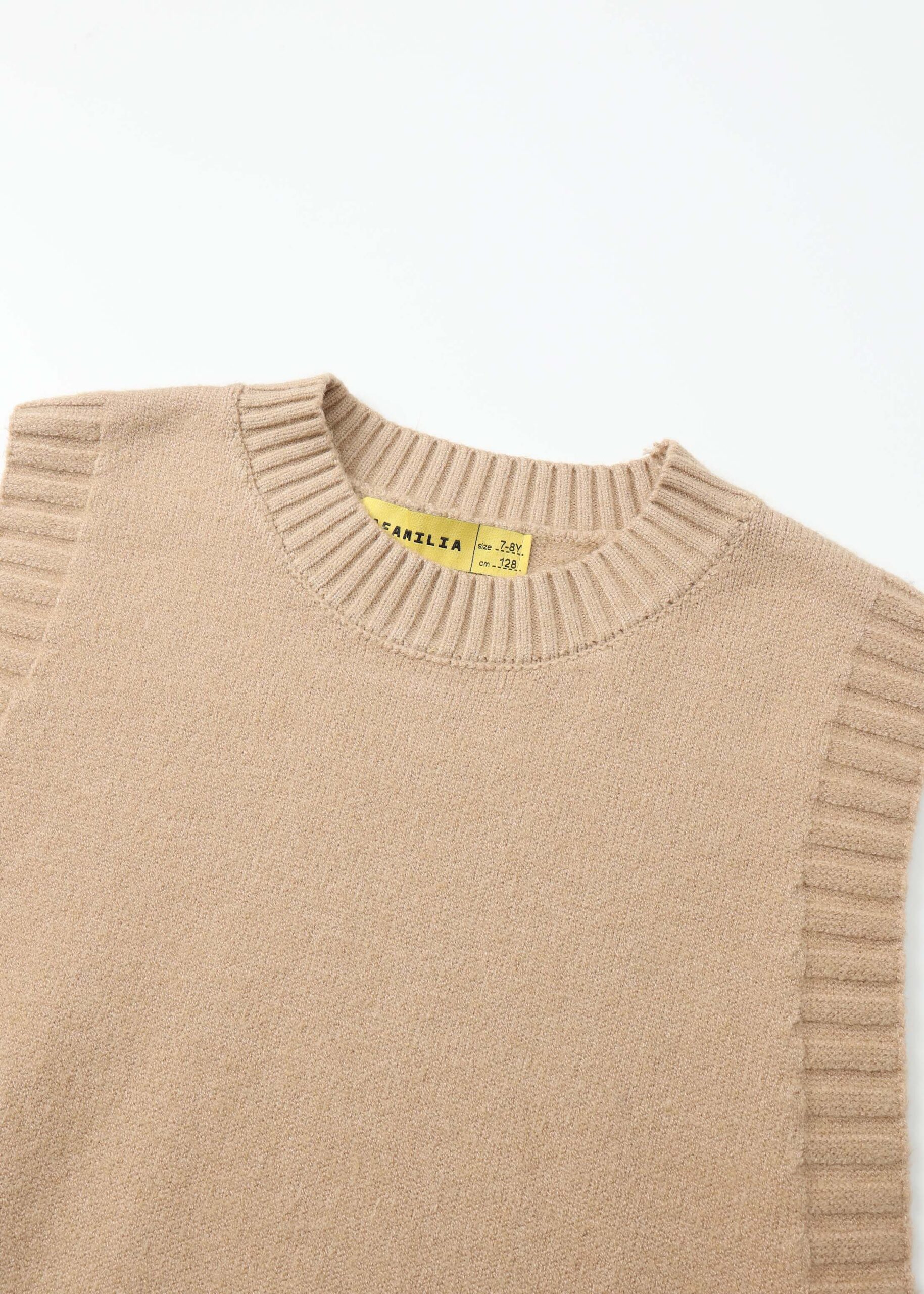 Kids girl top, knitted fabric, plain, round neck, side cut-out, sleeveless, unique and modern