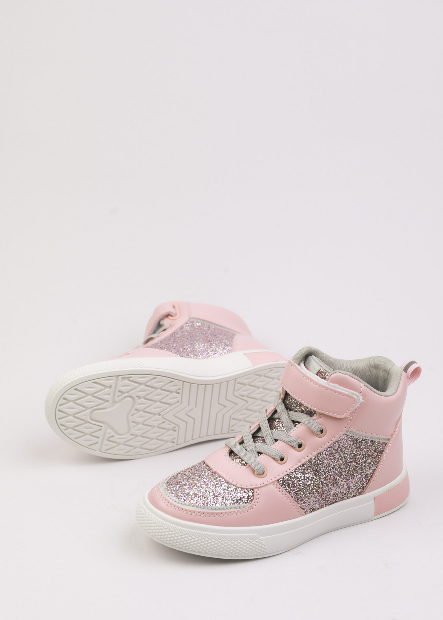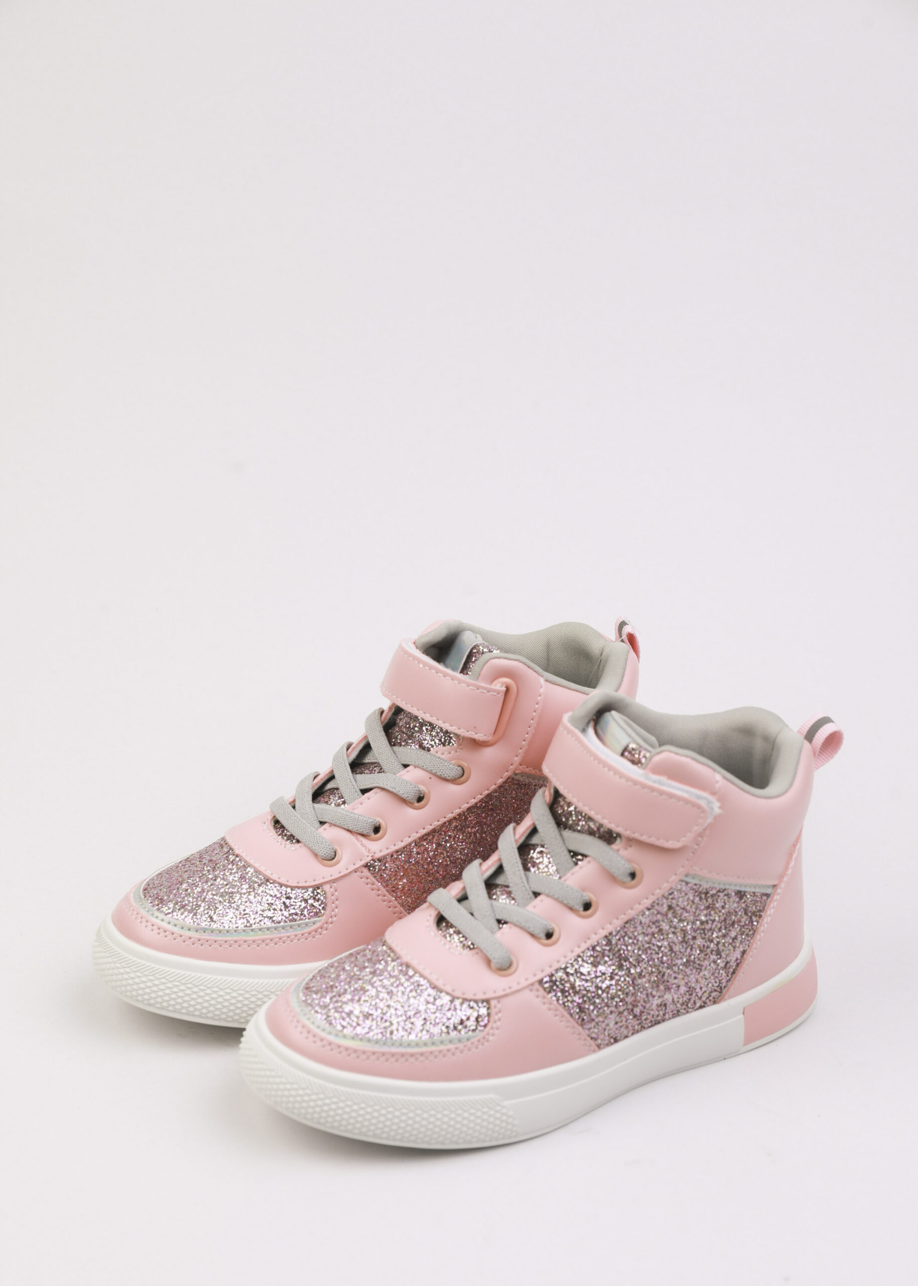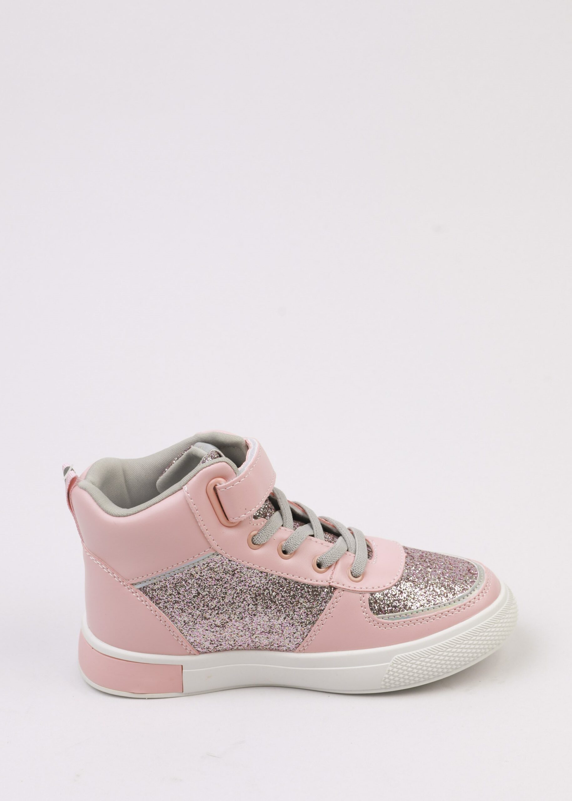 حذاء أطفال بناتي, رياضة, جلد صناعي, لامع, مقدمة مدورة, نعل مطاطي, رباط امامي, كاحل مرتفع مع شريط لاصق للاغلاق, انيق ومريح