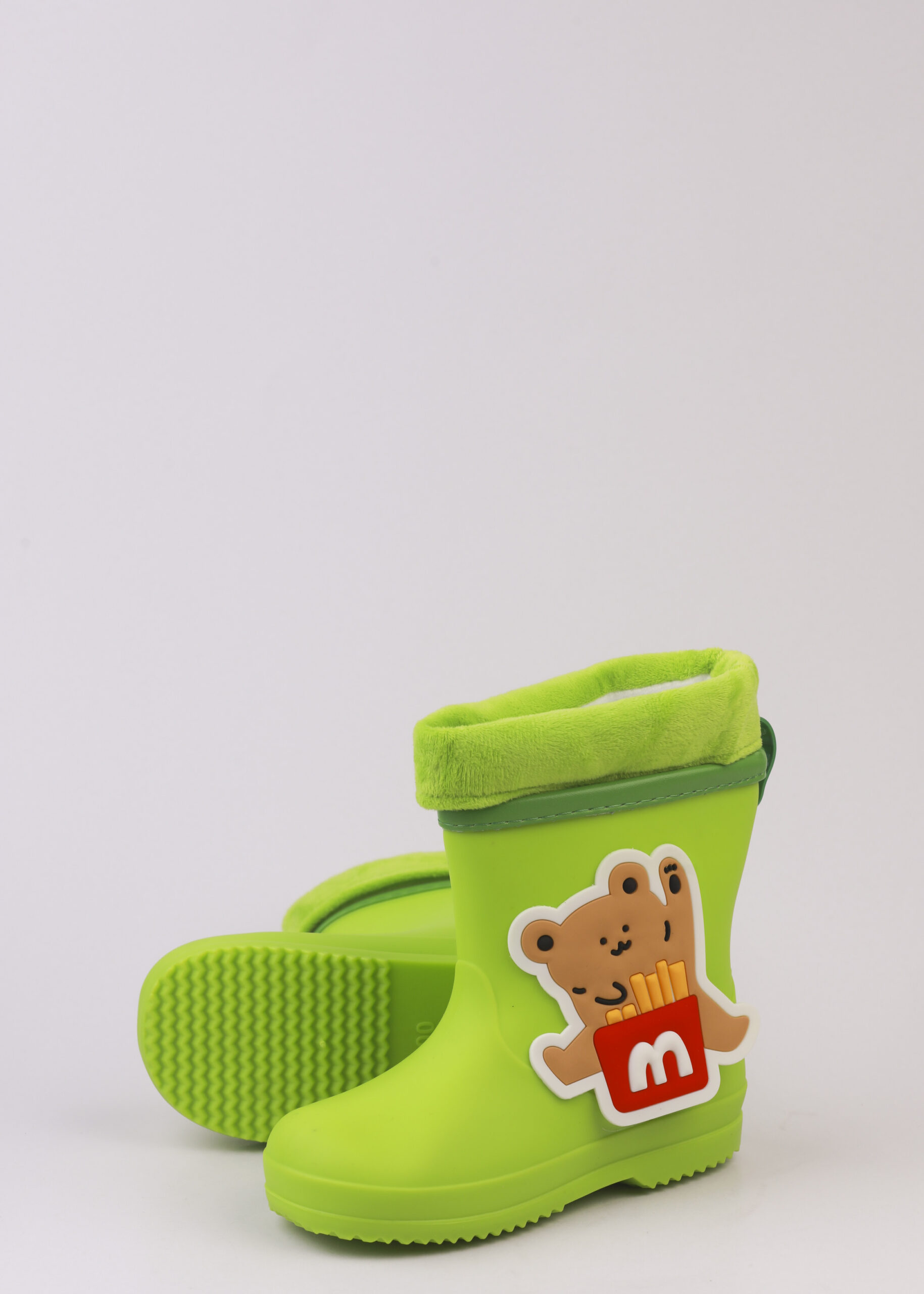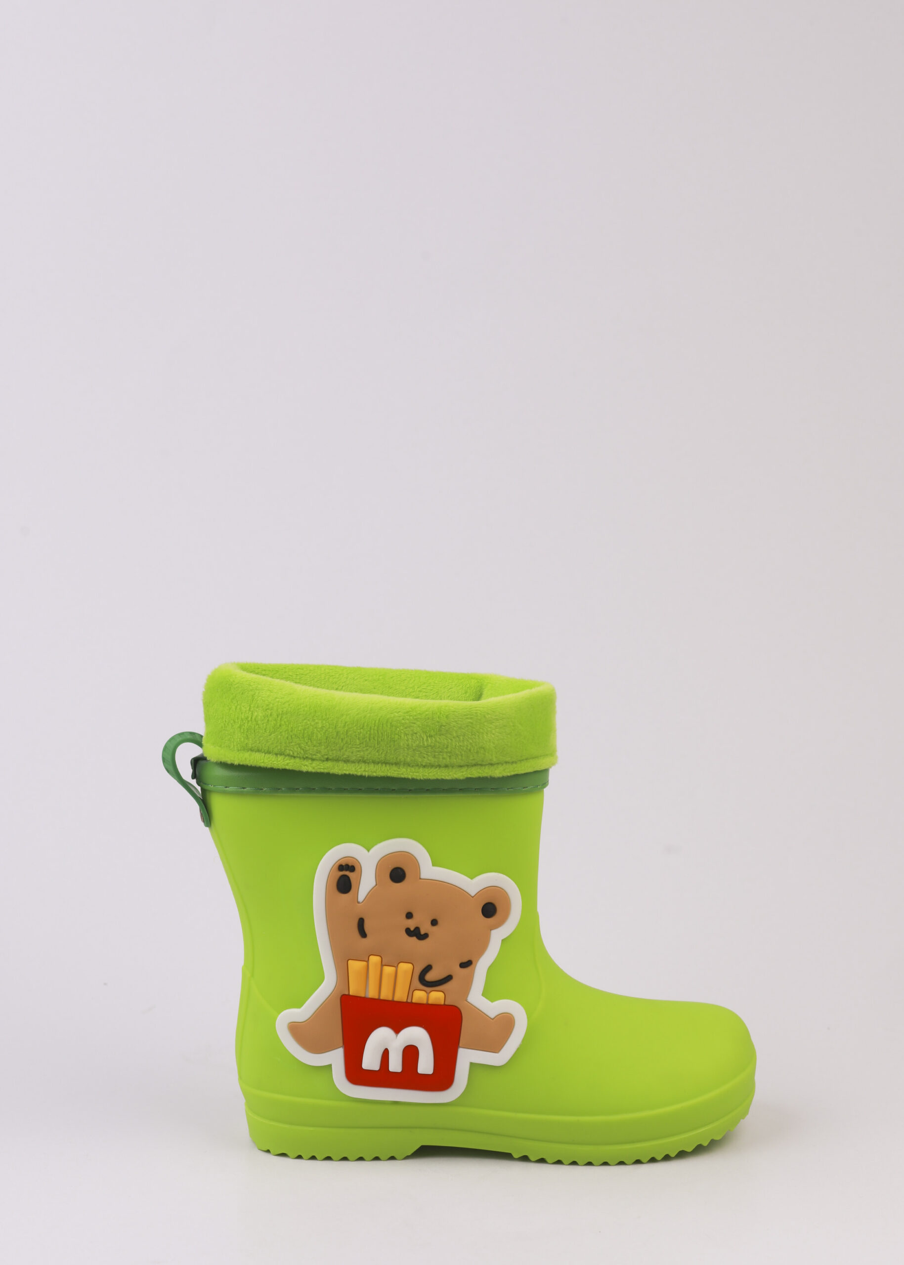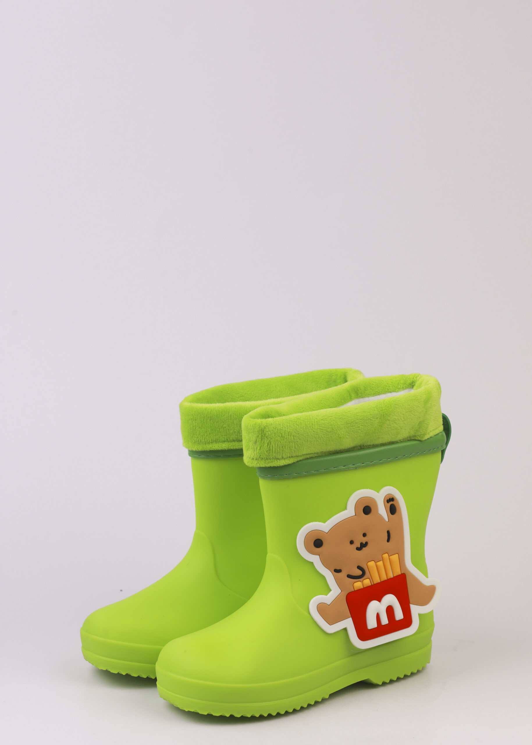 حذاء اطفال, ضد الماء, مبطن, كاحل مرتفع, مقدمة مدورة, نعل مطاطي, طباعة دبدوب من الجانب, مريح وعملي