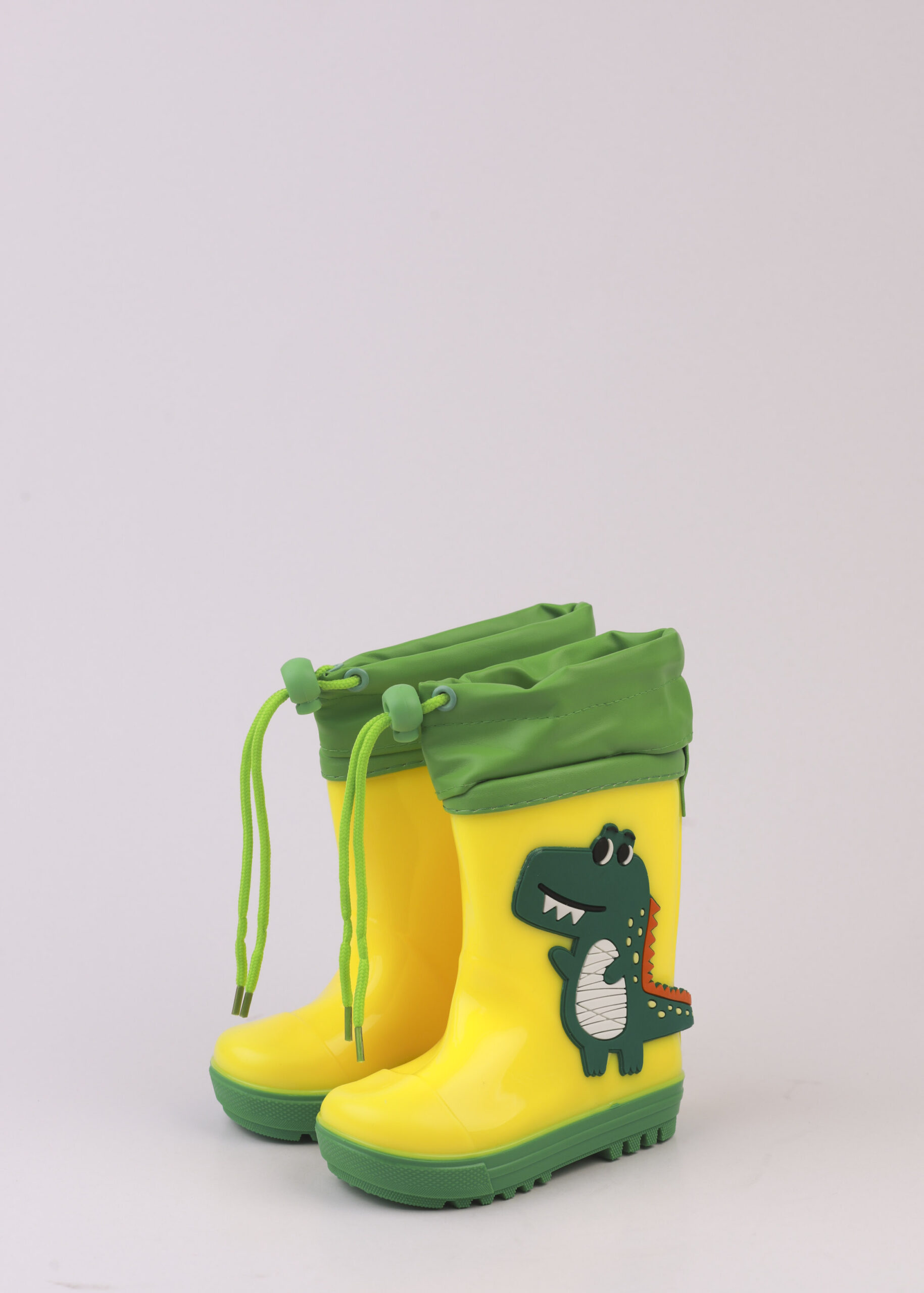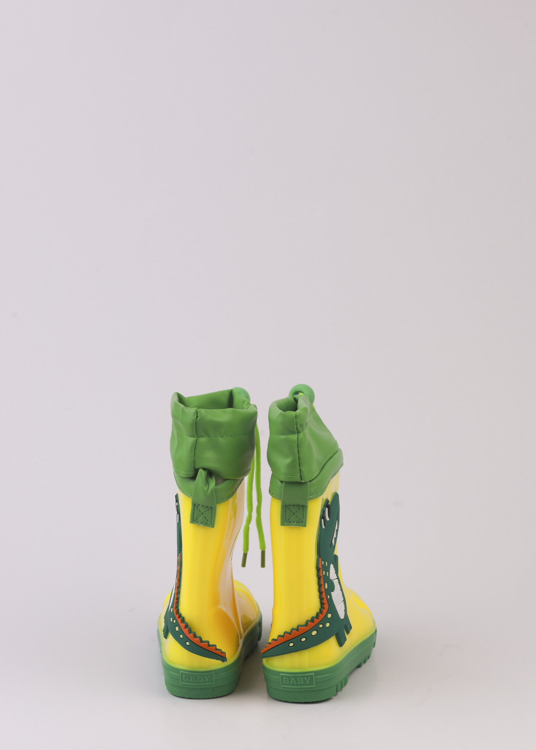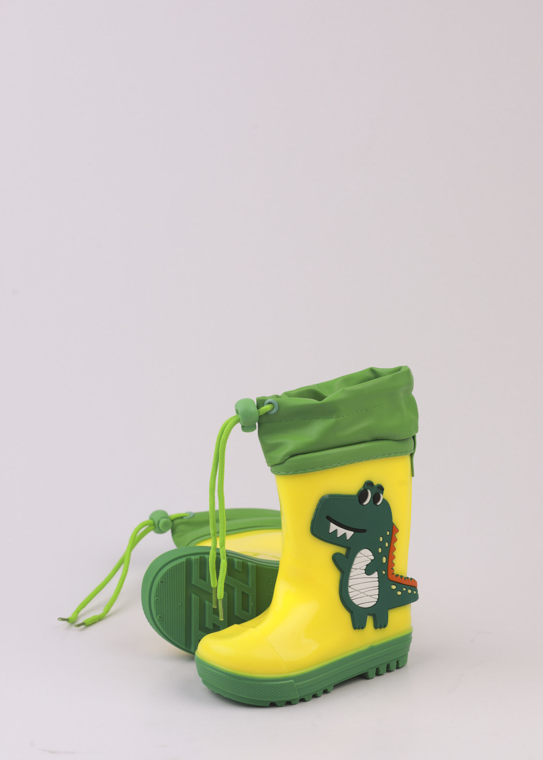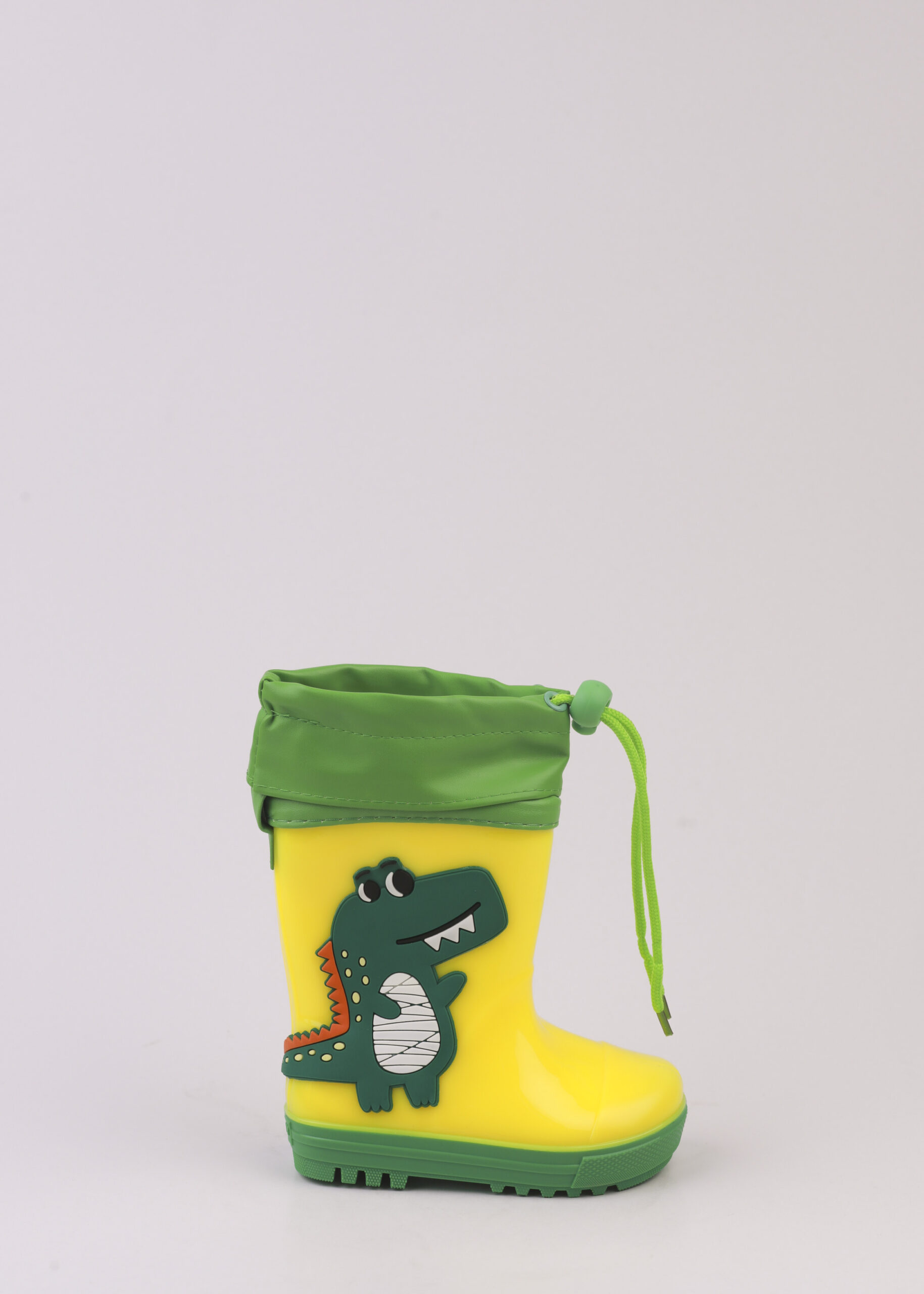 حذاء اطفال, ضد الماء, مبطن, كاحل مرتفع مع حبل مطاطي قابل للتعديل, مقدمة مدورة, نعل مطاطي, طباعة تمساح من الجانب, مريح وعملي