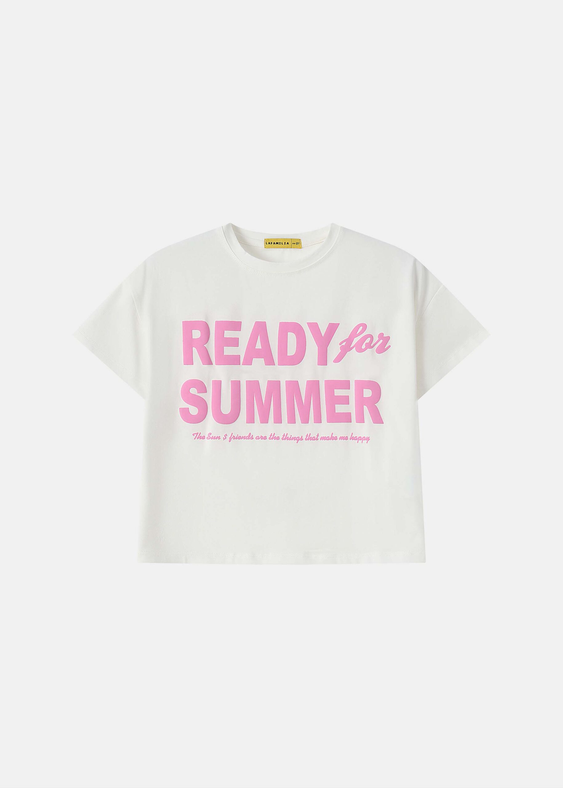 تيشيرت اطفال بناتي, طباعة “Ready for Summer” من الامام, ياقة مدورة, اكمام قصيرة, انيقة وعصرية