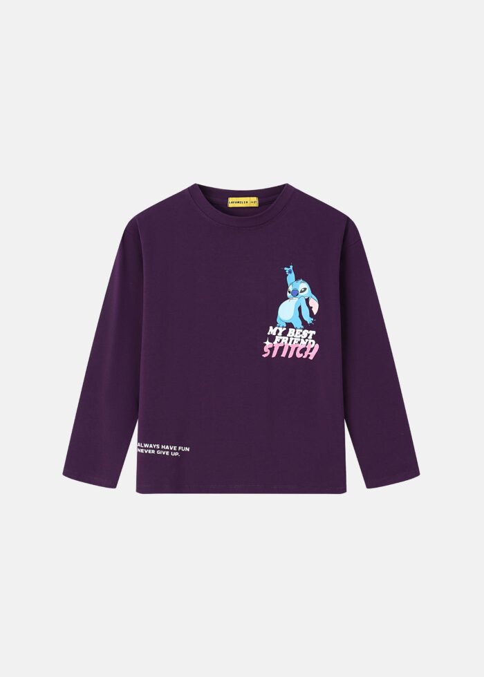 بلوزة اطفال بناتي, طباعة تصميم “Stitch” من الامام والخلف, ياقة مدورة, اكمام طويلة, انيقة وعصرية