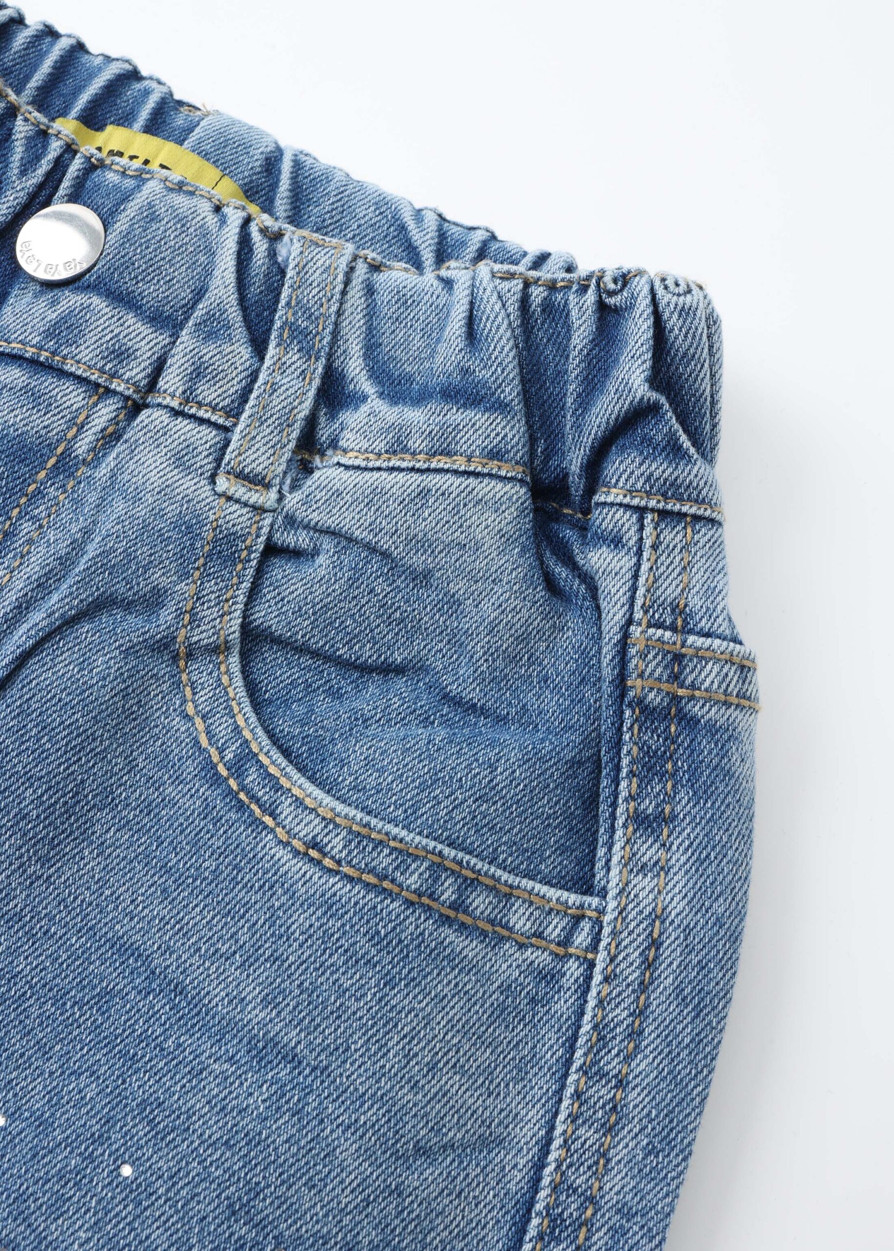 بنطلون اطفال بناتي, جينز, ساق مستقيمة, مزين بالستراس, خصر مطاطي, تصميم زر وسحاب وهمي من الامام, جيوب من الامام والخلف, انيق وعصري