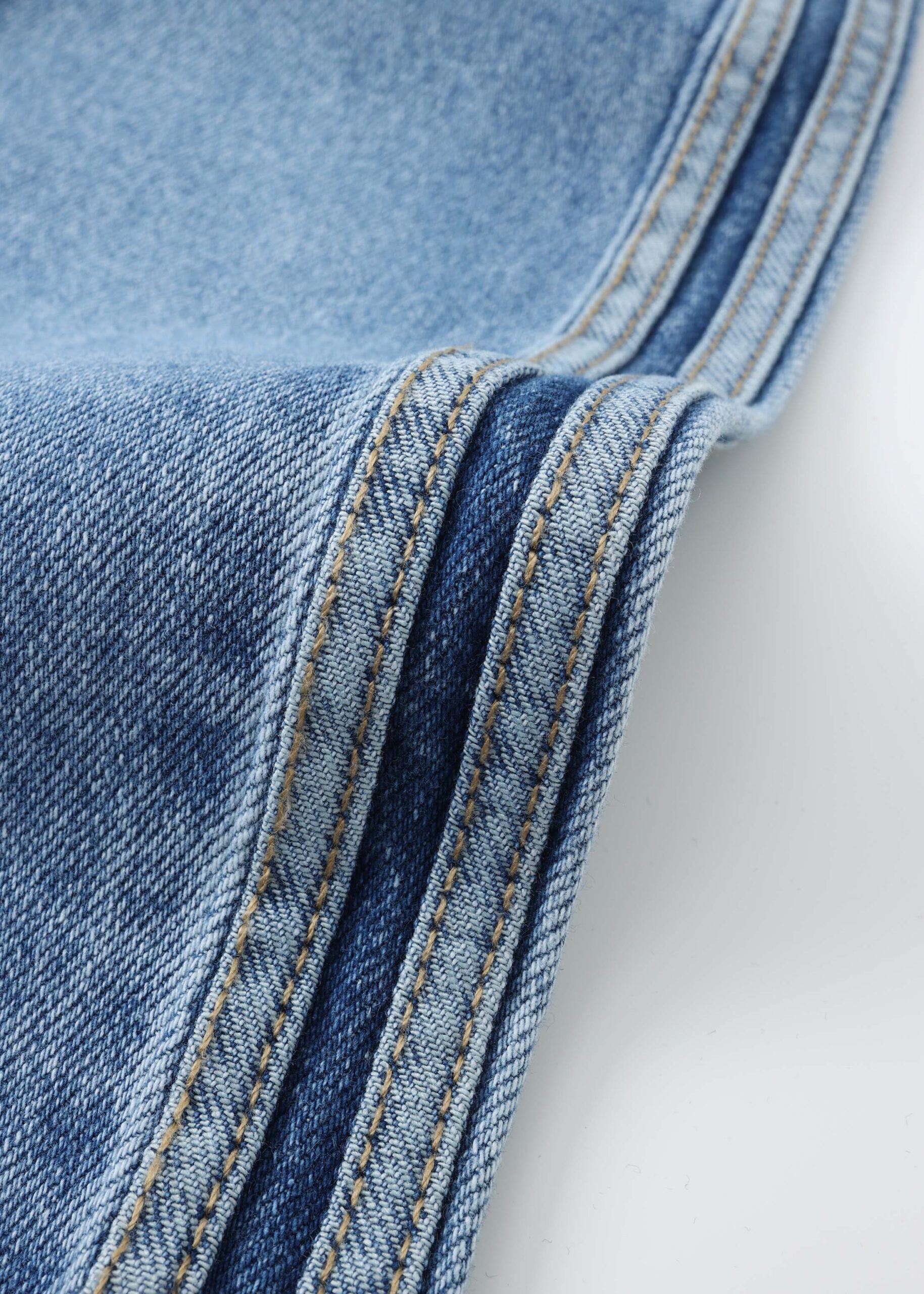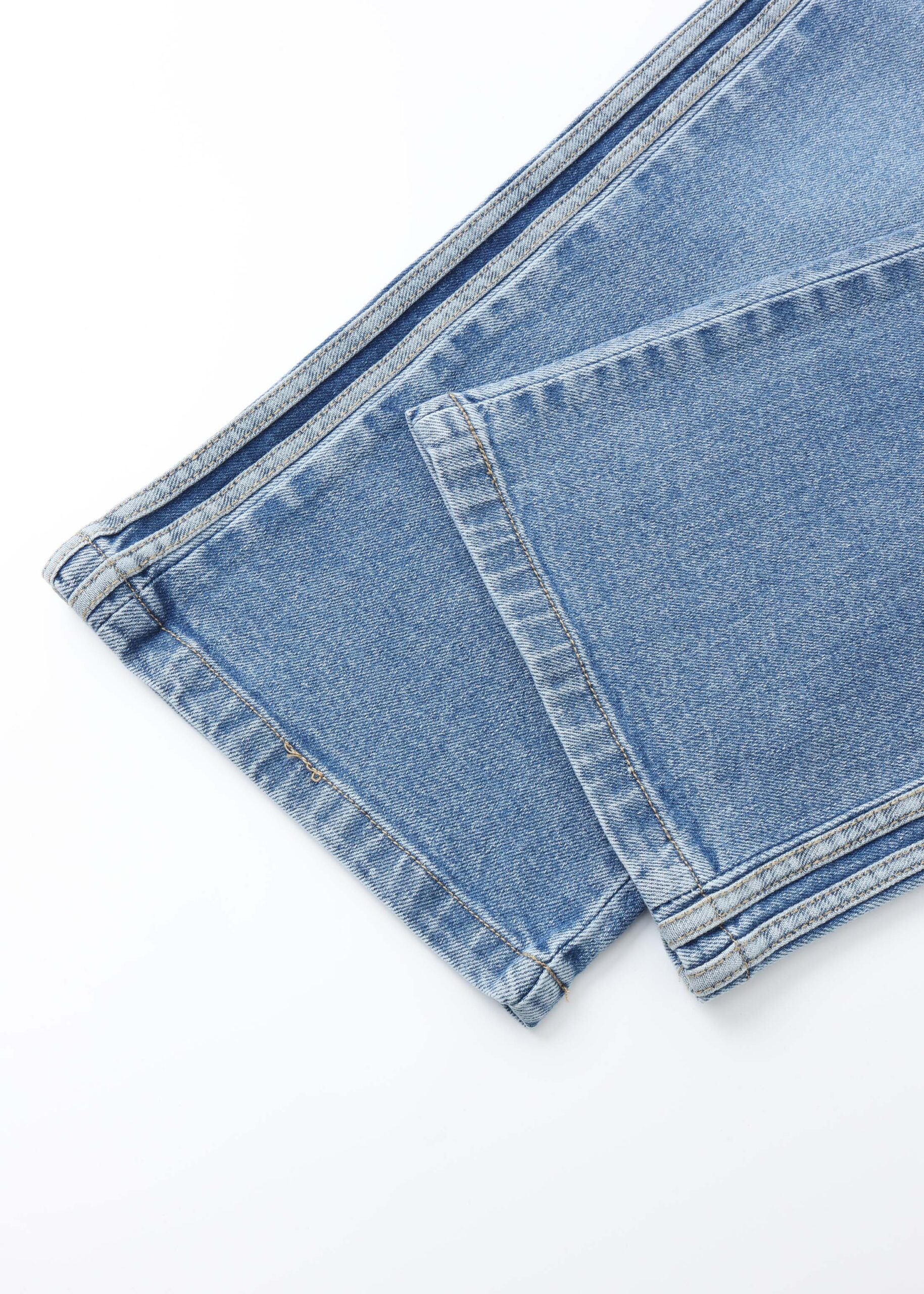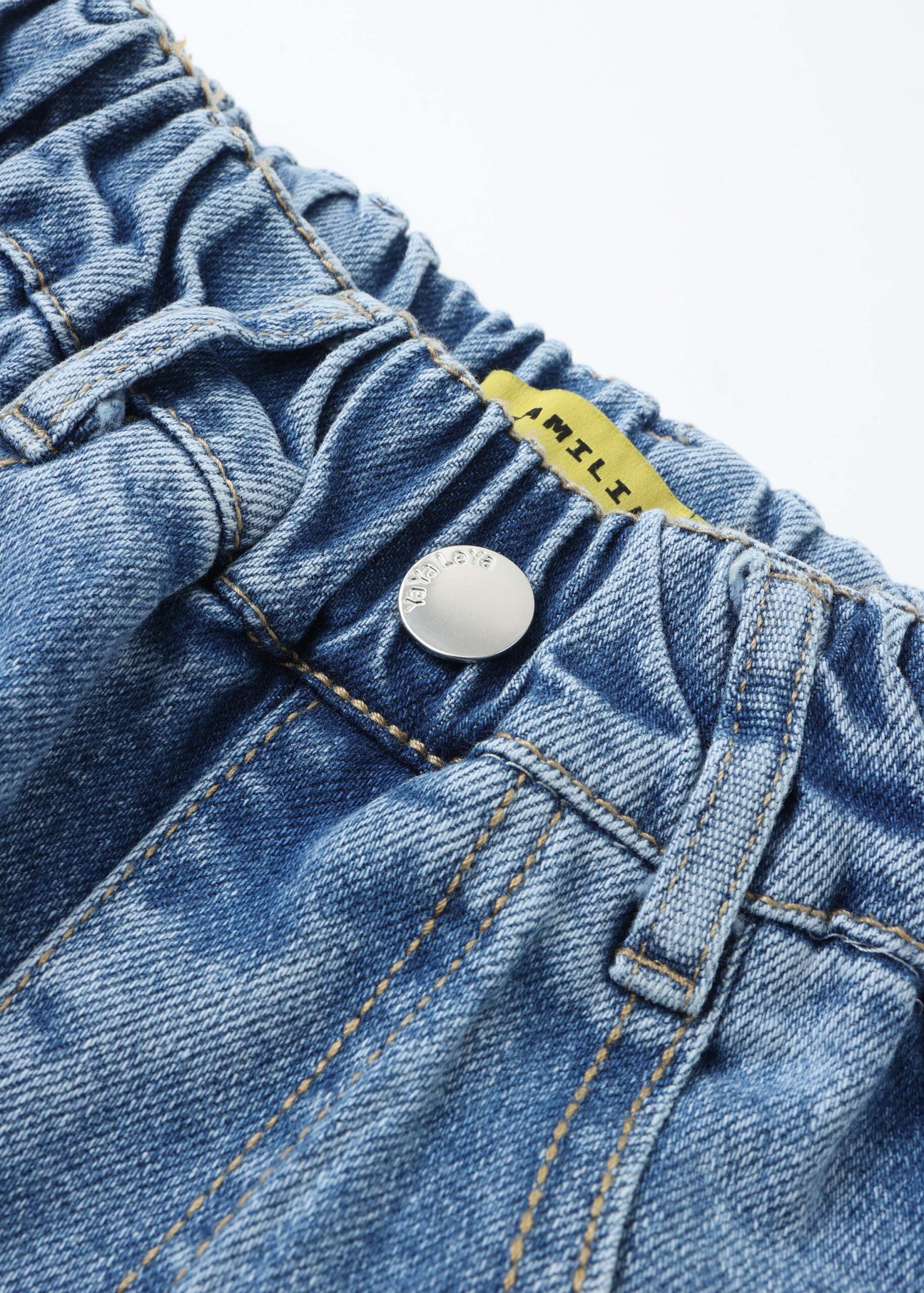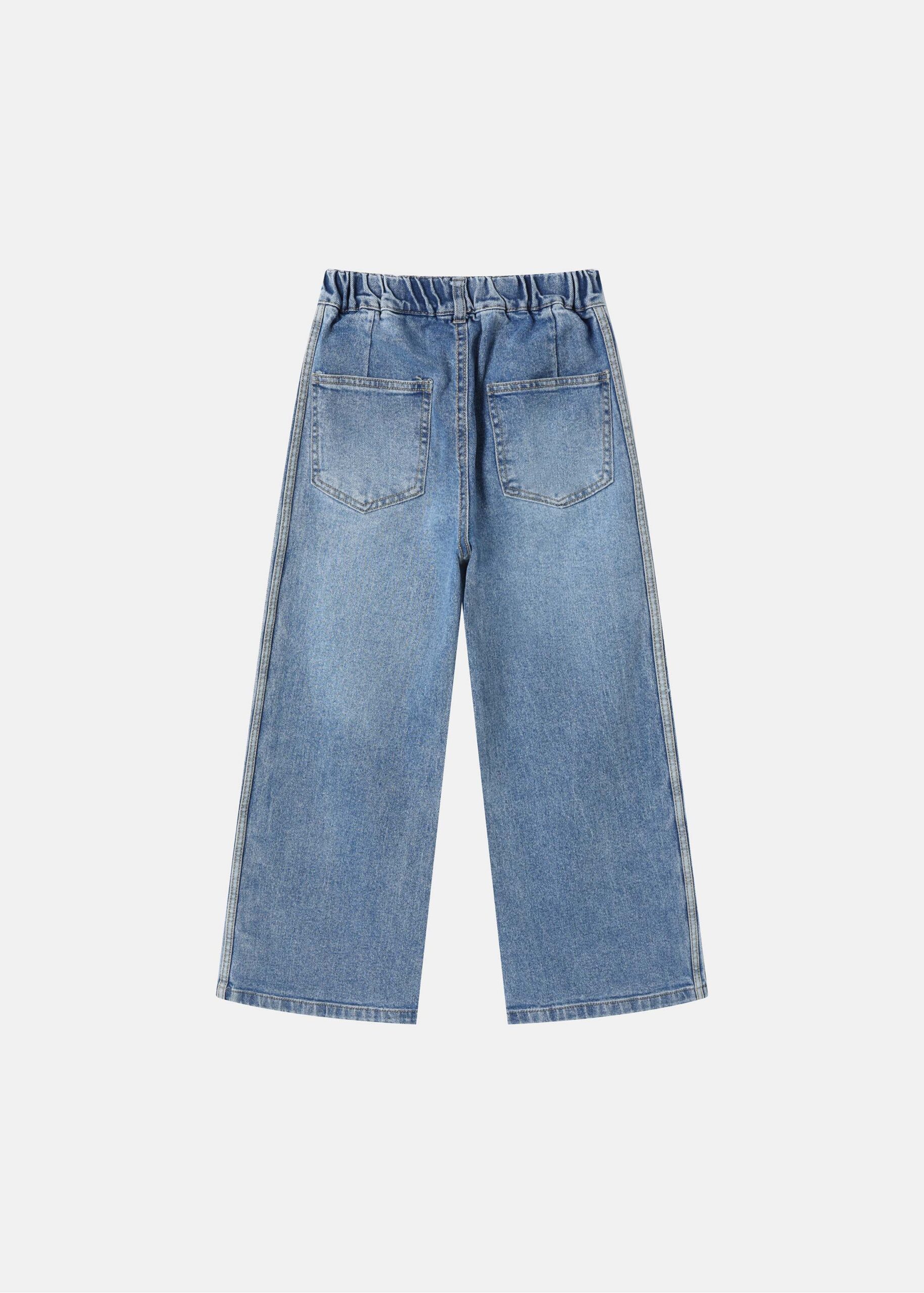 بنطلون اطفال بناتي, جينز, ساق مستقيمة,مخطط من الجانبين, خصر مطاطي, تصميم زر وسحاب وهمي من الامام, جيوب من الامام والخلف, انيق وعصري