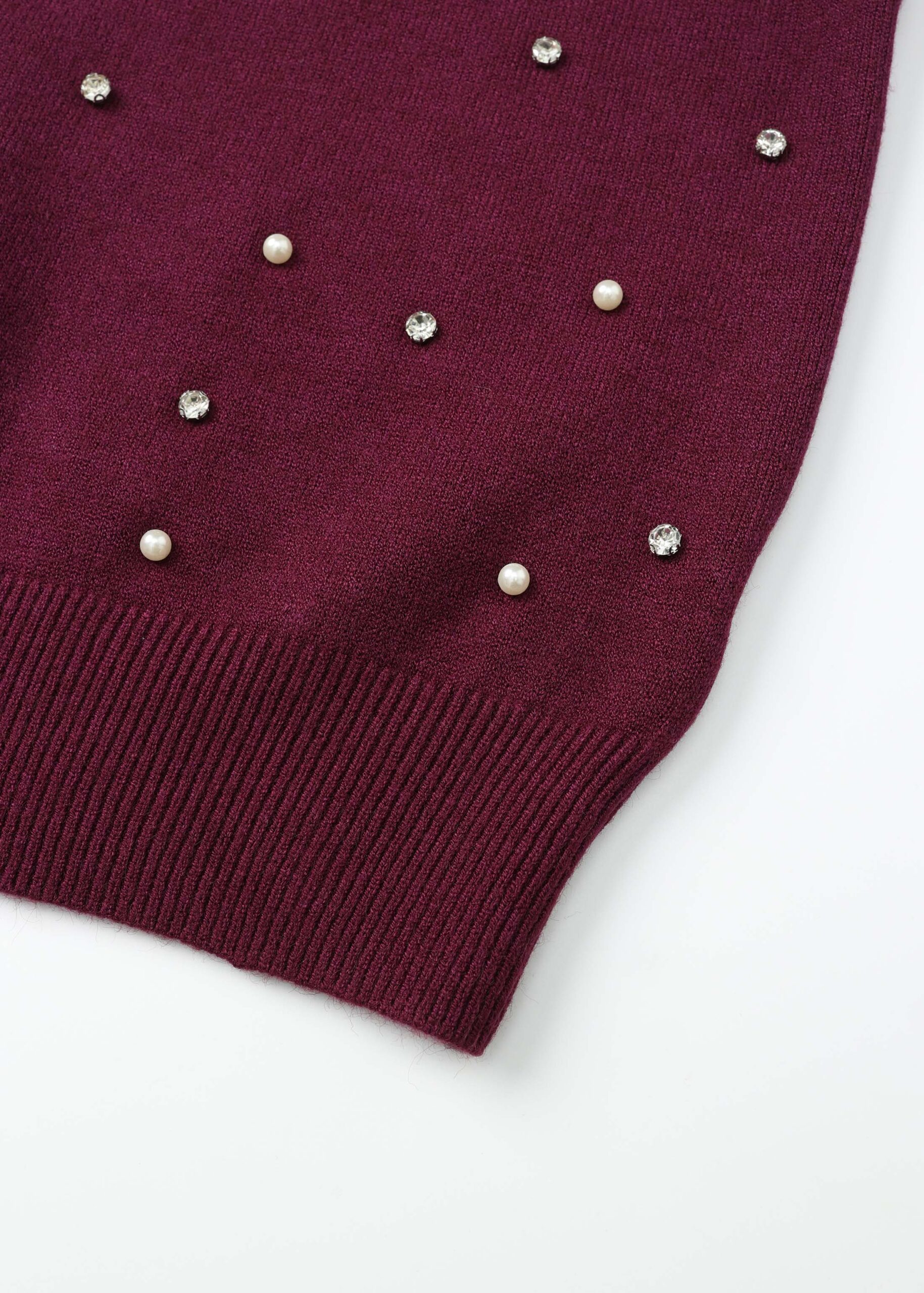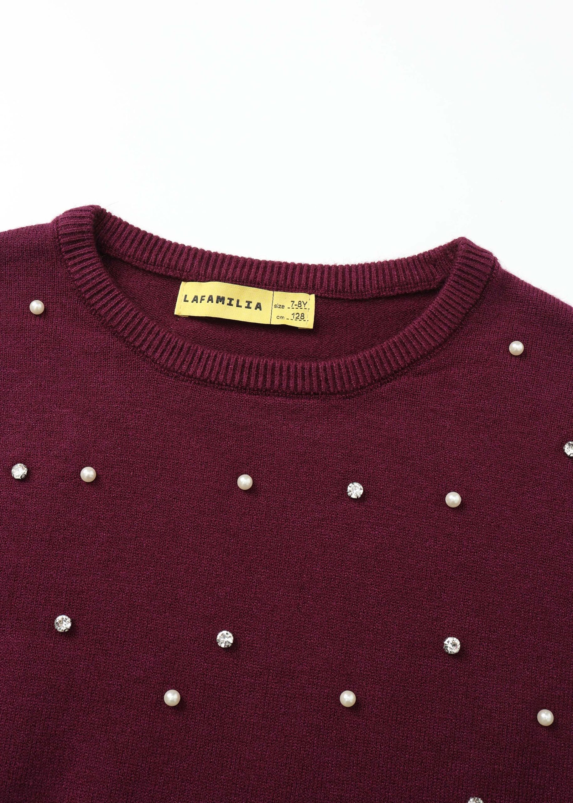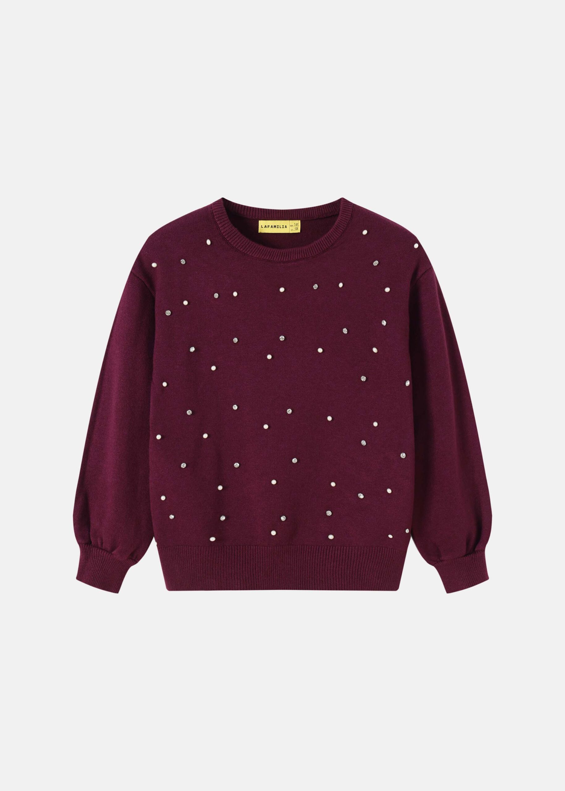 Kids girl blouse, knitted fabric, strass decor, round neck, long sleeves with tight cuff, unique and modern