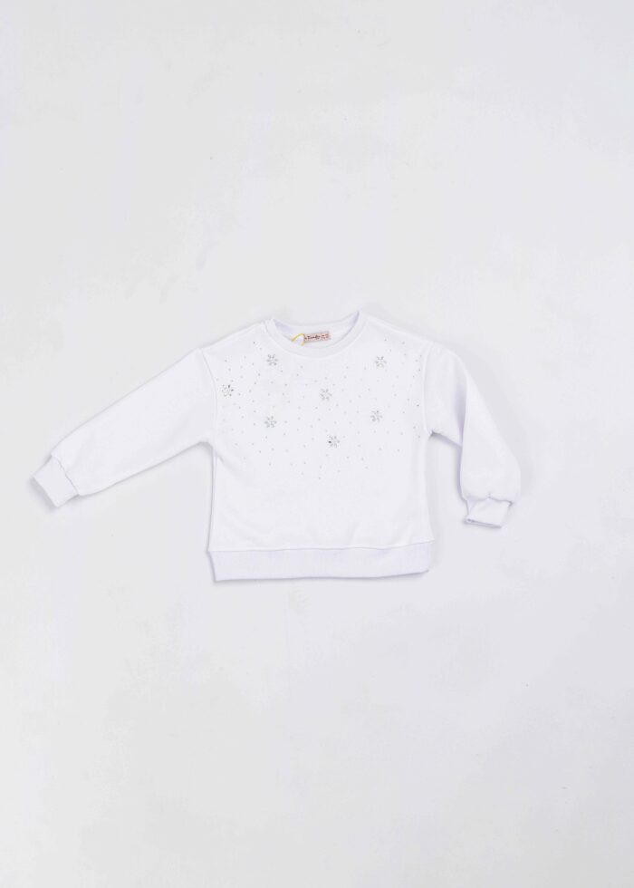 بلوزة اطفال بناتي, مزينة بالستراس, ياقة مدورة, اكمام طويلة مع معصم ضيق, انيقة وعملية