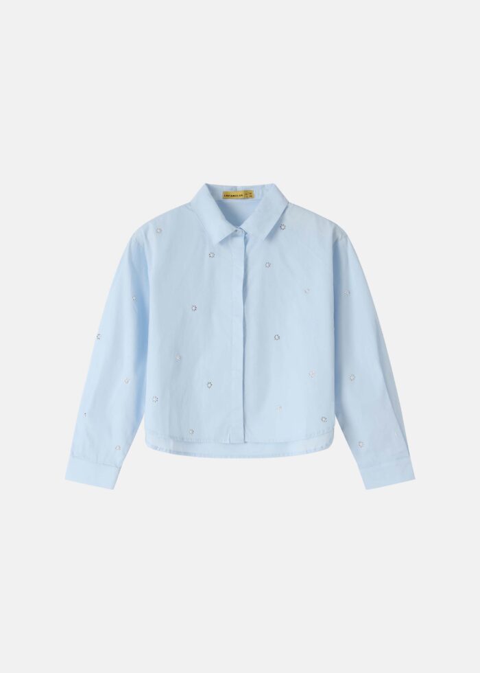قميص اطفال بناتي, مزين بالستراس, ياقة مثنية, ازرار من الامام للاغلاق, اكمام طويلة مع معصم ضيق, انيق وعصري