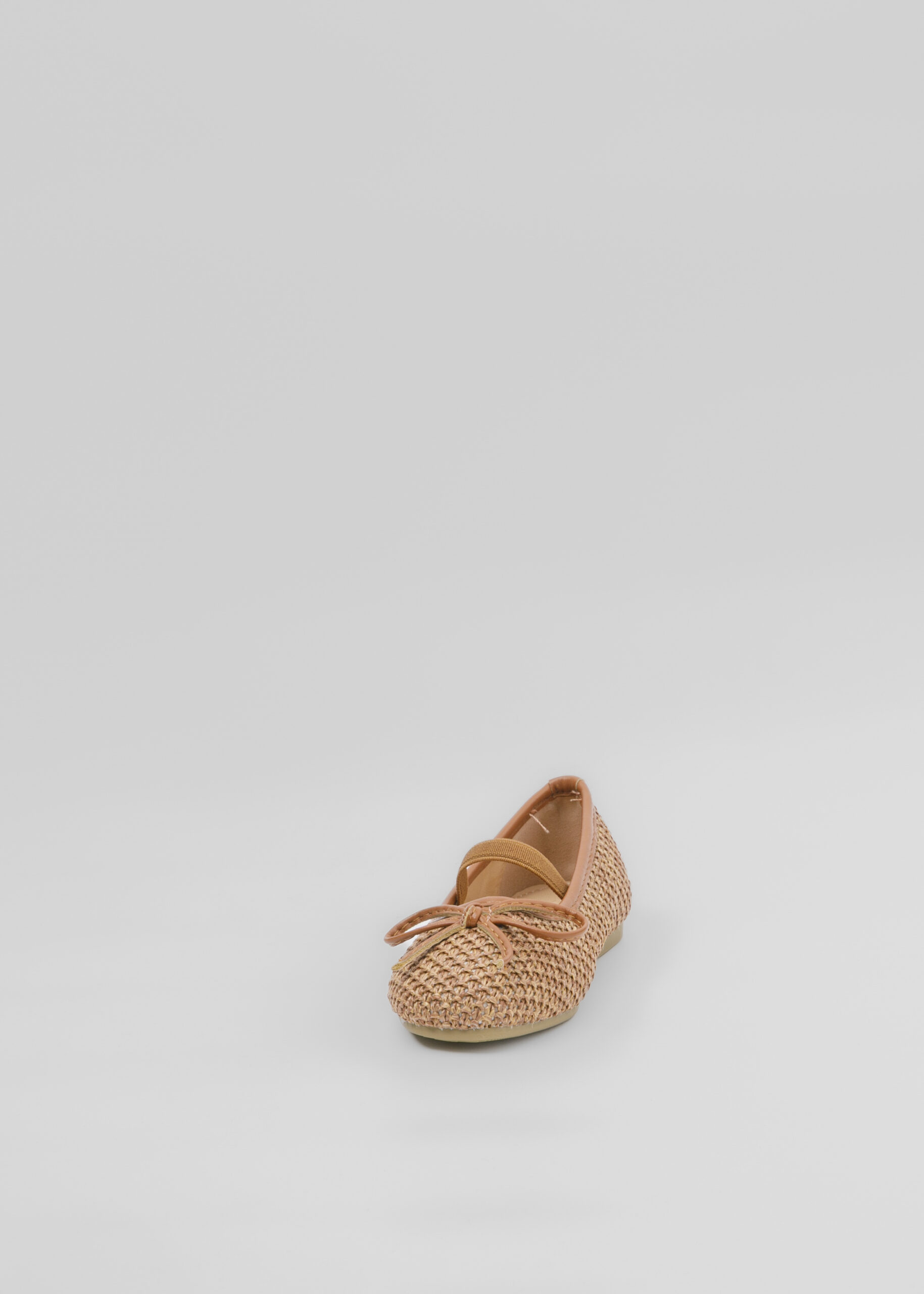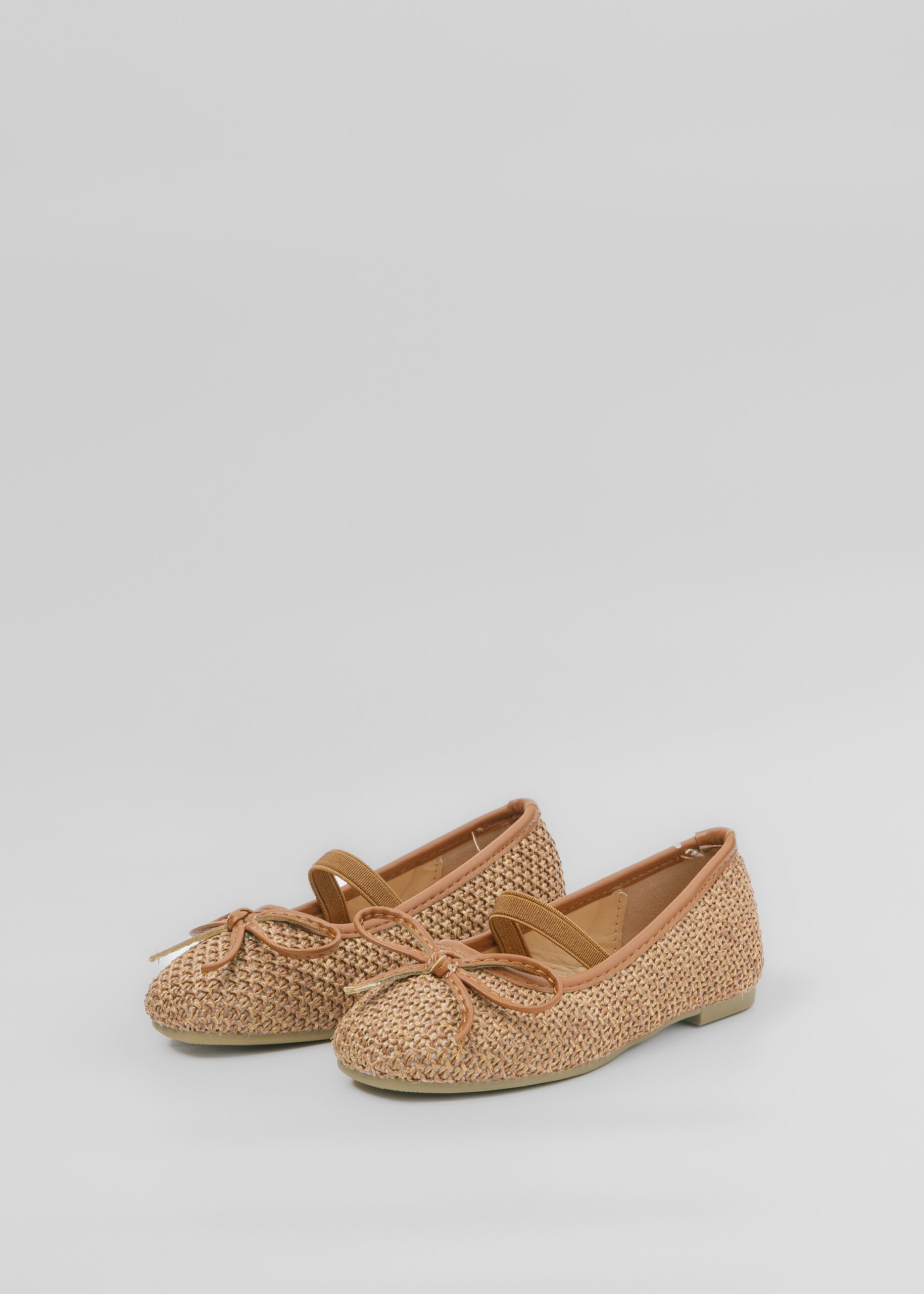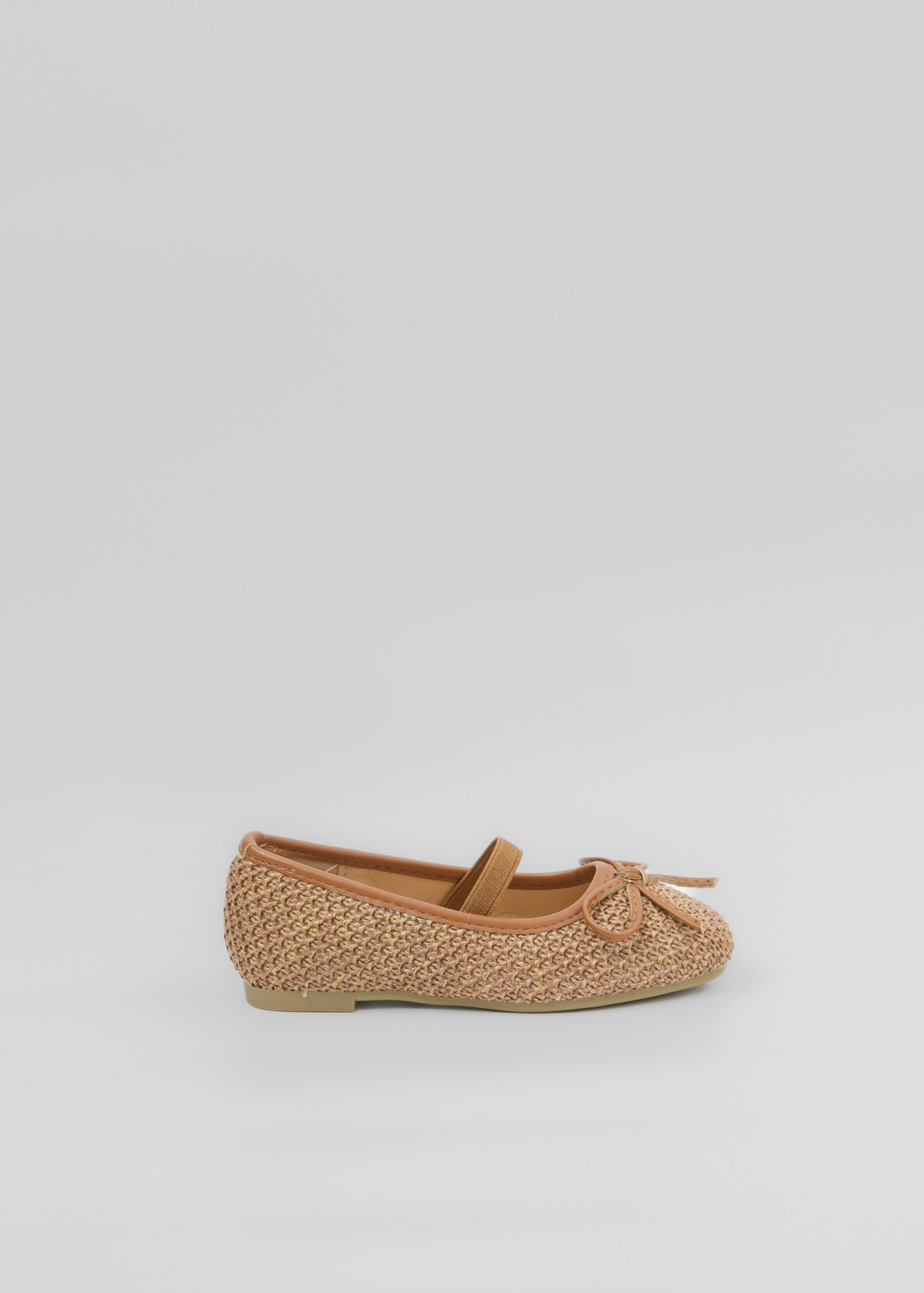 حذاء اطفال بناتي, باليرينا, قش, مقدمة مدورة, نعل مطاطي, مزين بفيونكة من الاعلى, شريط مطاطي من الاعلى, انيق وعصري