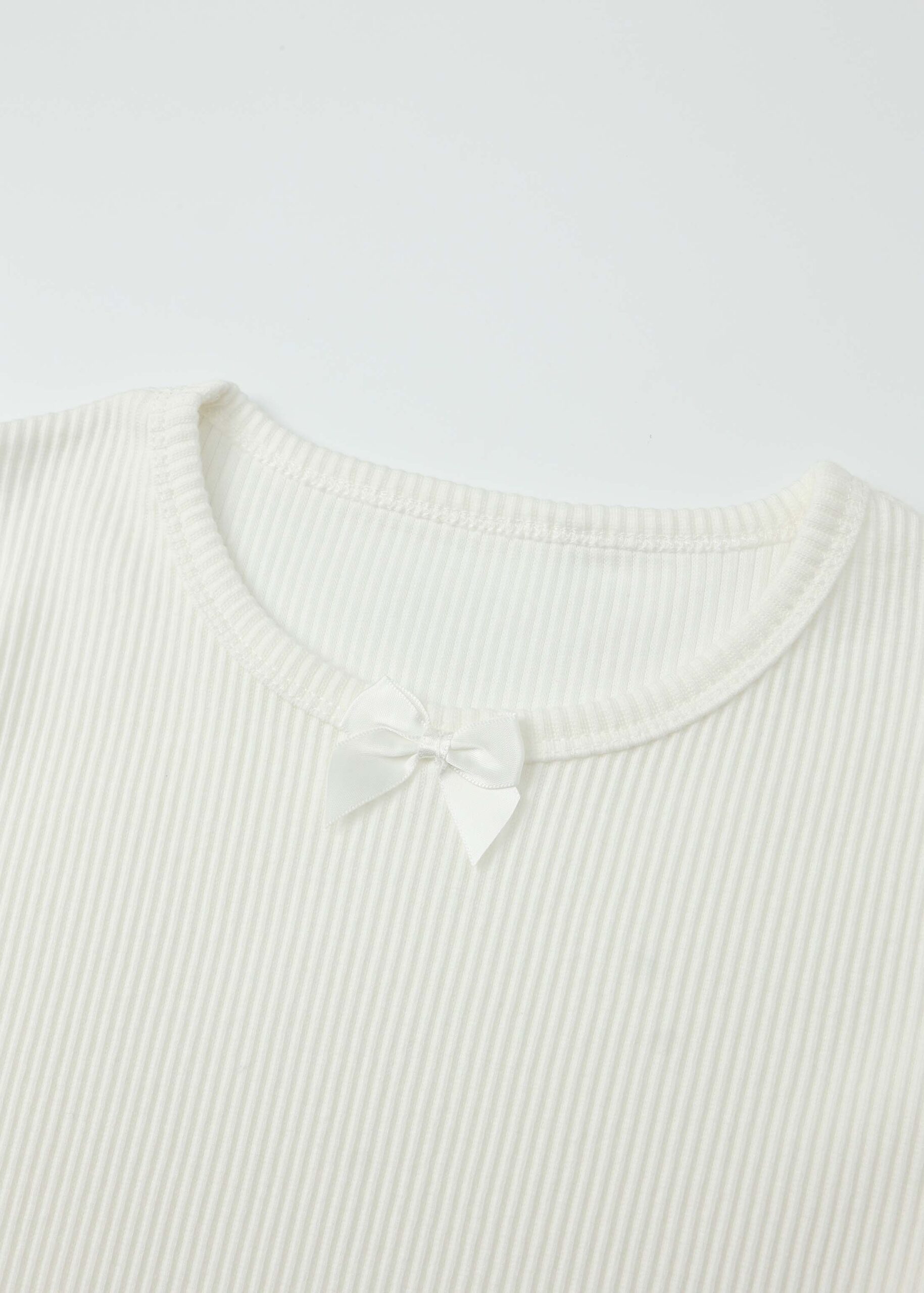 بلوزة اطفال بناتي, نسيج مخطط, ياقة مدورة مزينة بفيونكة من الامام, اكمام طويلة, انيقة وعصرية