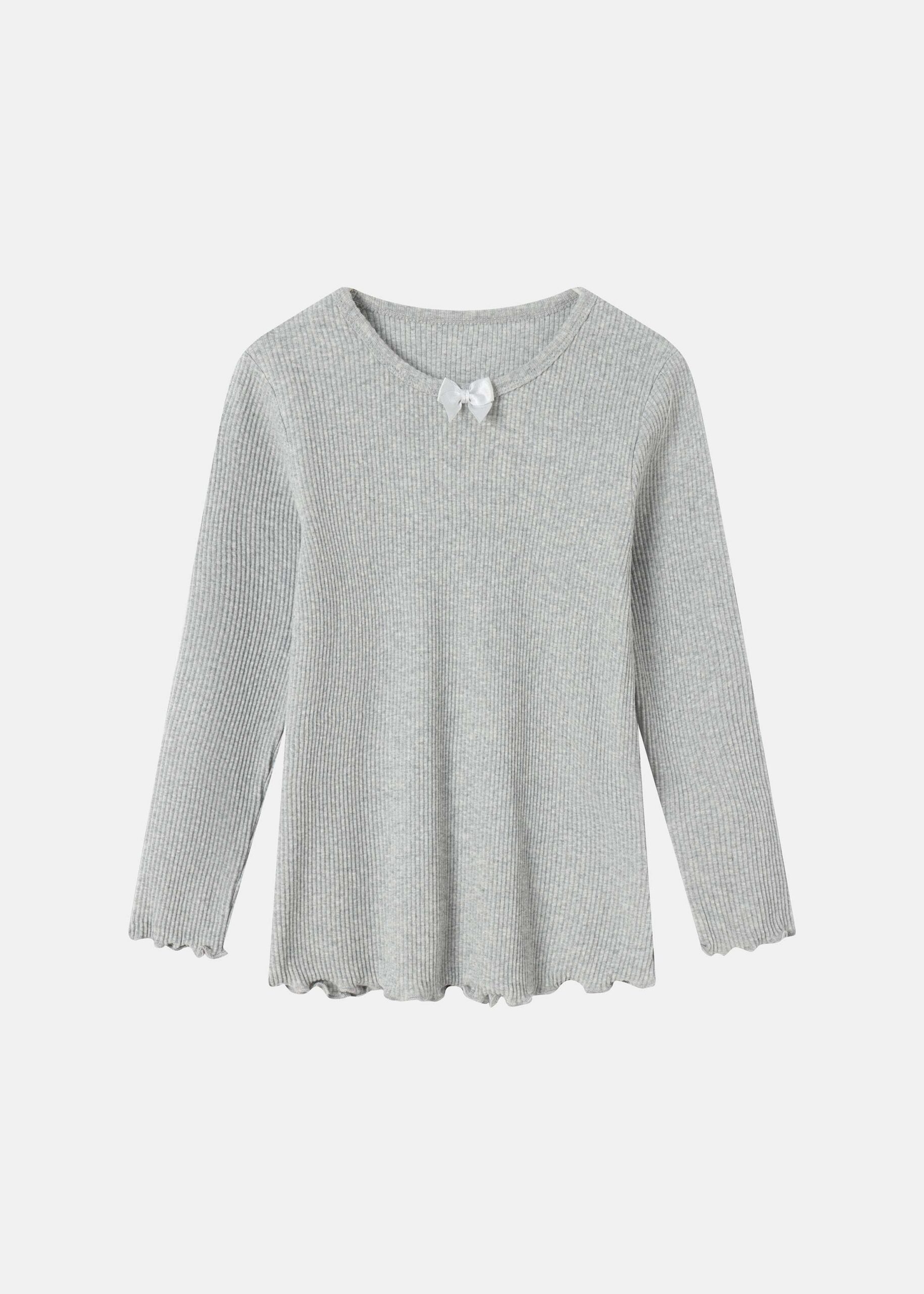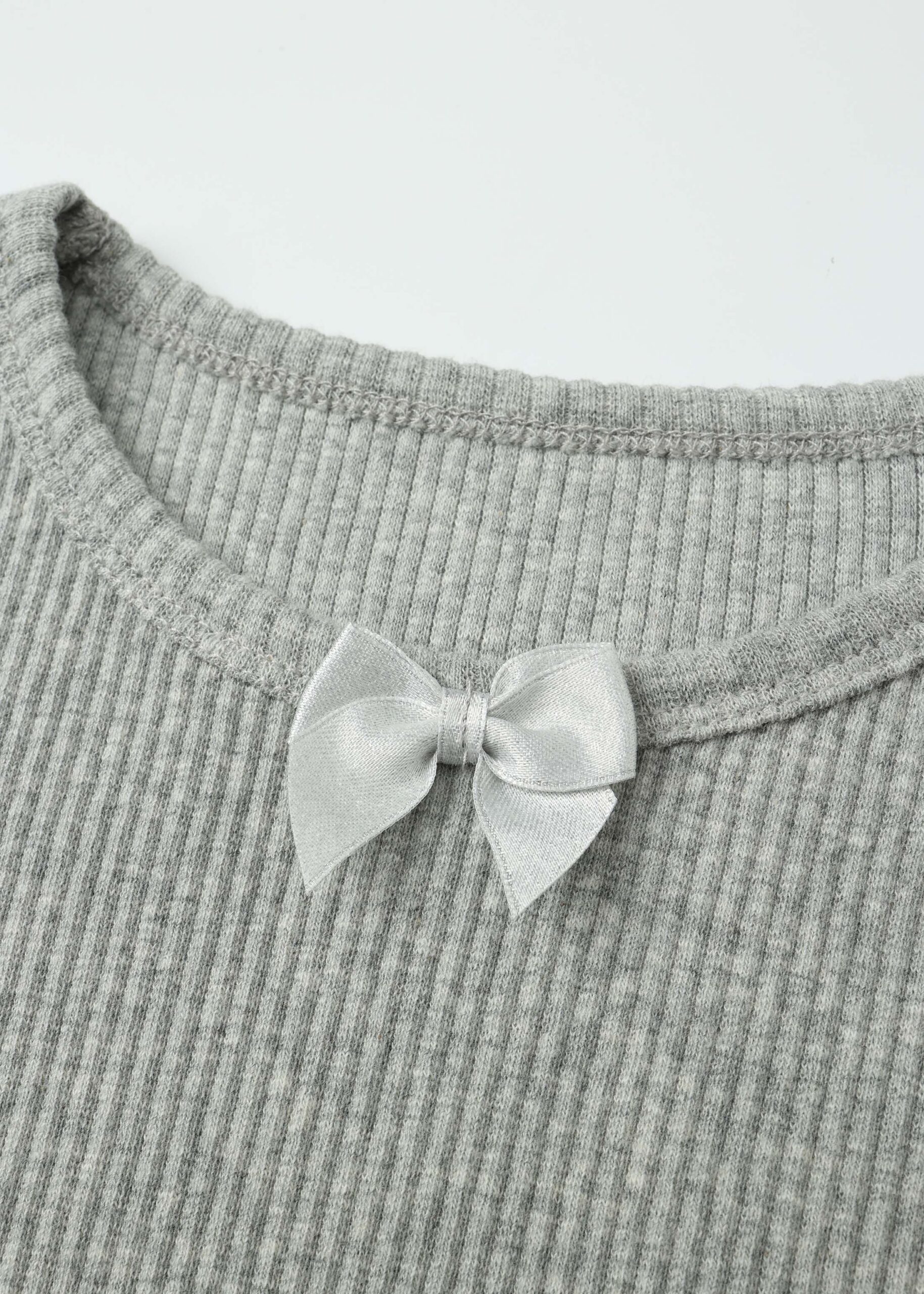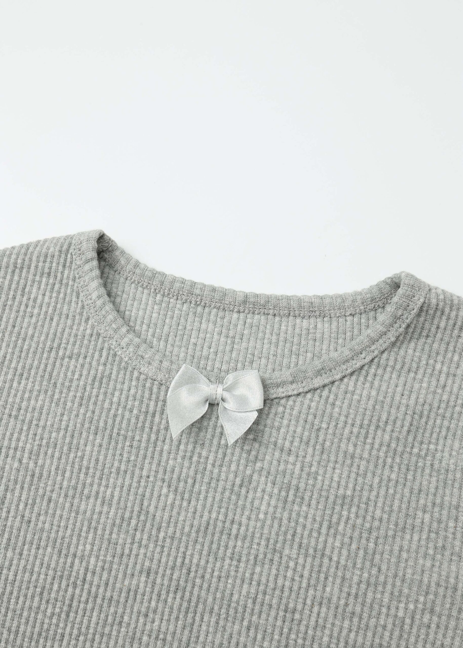 Kids girl blouse, striped fabric, round neck with front bow decor, long sleeves, unique and modern