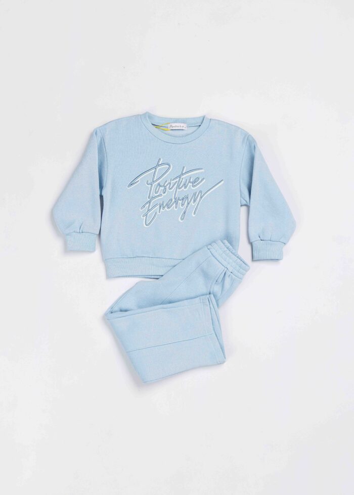 طقم اطفال بناتي, قطعتين, بلوزة, طباعة “Positive Energy” من الامام, ياقة مدورة, اكمام طويلة مع معصم ضيق, بنطلون, خصر مطاطي, جيوب جانبية, انيق وعملي