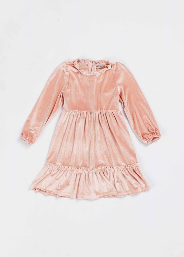 فستان اطفال بناتي, مخمل, طبقات كشكش, ياقة مدورة مع سحاب من الخلف للاغلاق, اكمام طويلة مع معصم ضيق, انيق وعصري