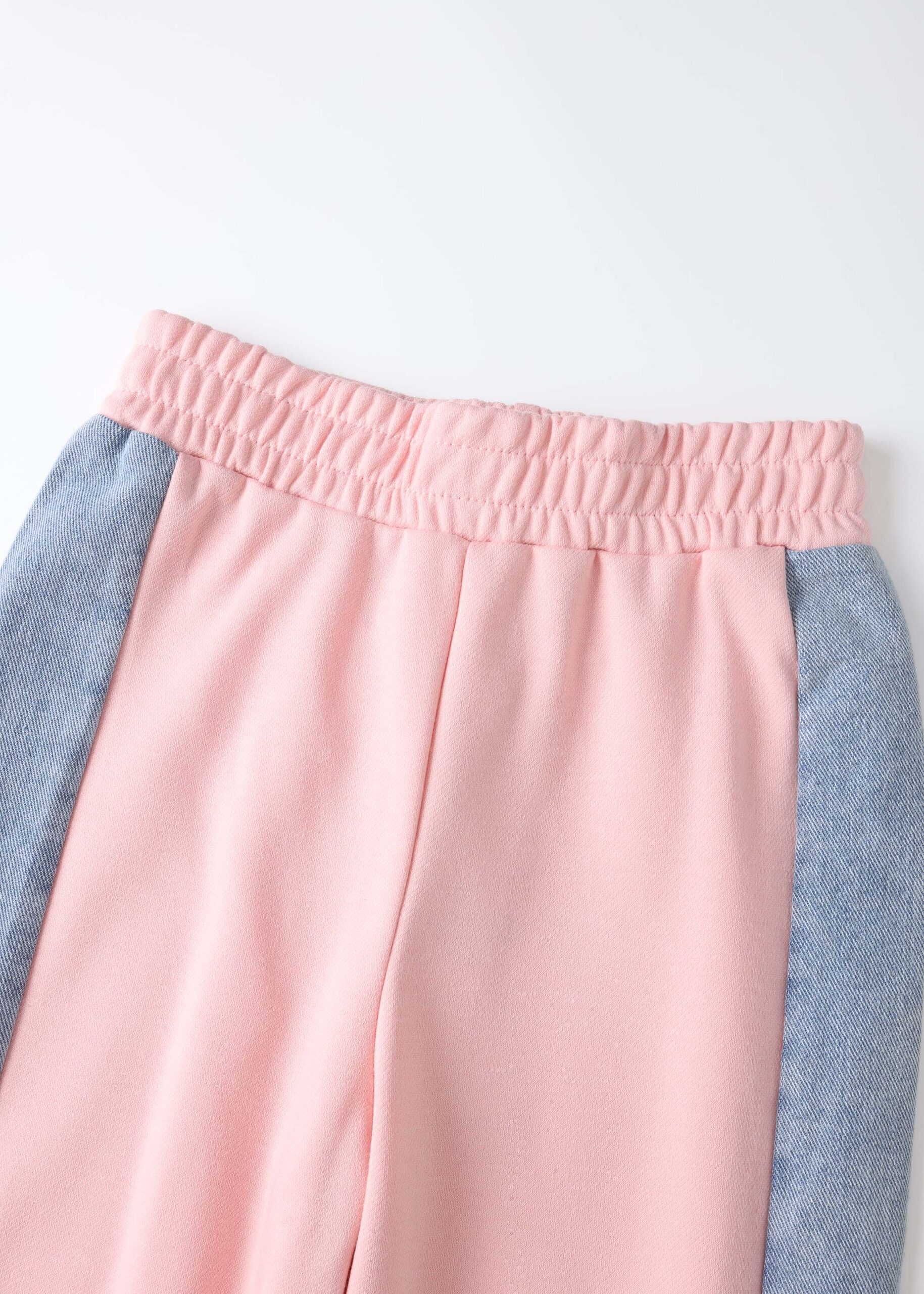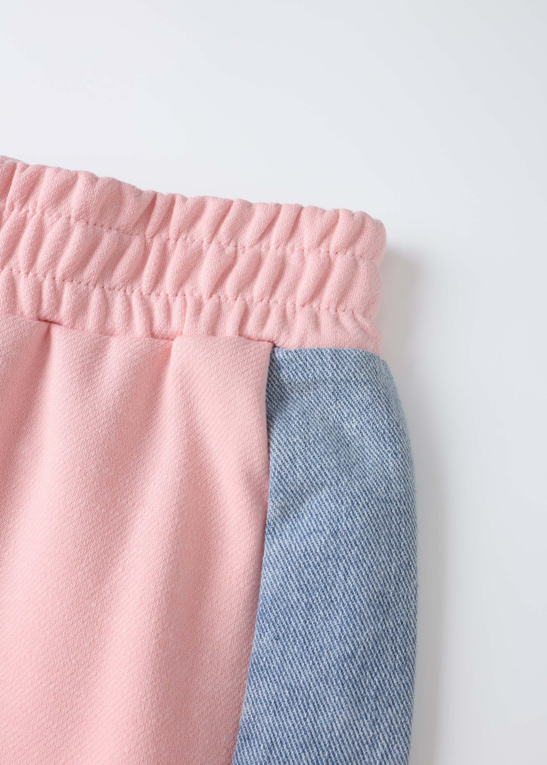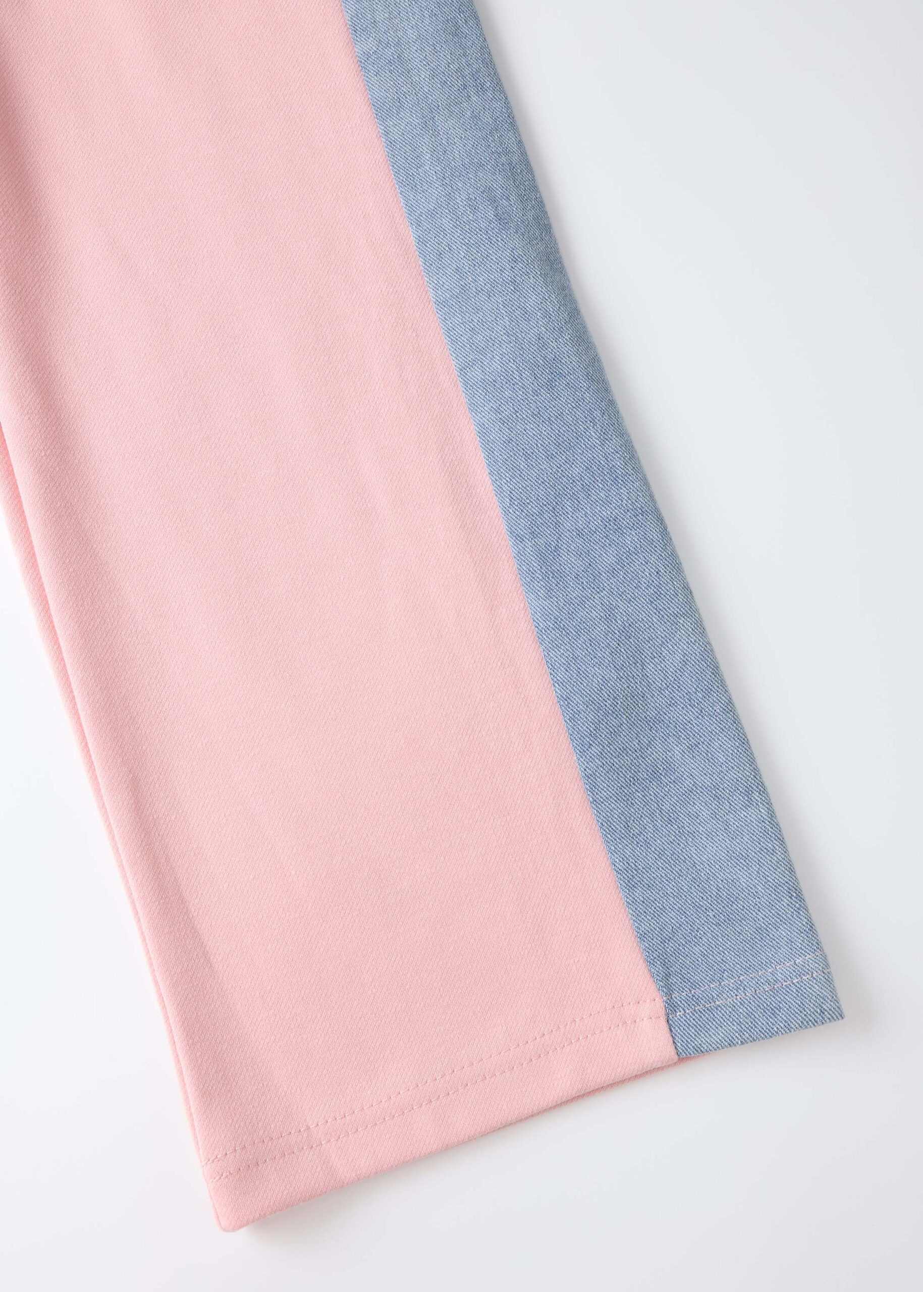 بنطلون اطفال بناتي, ساق واسعة, نوعين من النسيج دينيم من الجانبين, انيق وعملي