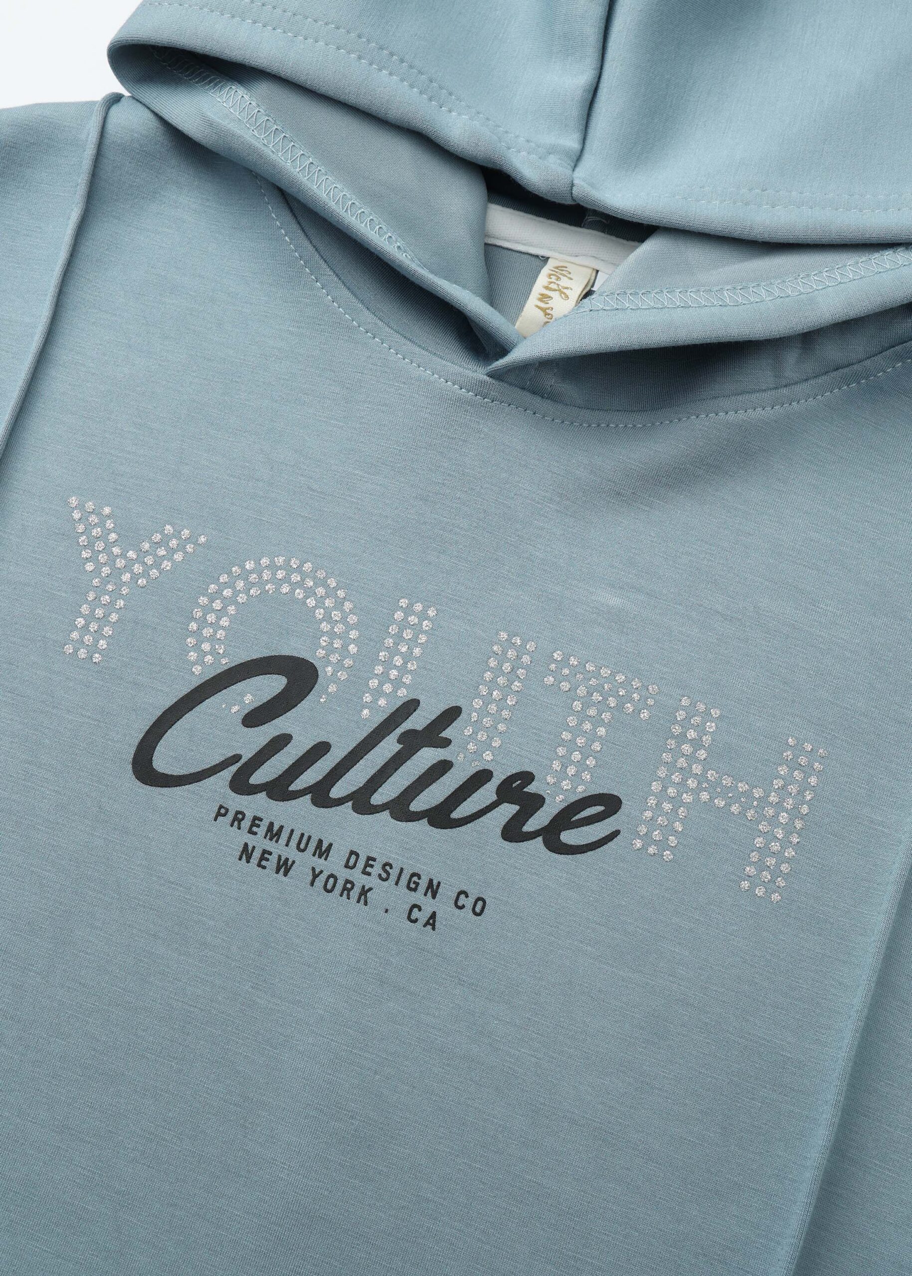 Kids girl hoodie, “Youth Culture” printed from the front, hood, long sleeves with tight cuff, comfortable and unique
