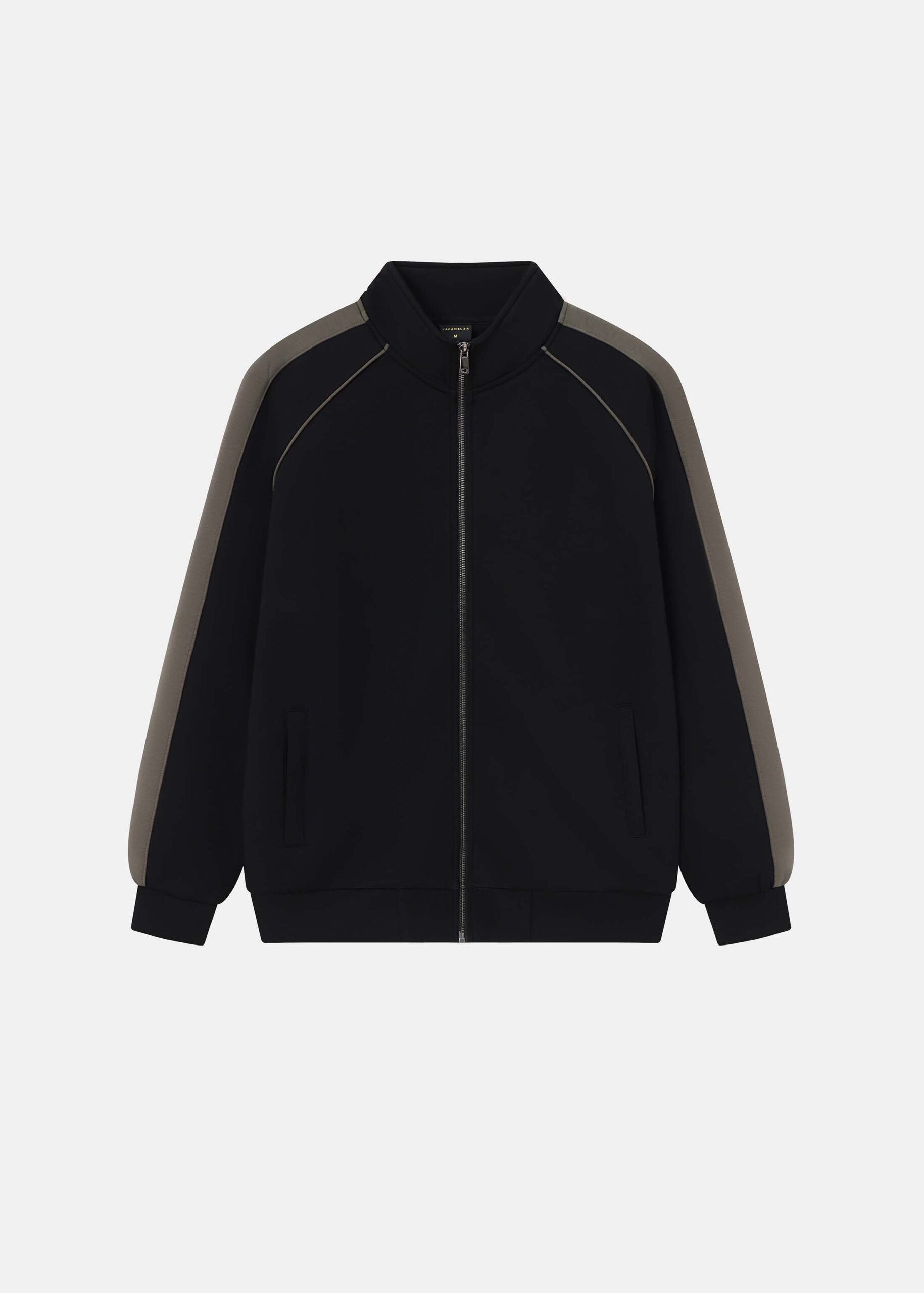 Men track jacket, color-block, stand collar, front zipper closure, front pockets, long sleeves with tight cuff, unique and practical