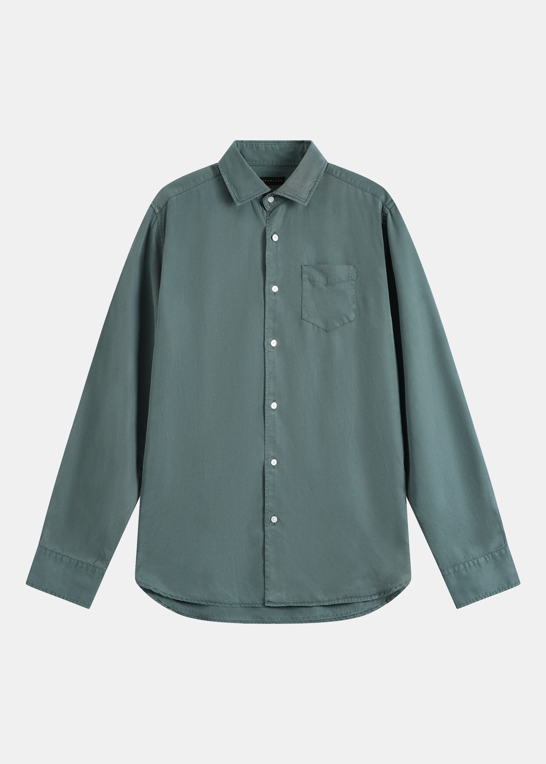 قميص رجالي, دينيم, سادة, ياقة مثنية, ازرار من الامام للاغلاق, اكمام طويلة مع زر على المعصم, جيب من الامام, انيق وعصري