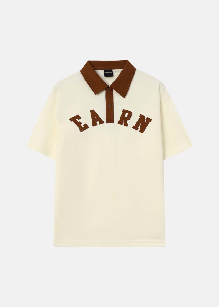 تيشيرت بولو رجالي, طباعة “Earn” من الامام, ياقة مثنية مع ازرار من الامام للاغلاق, اكمام قصيرة, انيقة وعملية