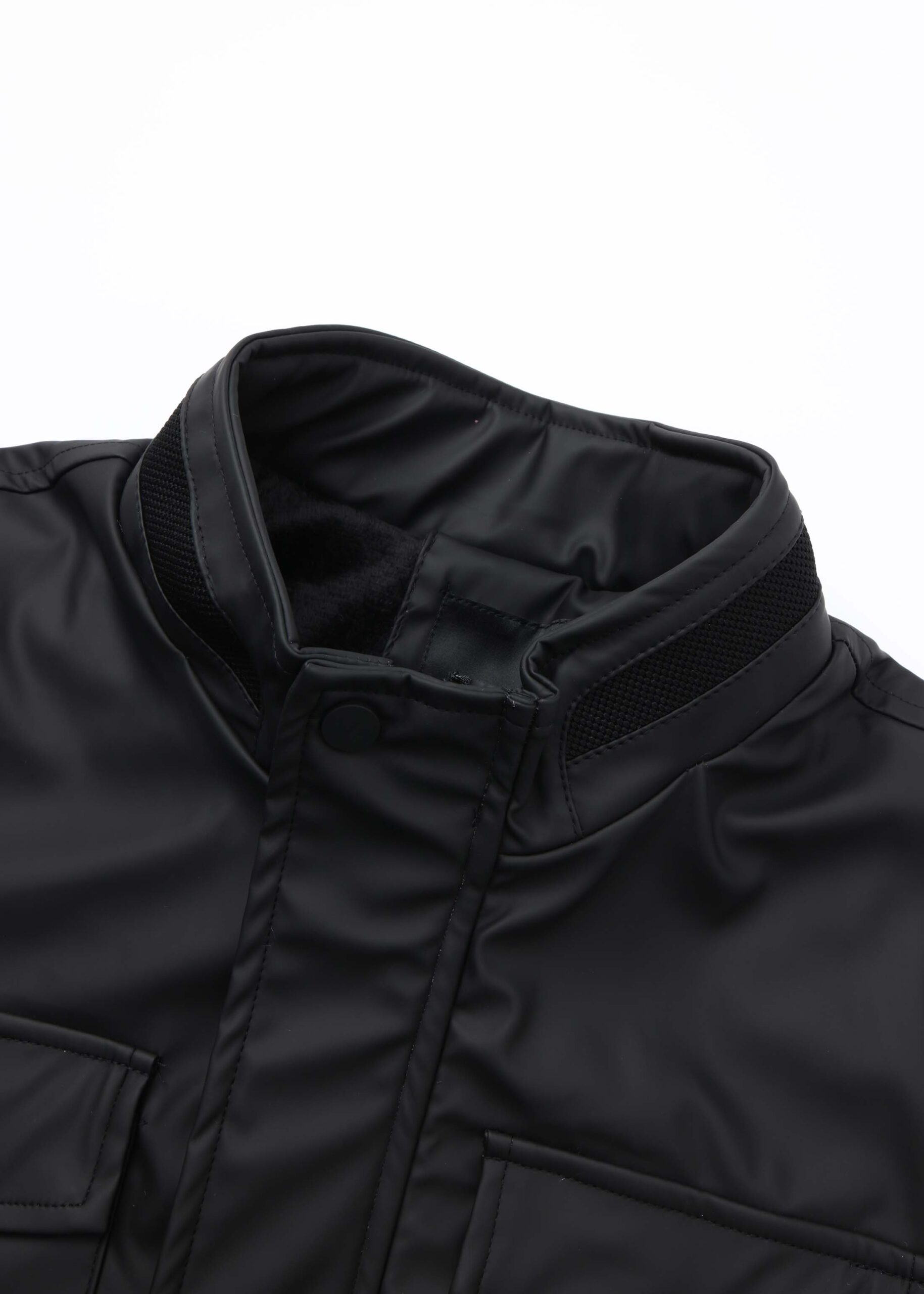 Men jacket, plain,leather, stand collar with front button, front zipper closure, front pockets, long sleeves with tight cuff, warm and unique